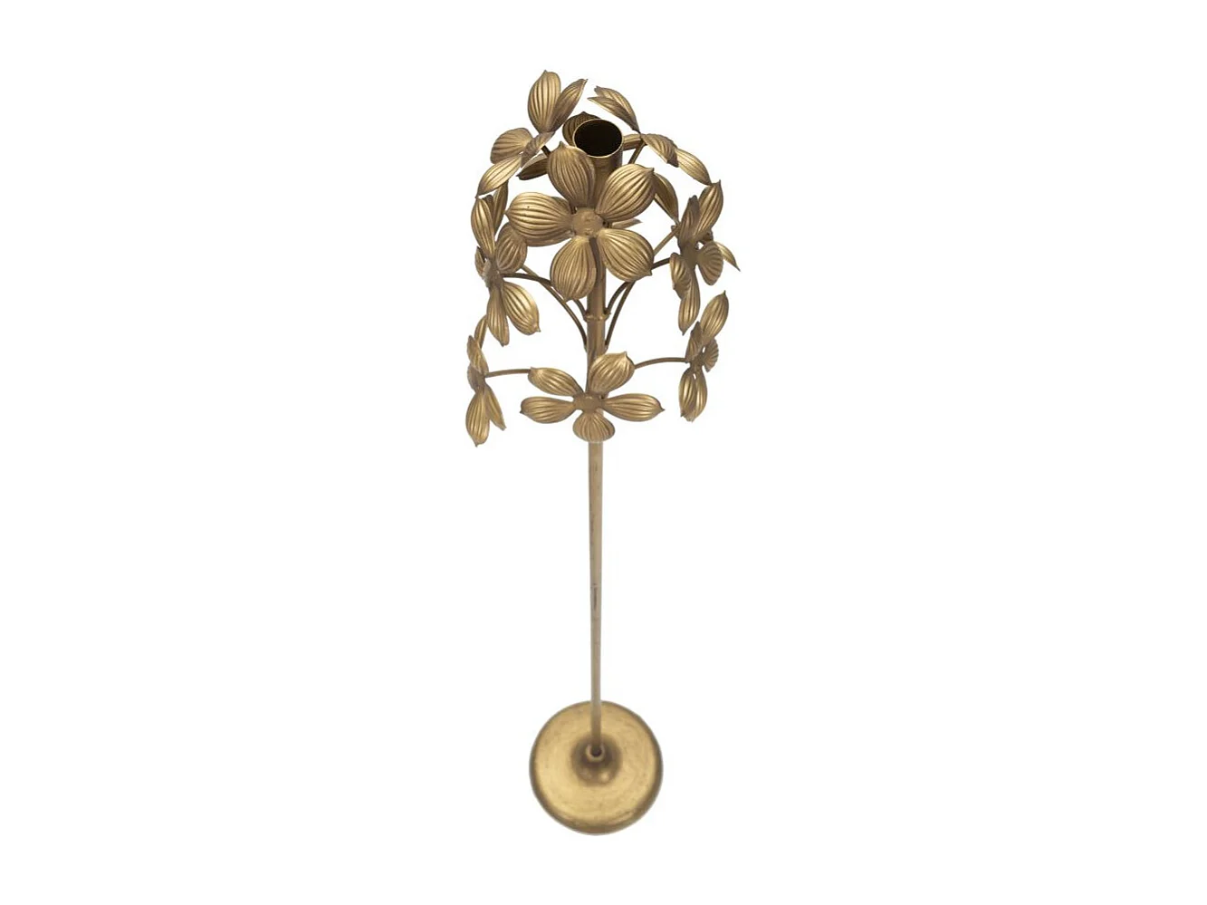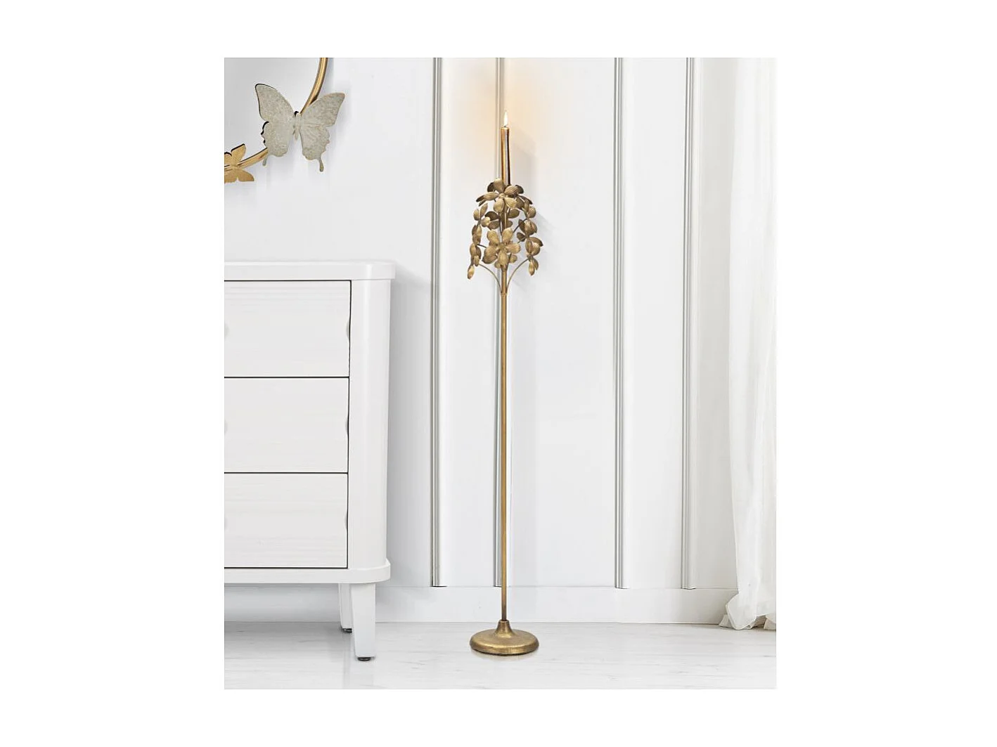Portacandele in metallo dorato con foglie Ø cm 17x118