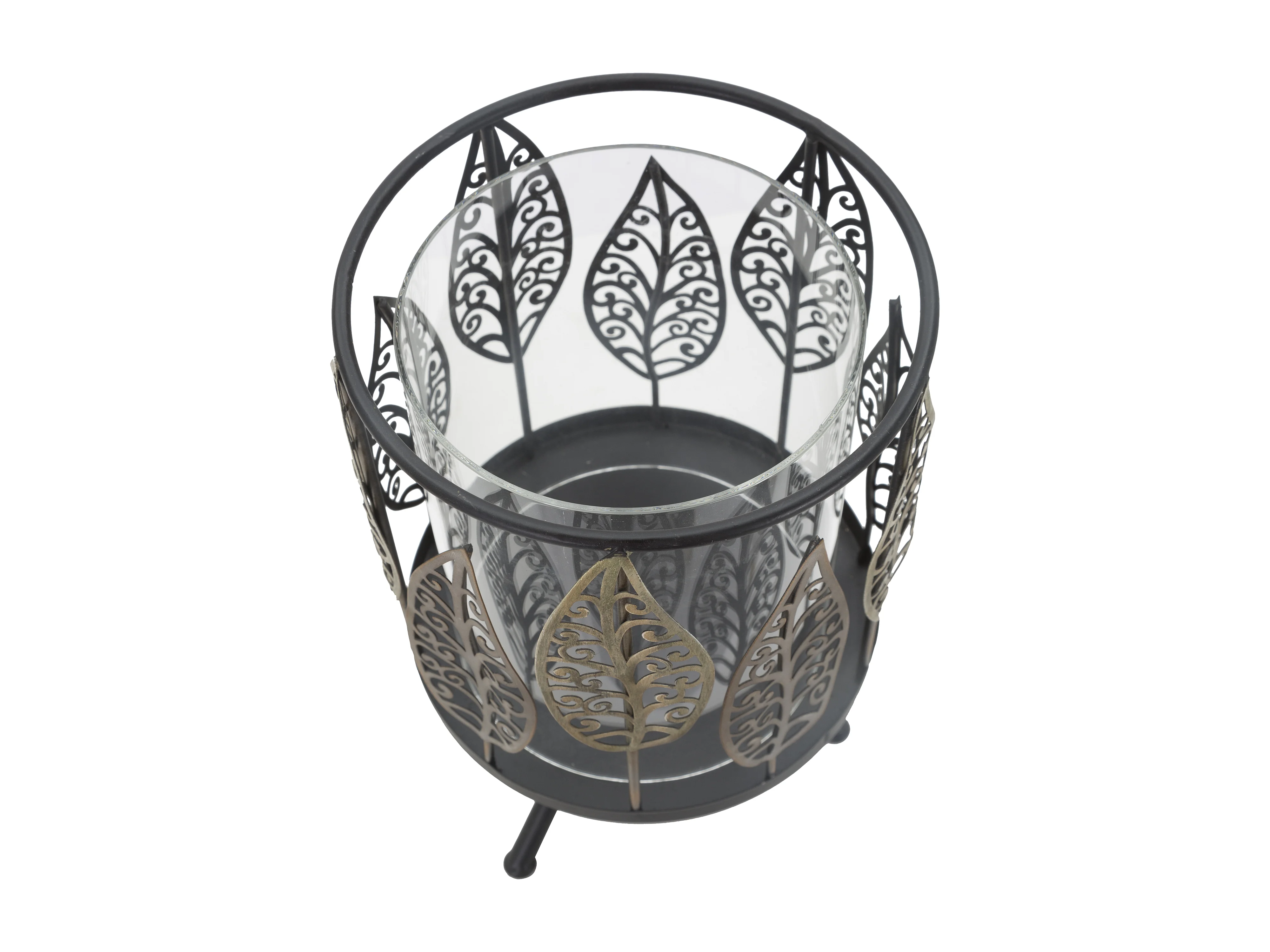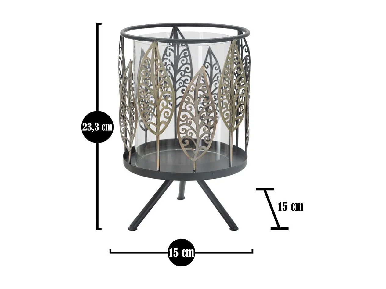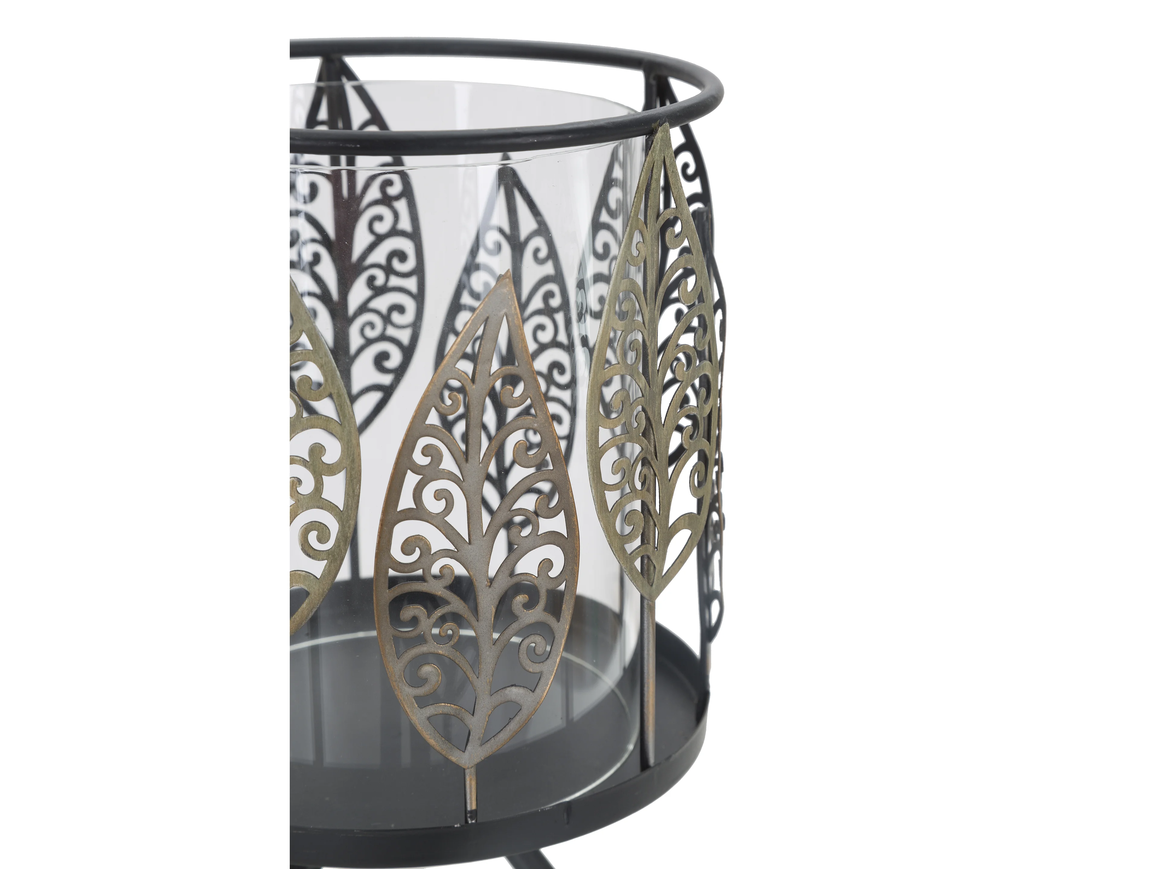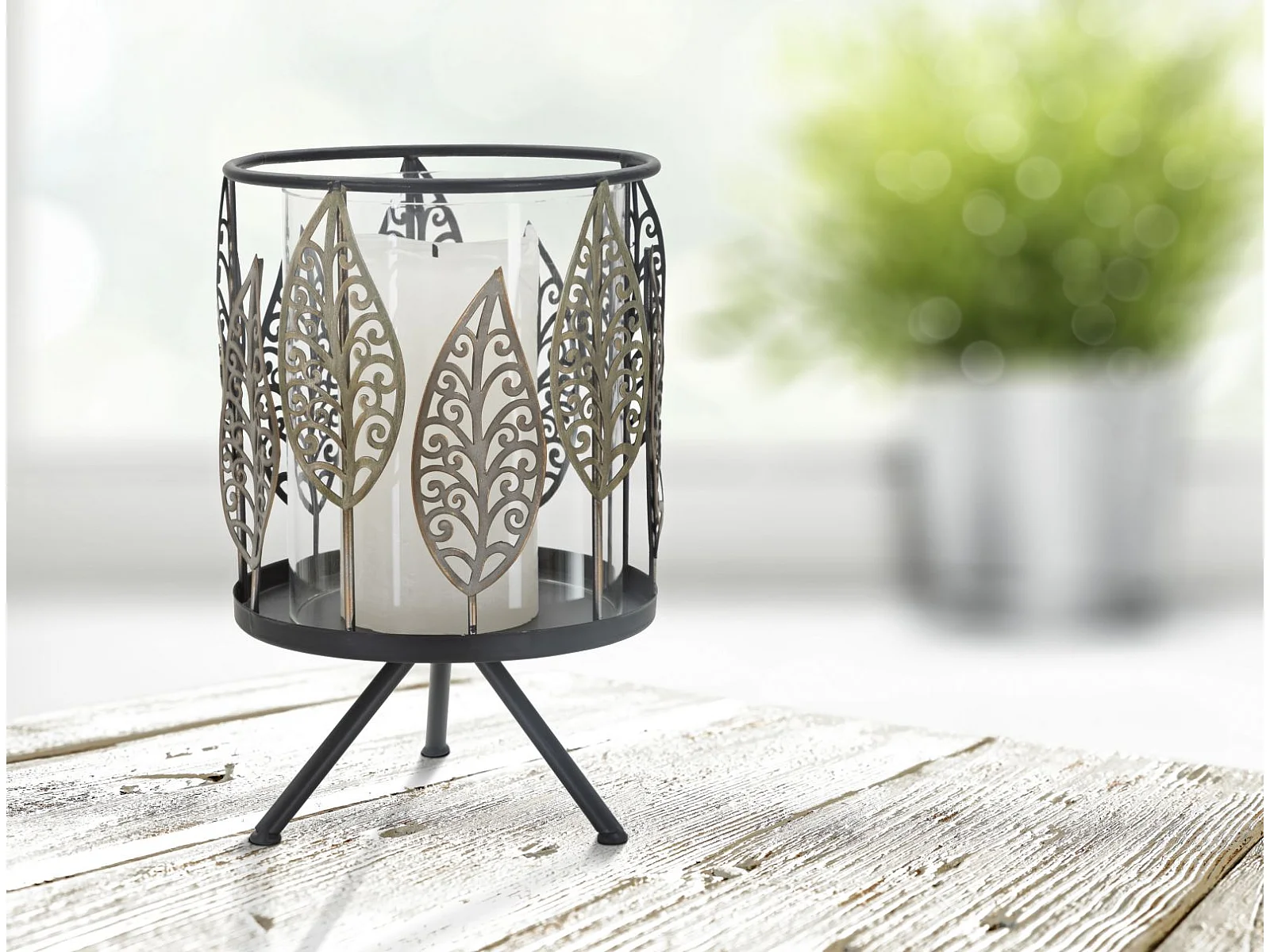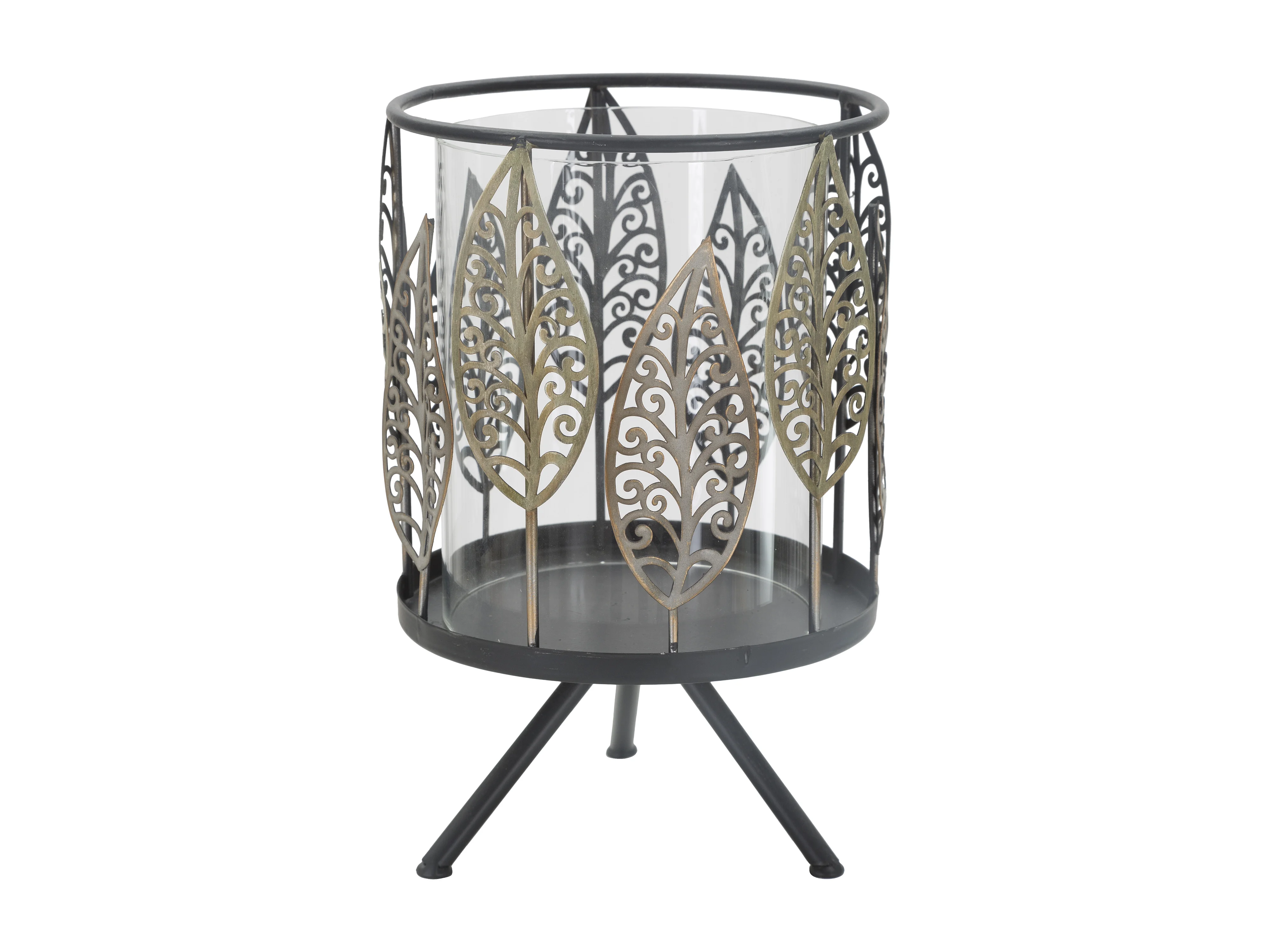 Portacandele in metallo grigio foglie Ø cm 15x24