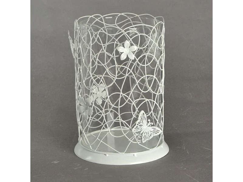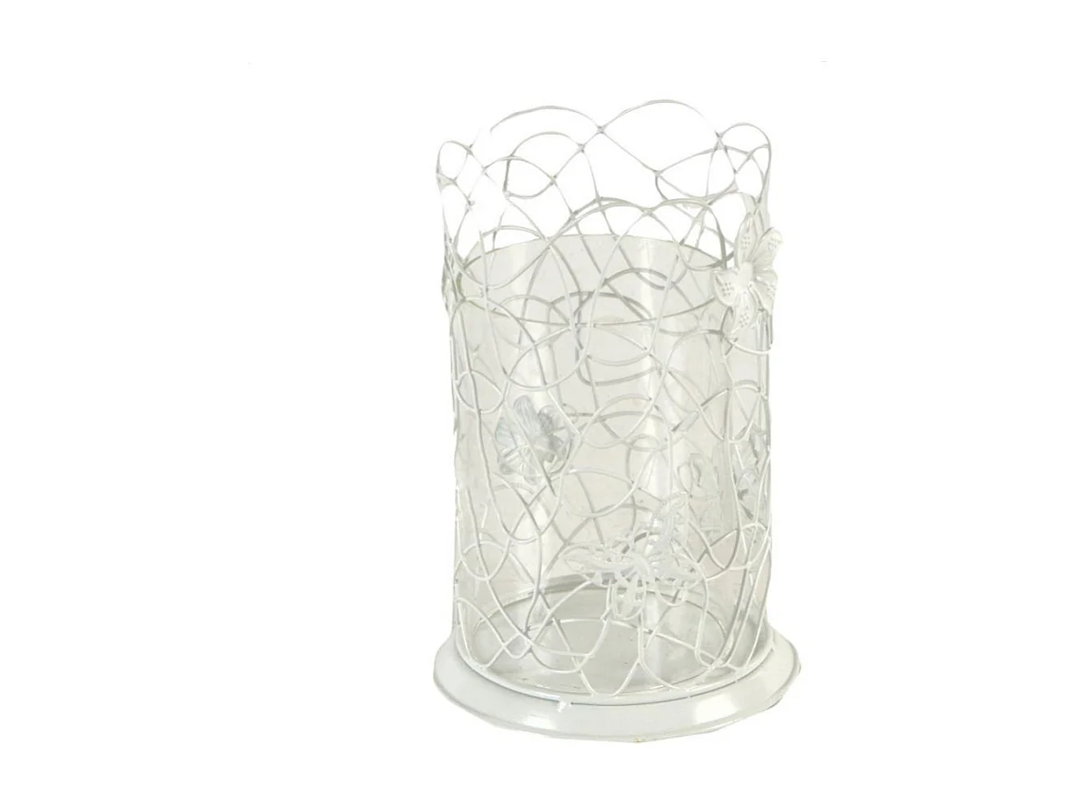 Portacandele metallo bianco c/farfalle grande cm13x13h20