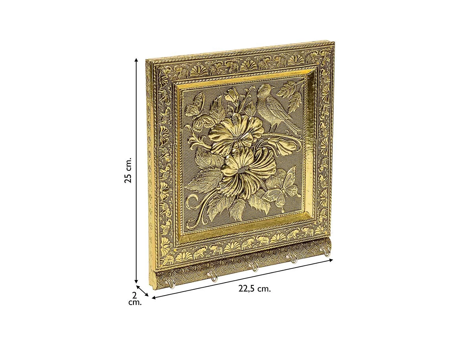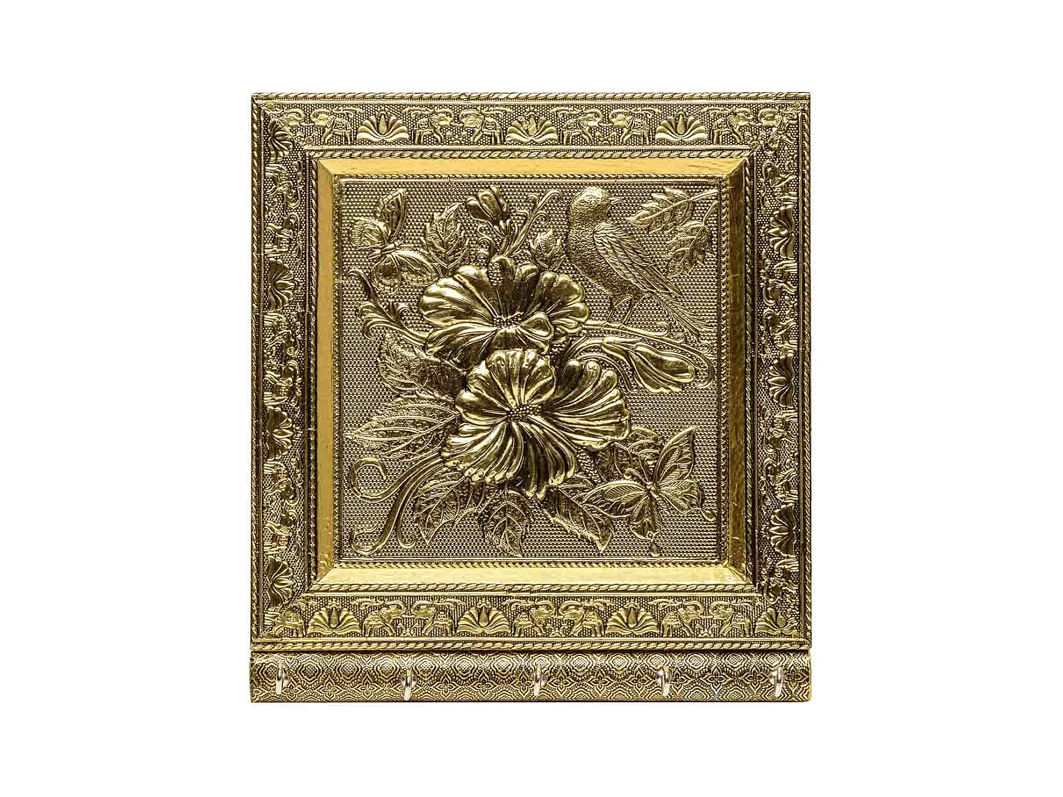 Portachiavi in metallo dorato goffrato 25x22,5x2h