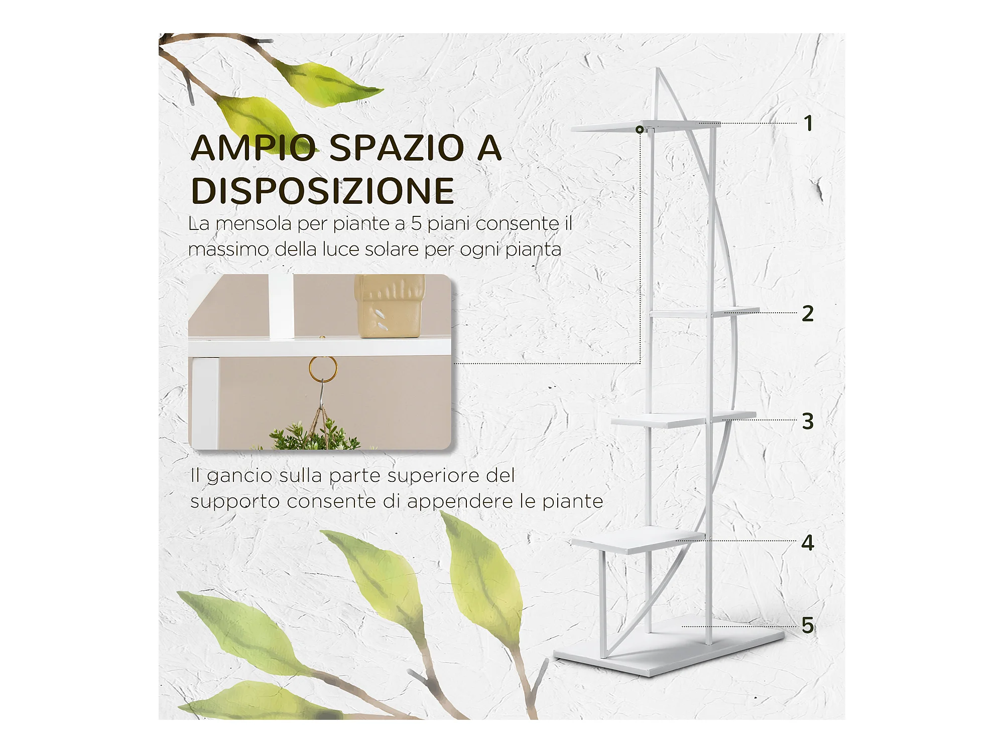 Portafiori 5 livelli a mezzaluna da interni ed esterni bianco