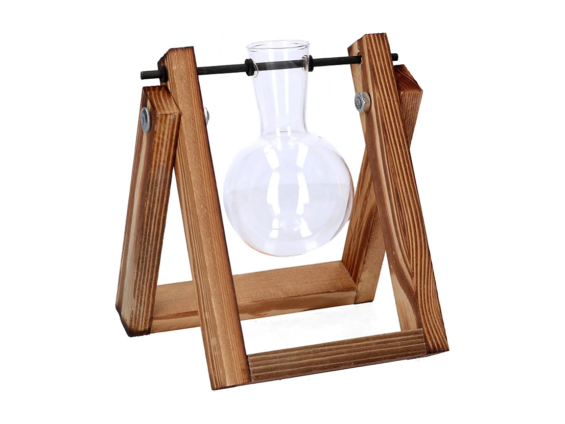 Portafiori legno con vetro 1 posto cm14x5,5/9,5h16
