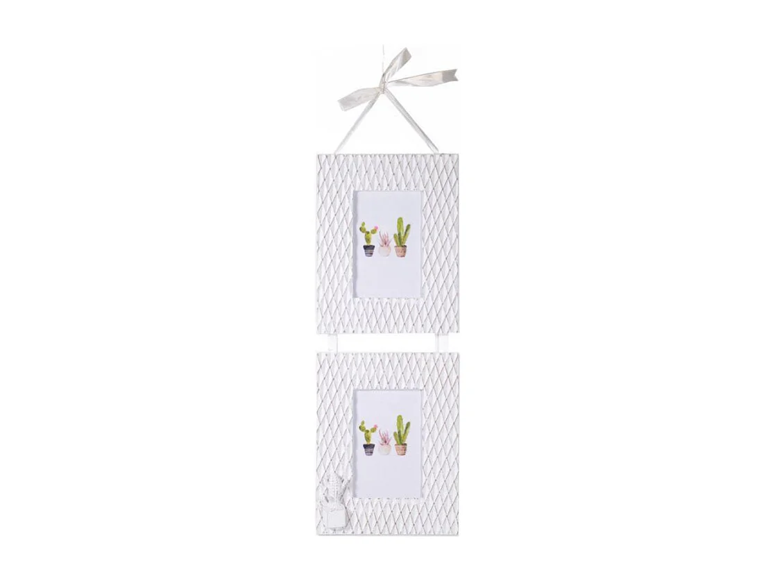 Portafoto muro cactus legno bianco multiplo 2p cm 19x58x1
