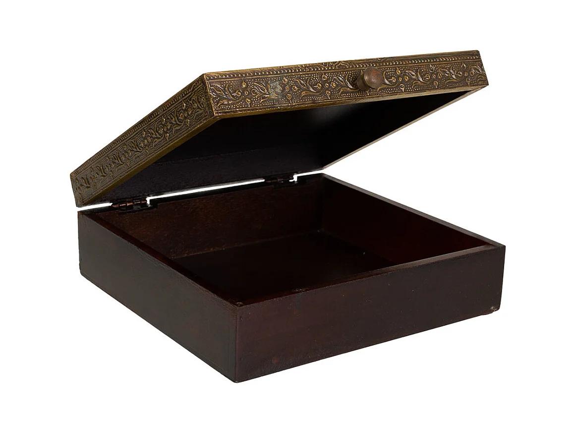 Portagioie in legno dipinto a mano marrone 24x20x12,5h cm
