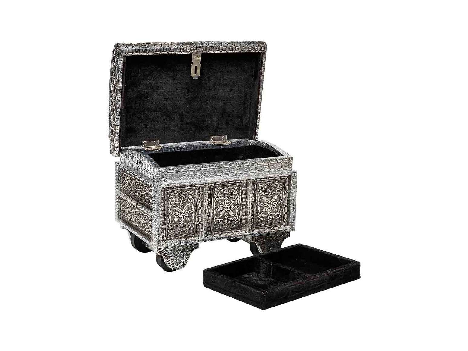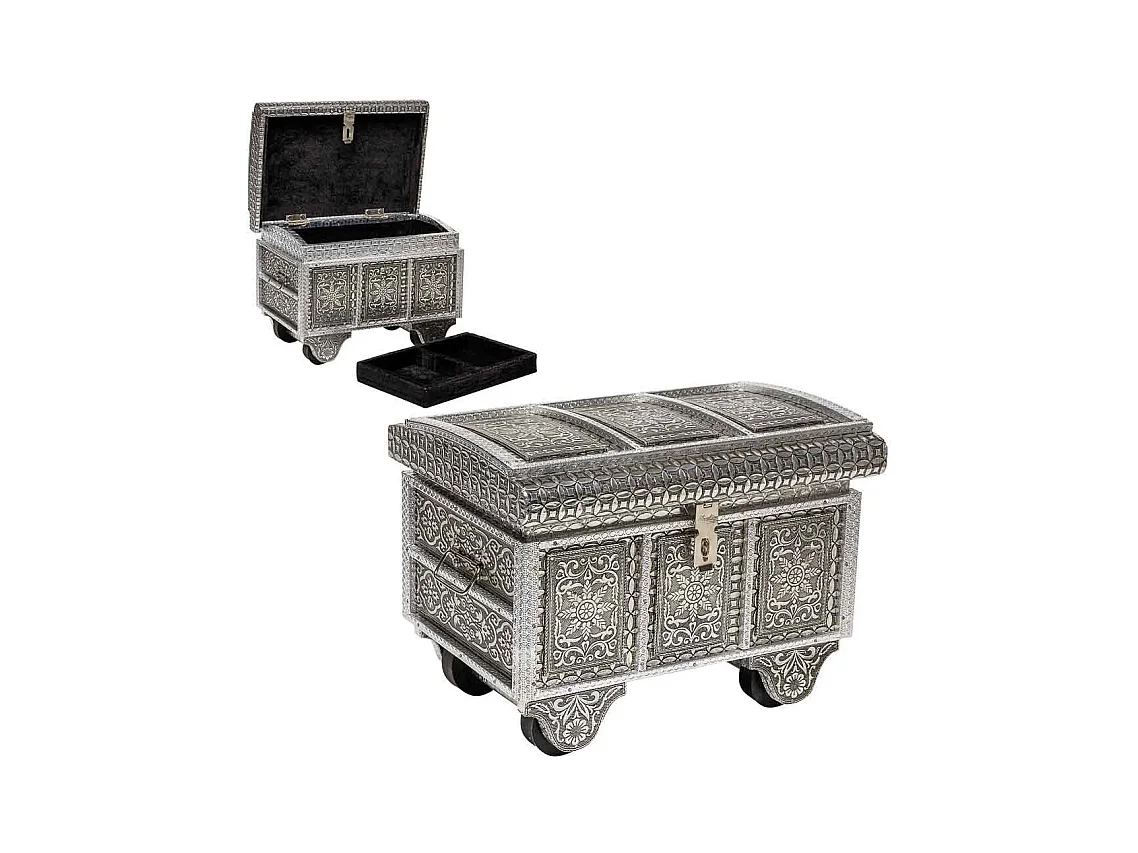 Portagioie in metallo argentato sbalzato 30x20x25h