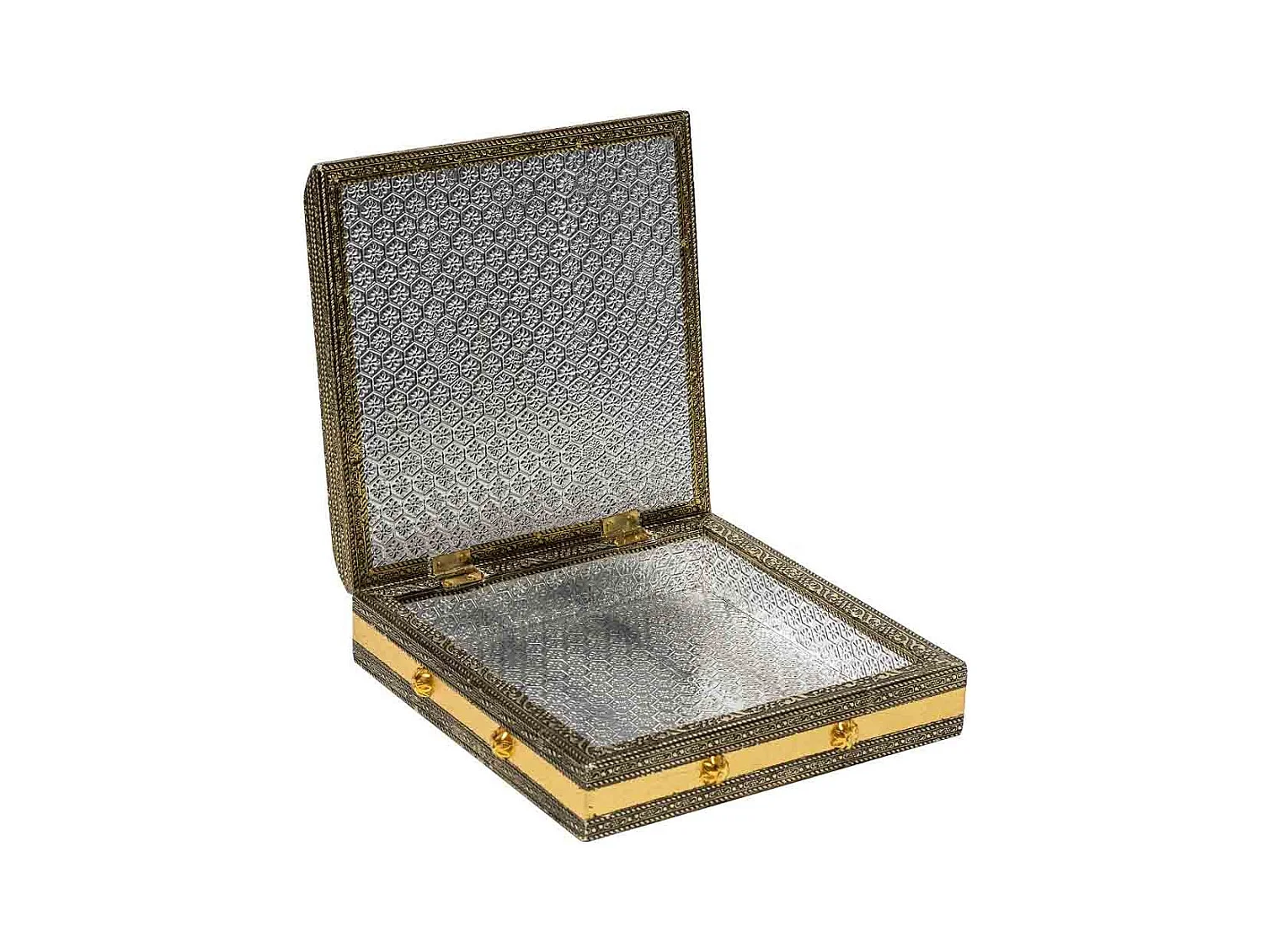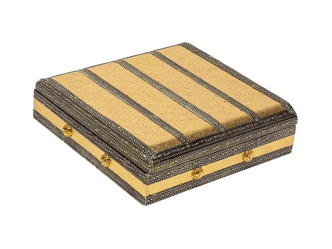 Portagioie in metallo dorato sbalzato 11,25x11,25x5,5 cm