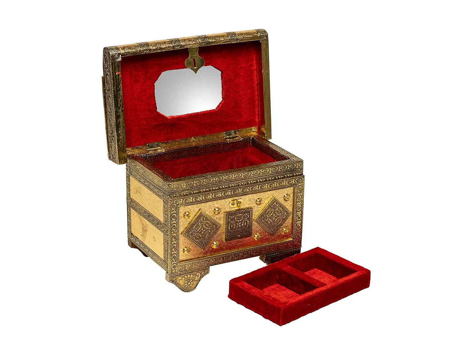 Portagioie in metallo dorato sbalzato 22x14x17h
