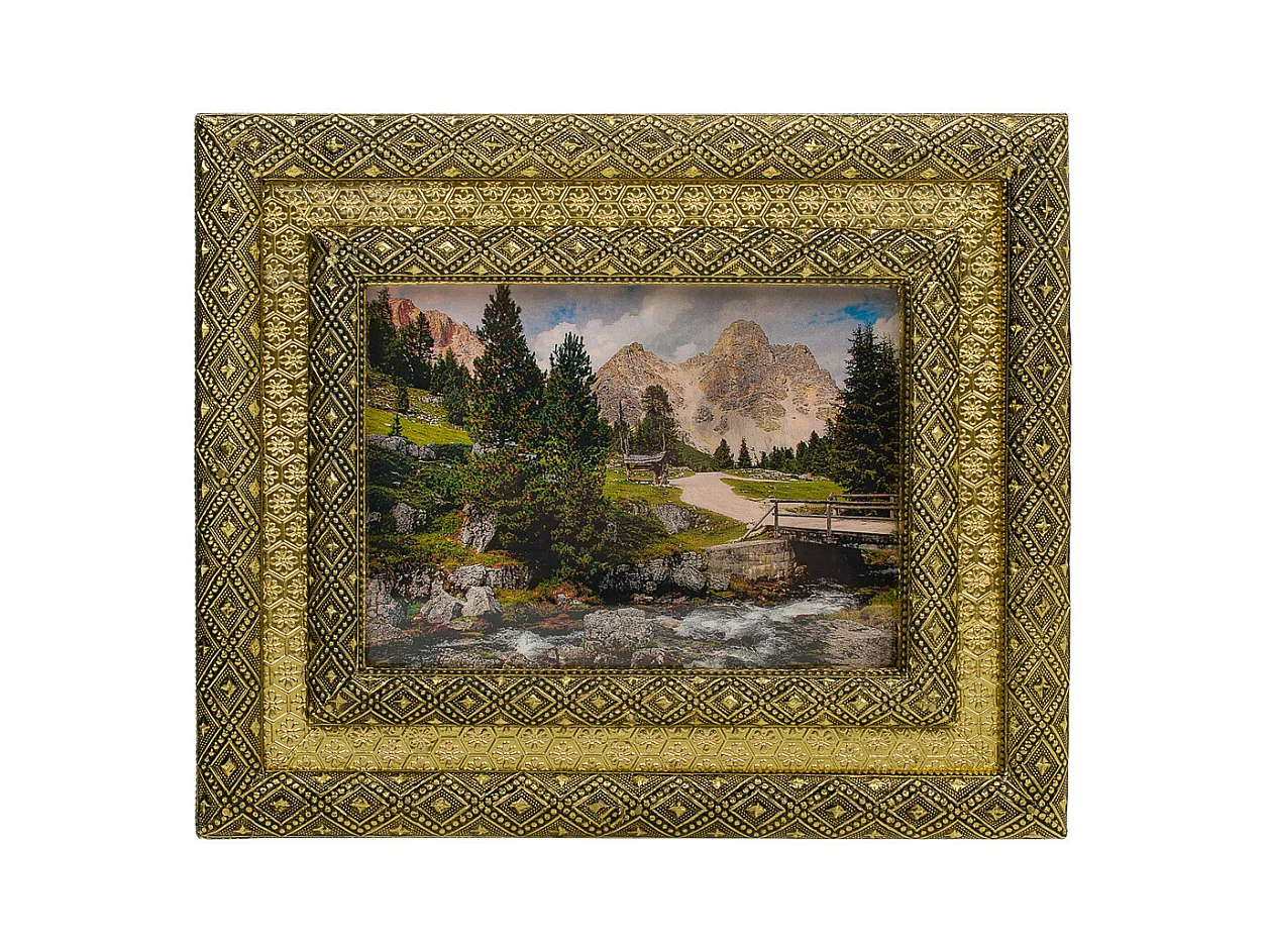 Portagioie in metallo dorato sbalzato 30x25x7,5h