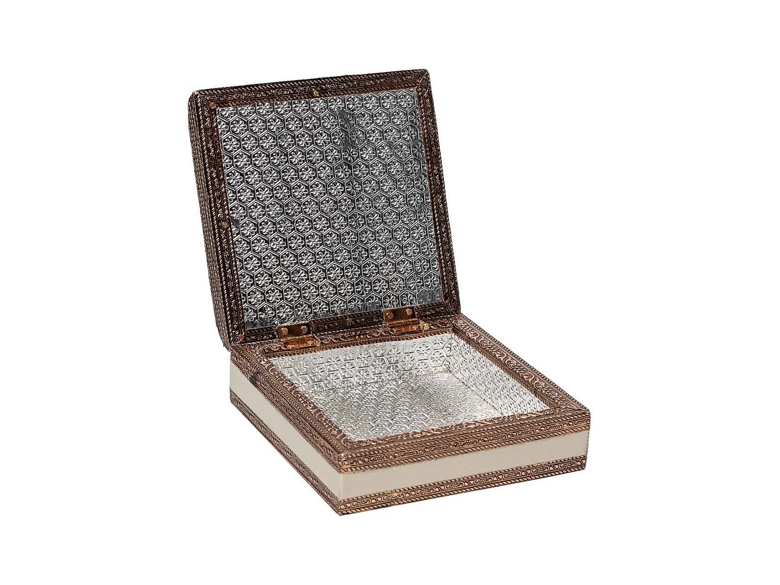 Portagioie in metallo sbalzato color bronzo 20x20x6h