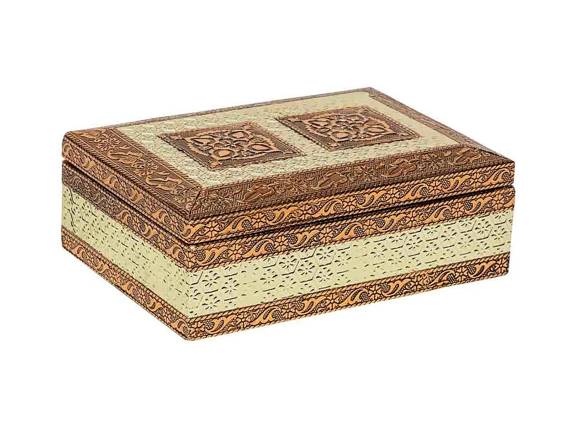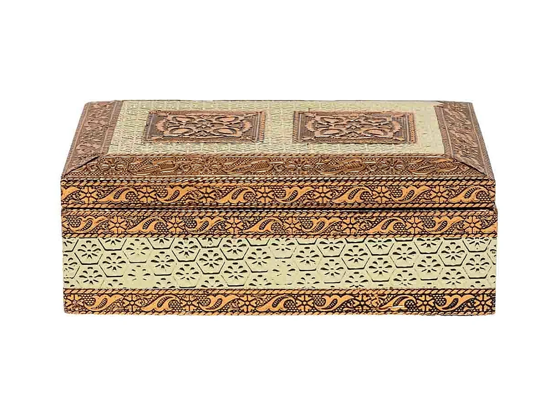 Portagioie in metallo dorato sbalzato 17,5x11,5x11h
