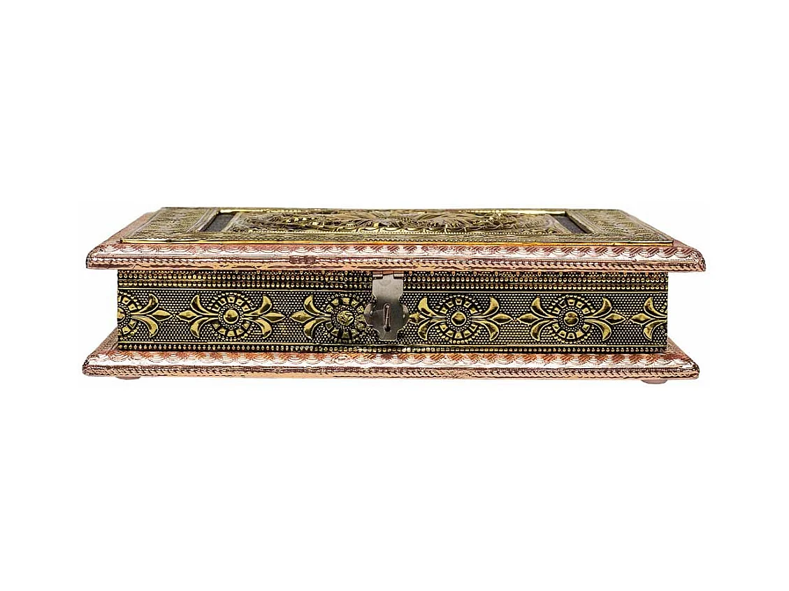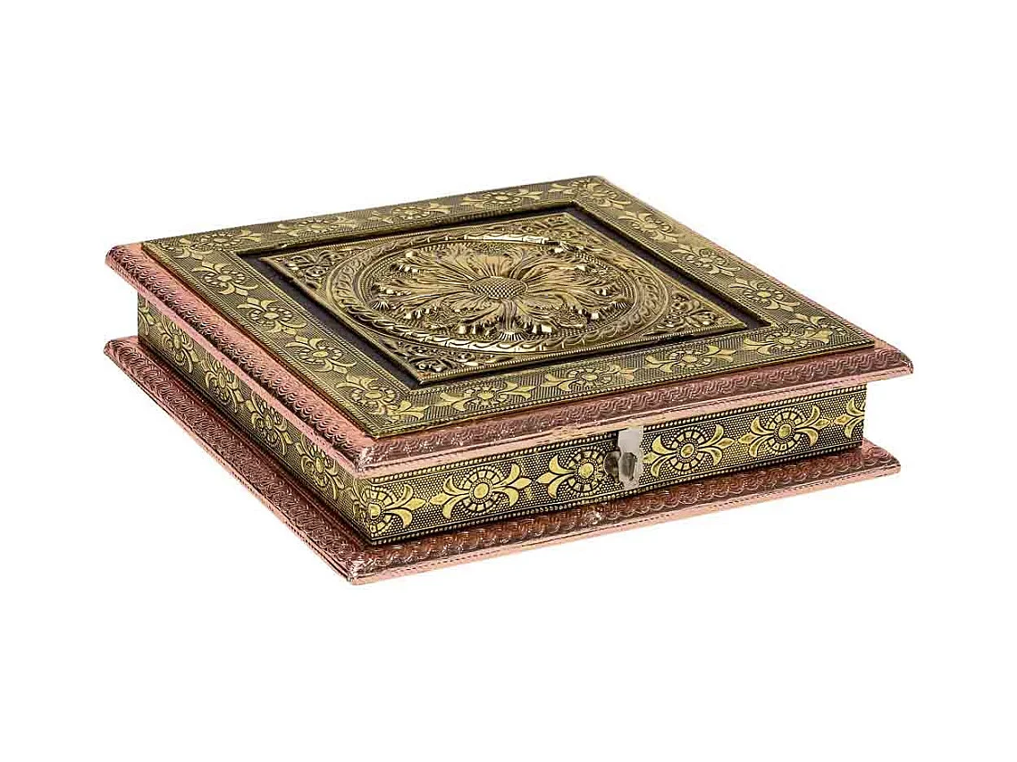 Portagioie in metallo dorato sbalzato 11,25x11,25x5,5 cm