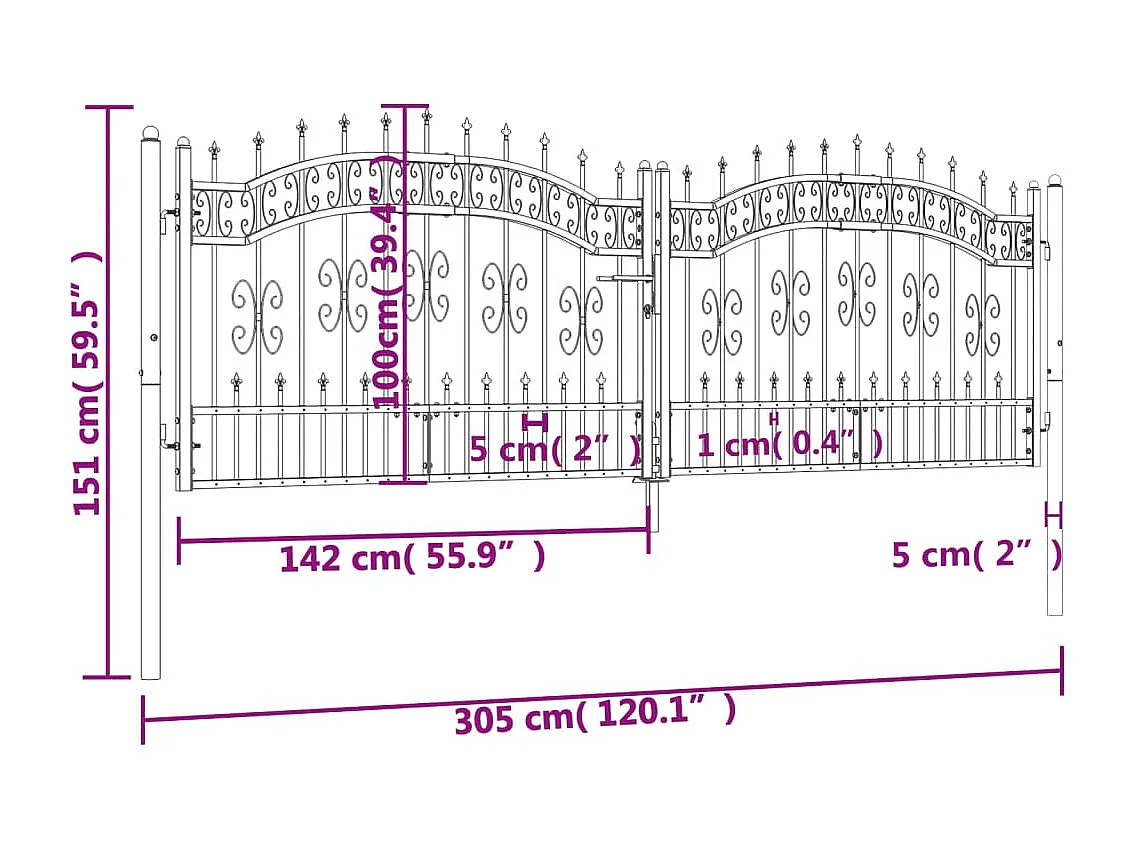 Portale e punta di lancia Nero 305x151 cm Acciaio verniciato a polvere