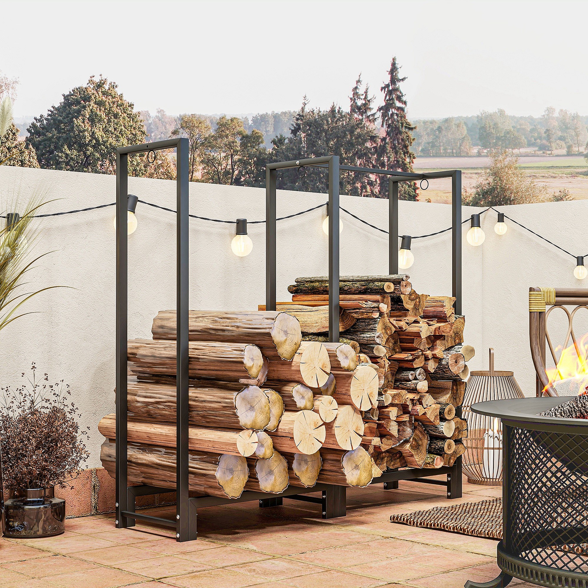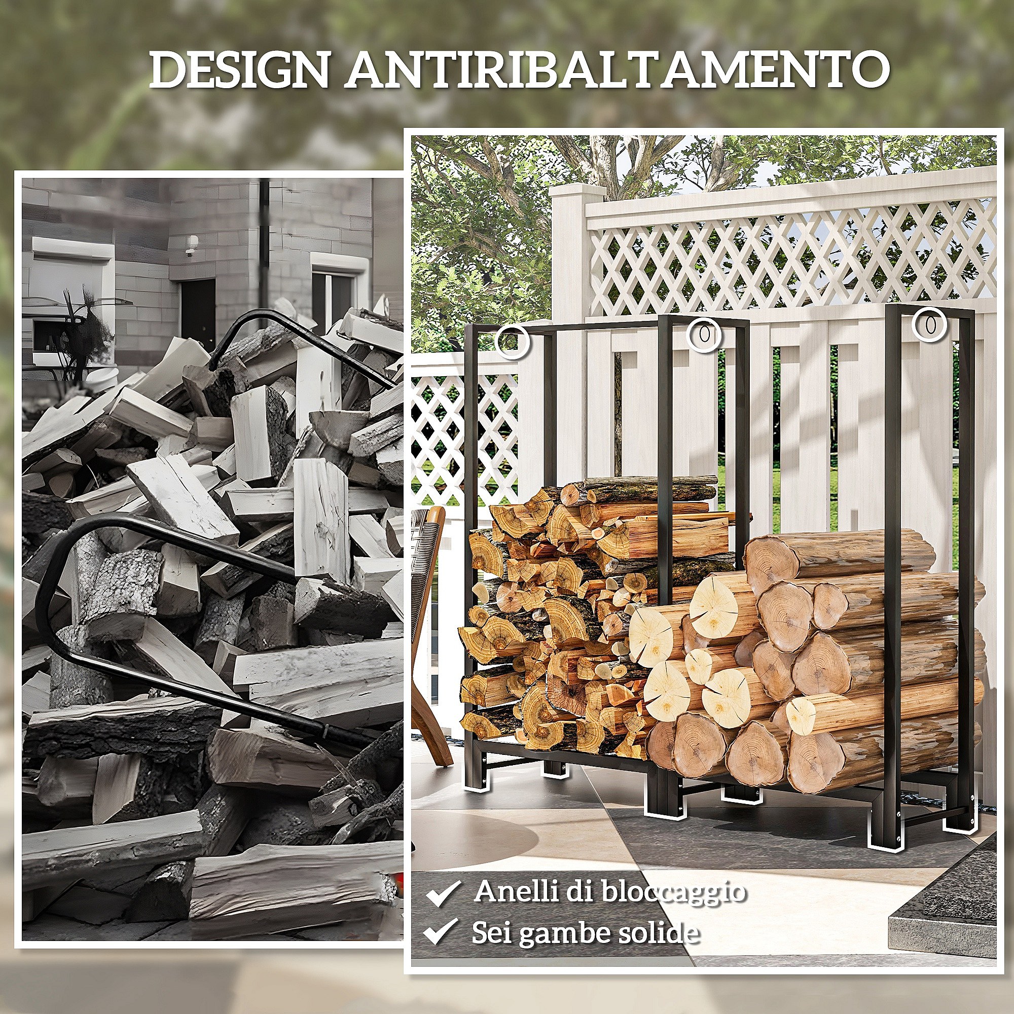 Portalegna a 2 sezioni con 6 gambe e 3 ganci in acciaio nero