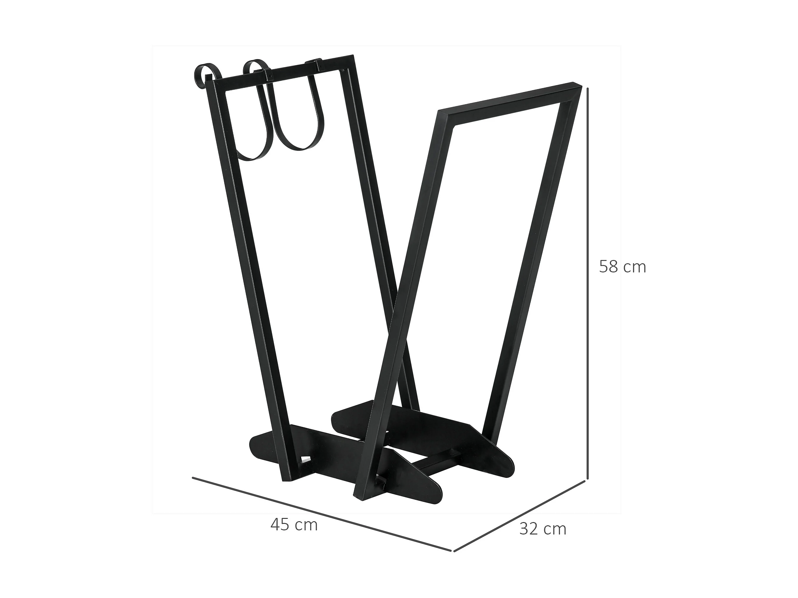 Portalegna con ganci da esterno e interno in acciaio nero