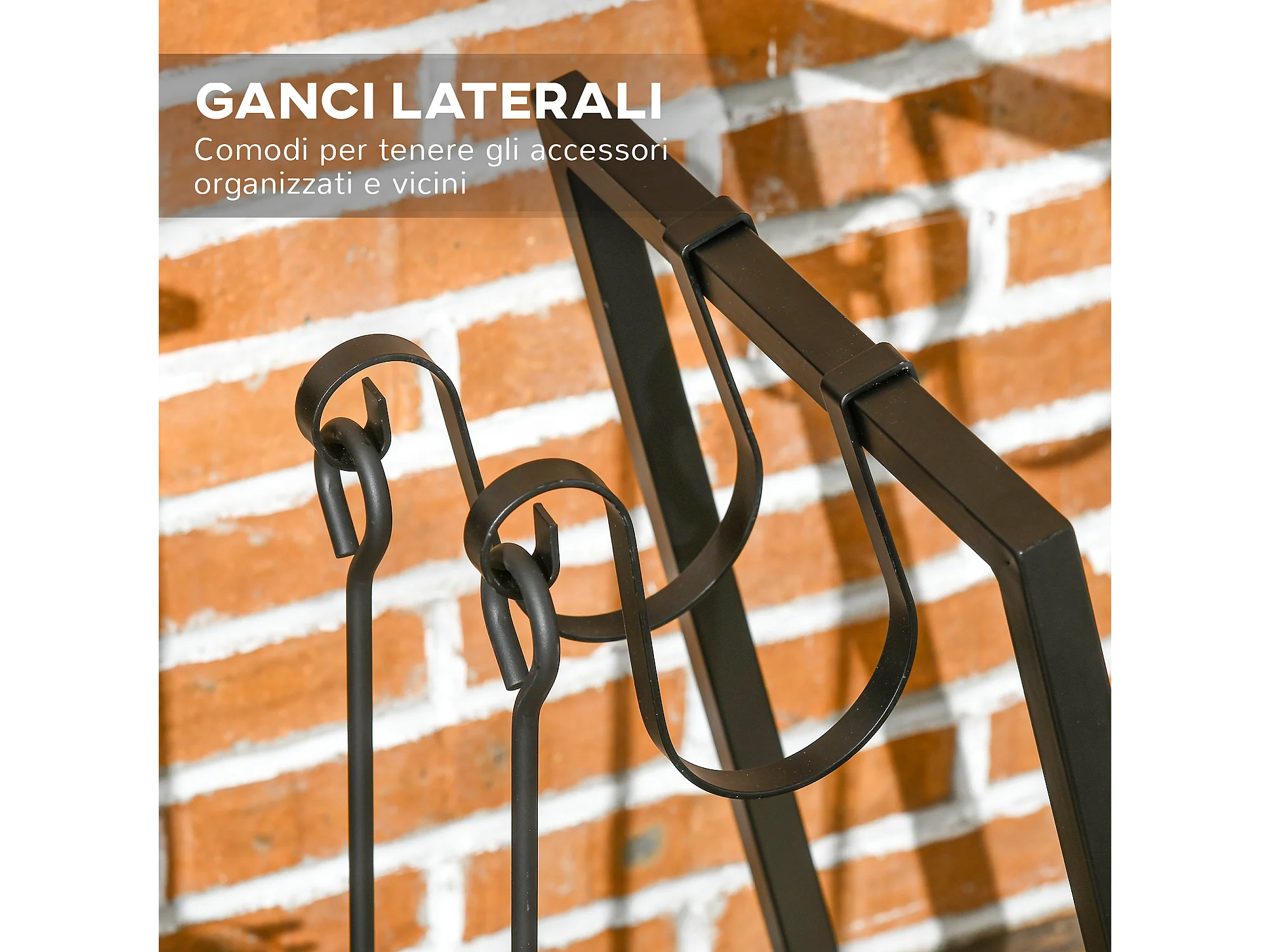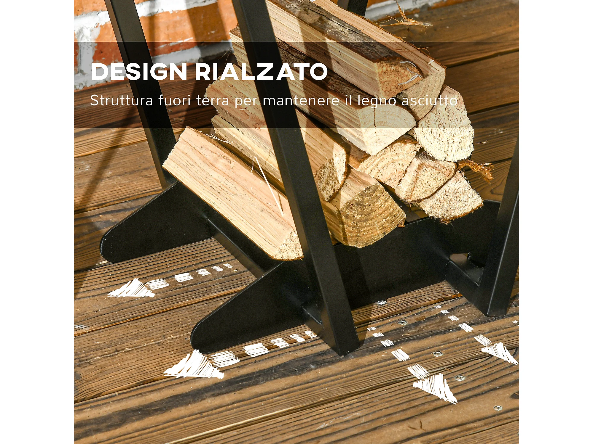 Porta legna per interni ed esterni con design elegante e 4 attrezzi