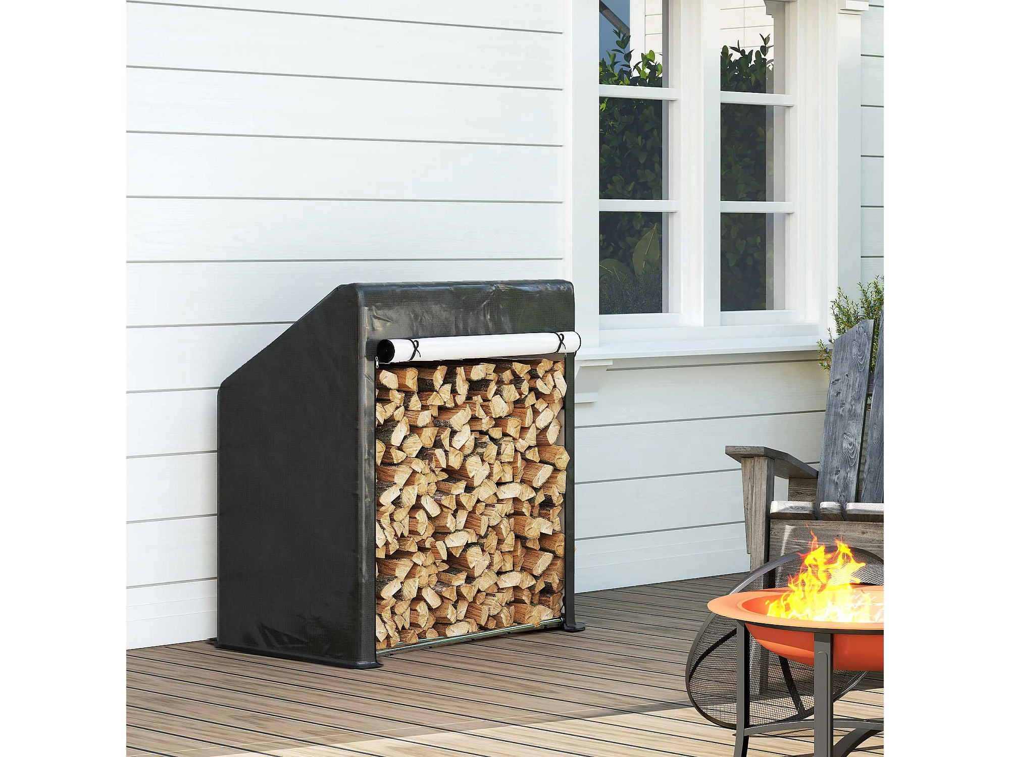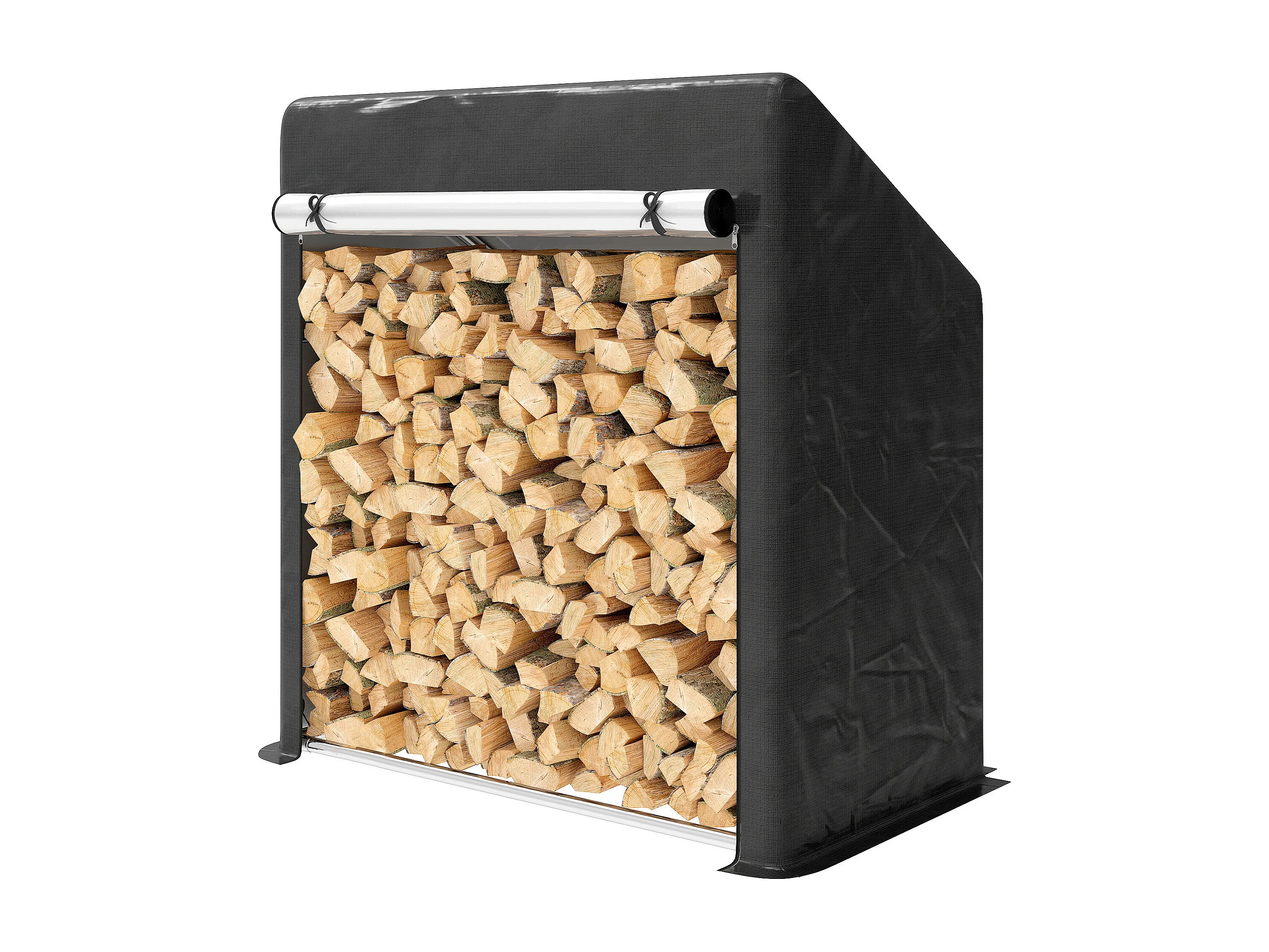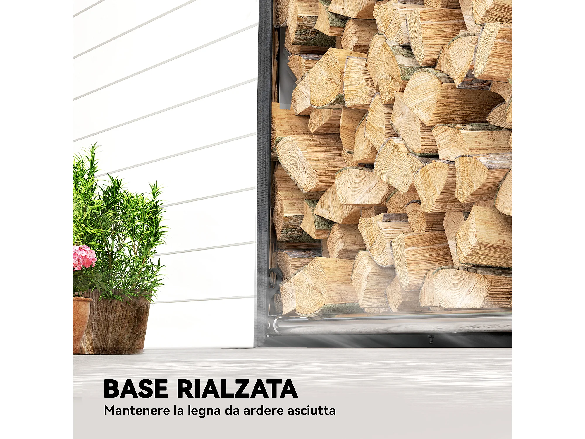 Portalegna da esterno con copertura impermeabile in acciaio nero