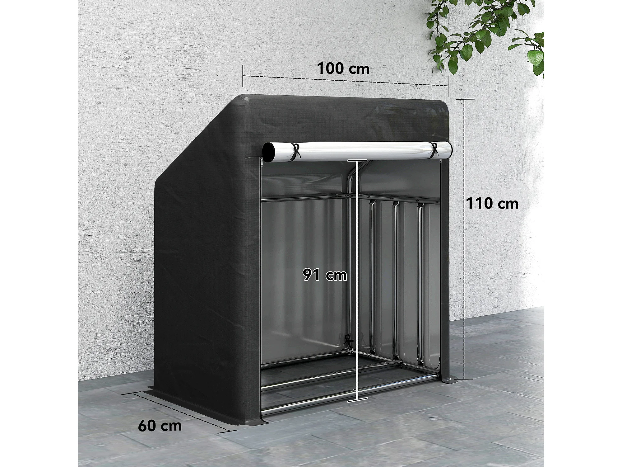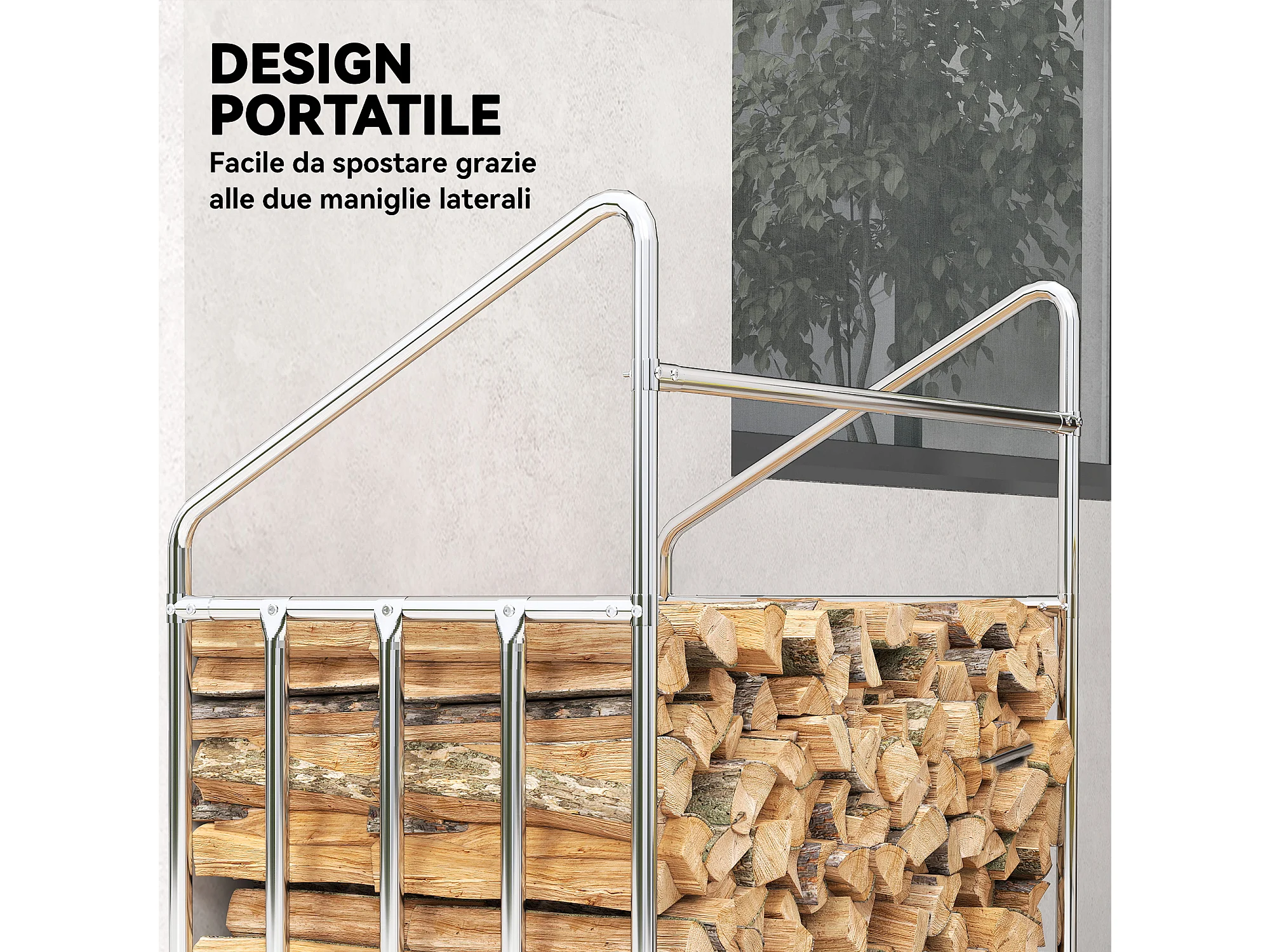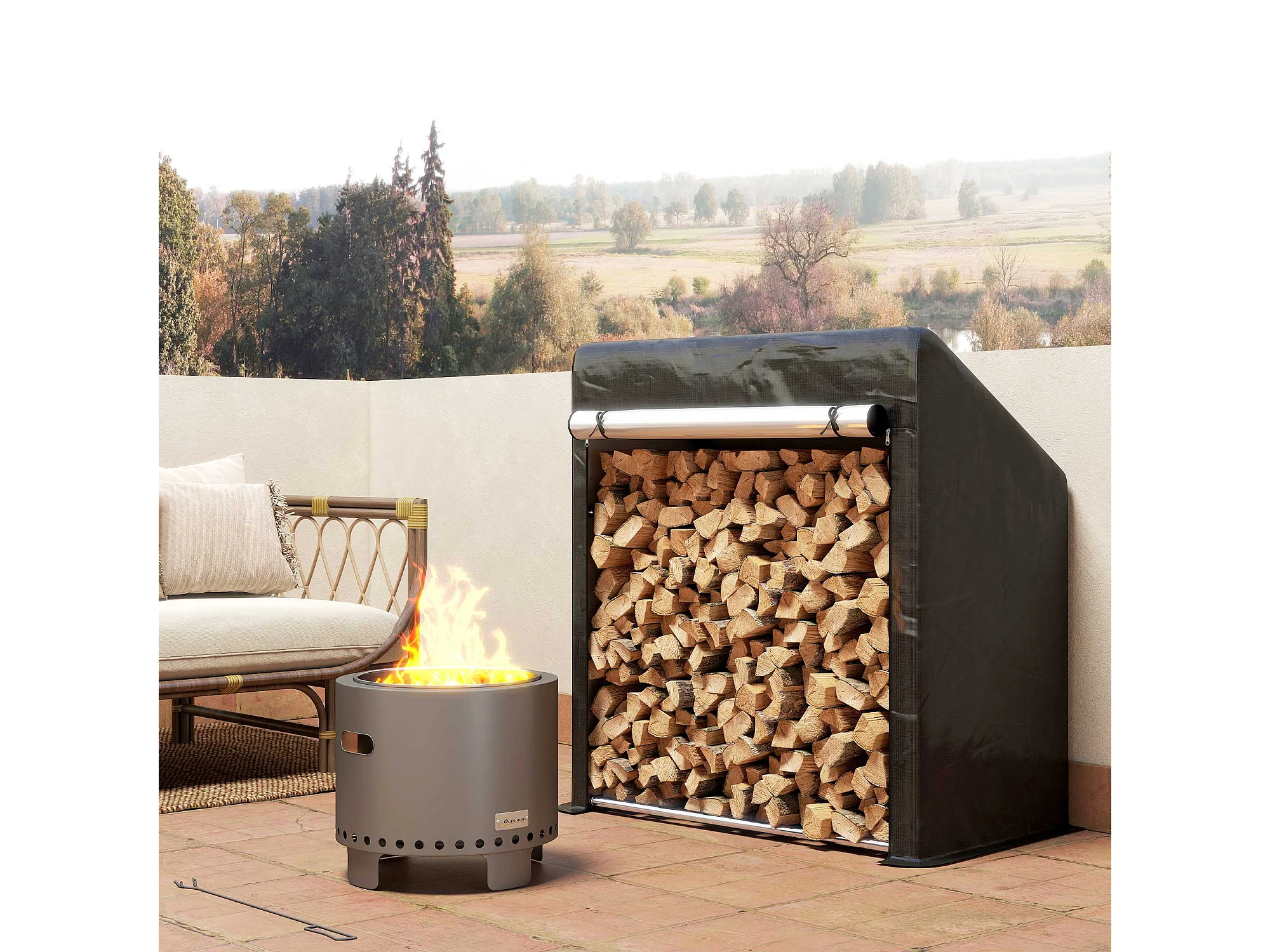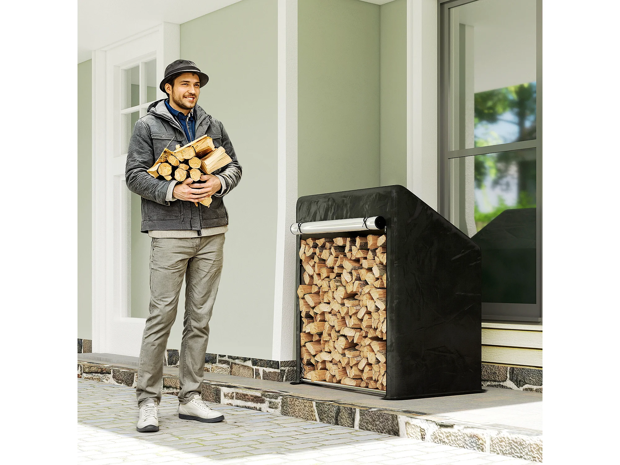 Portalegna da esterno con copertura impermeabile in acciaio nero