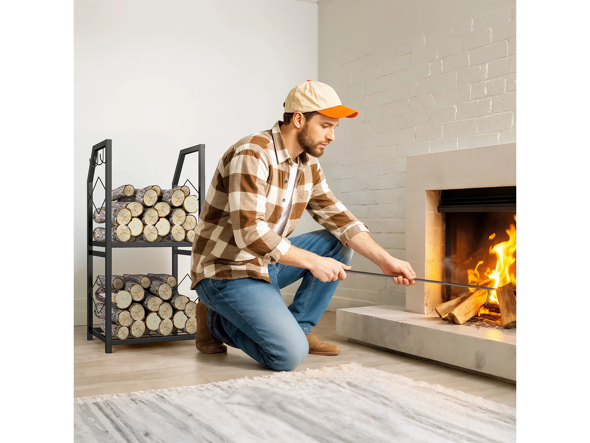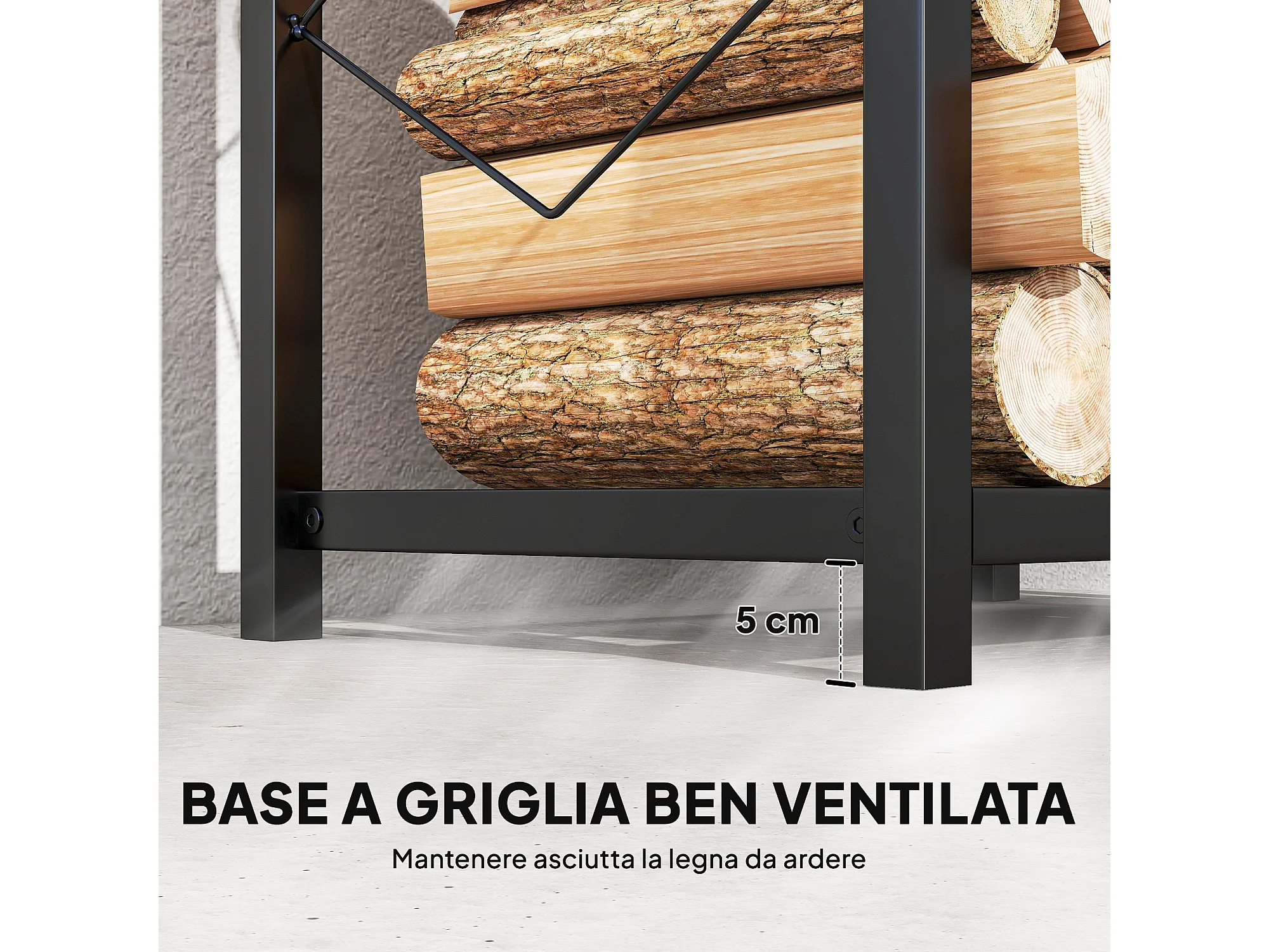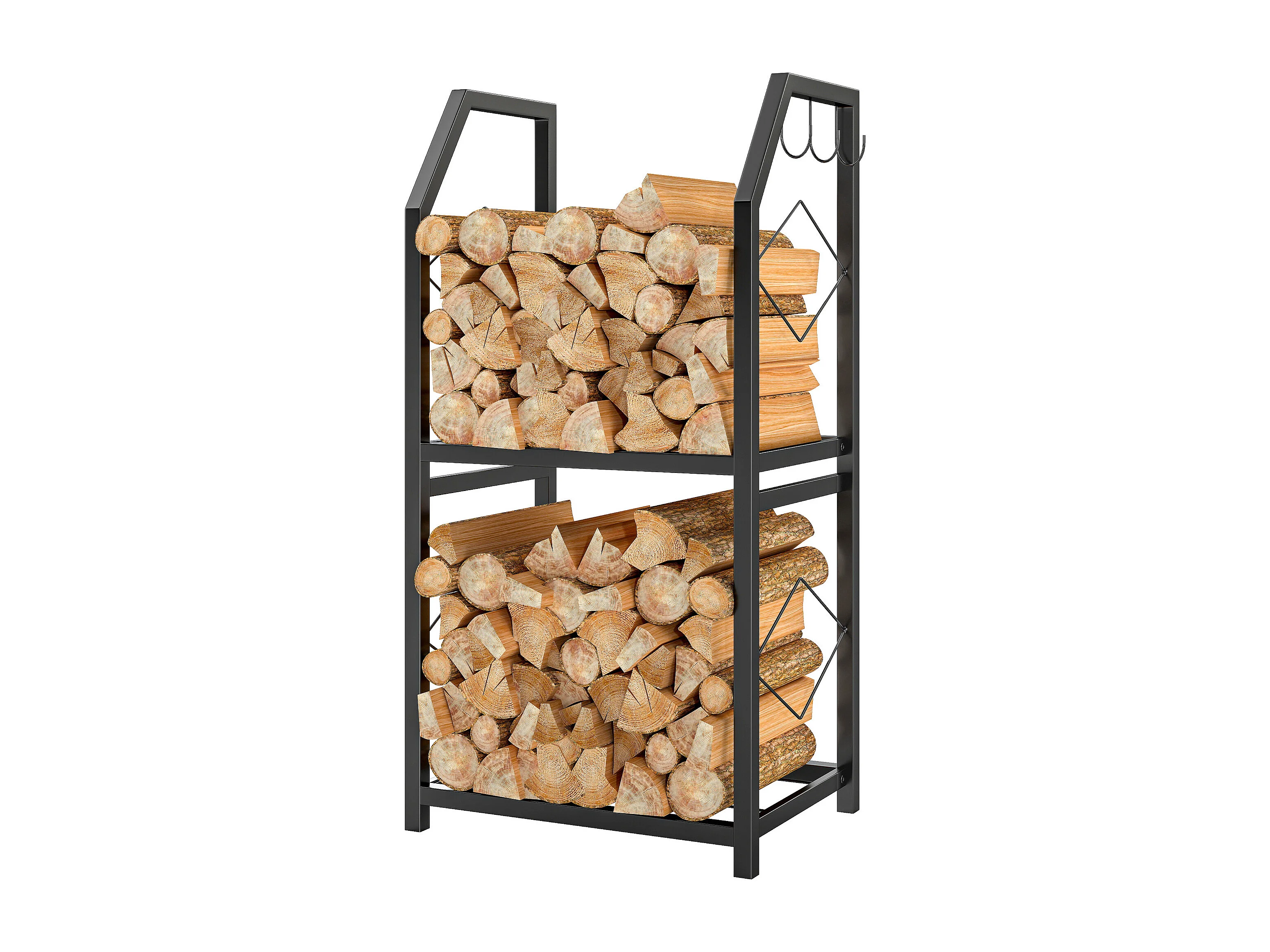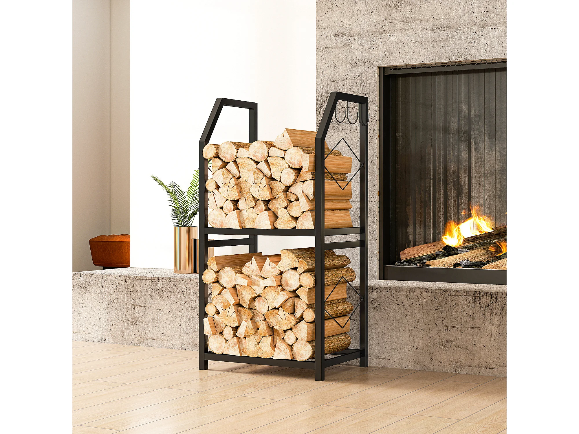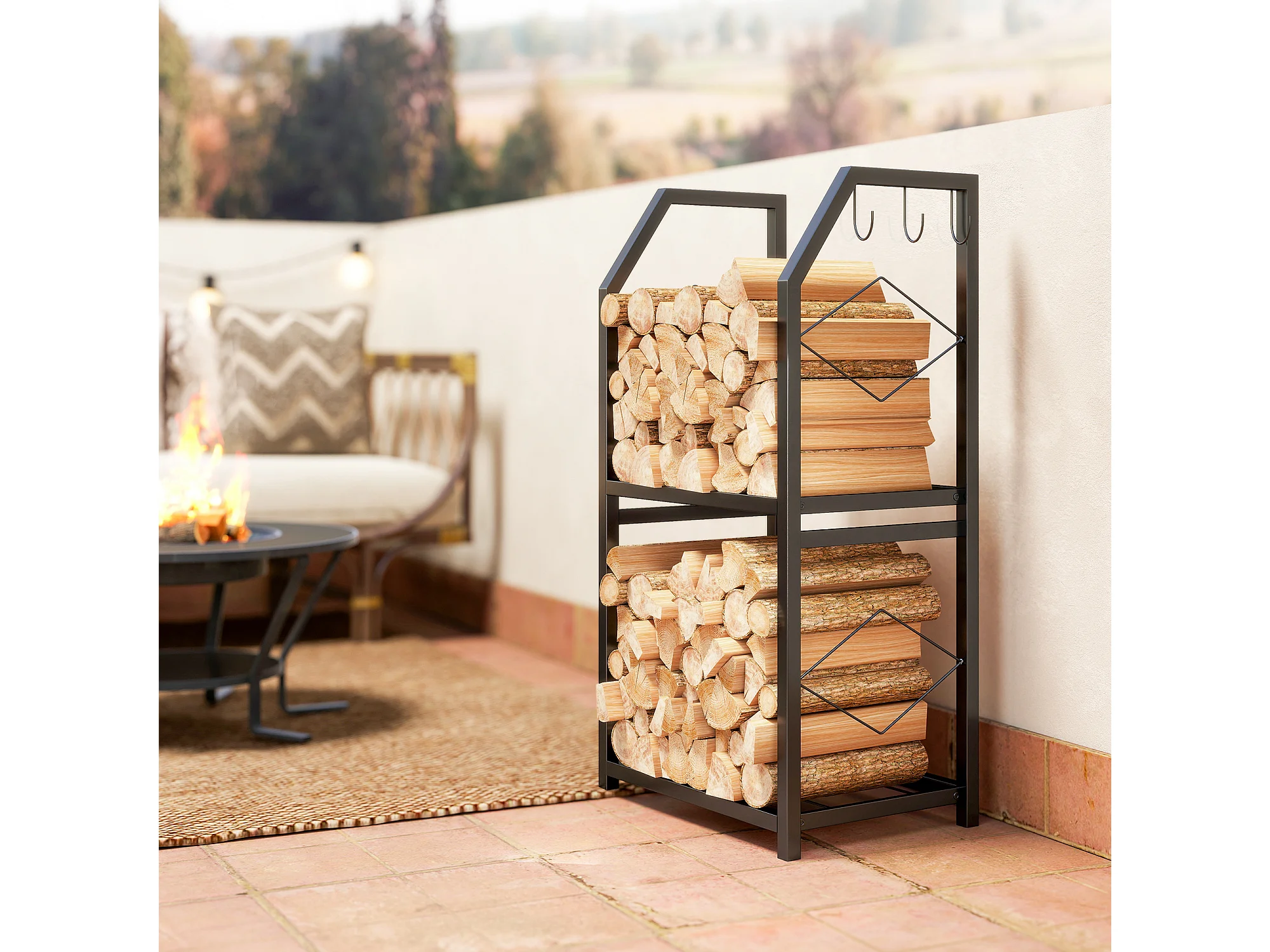 Portalegna da esterno e interno a 2 livelli e 3 ganci in acciaio nero
