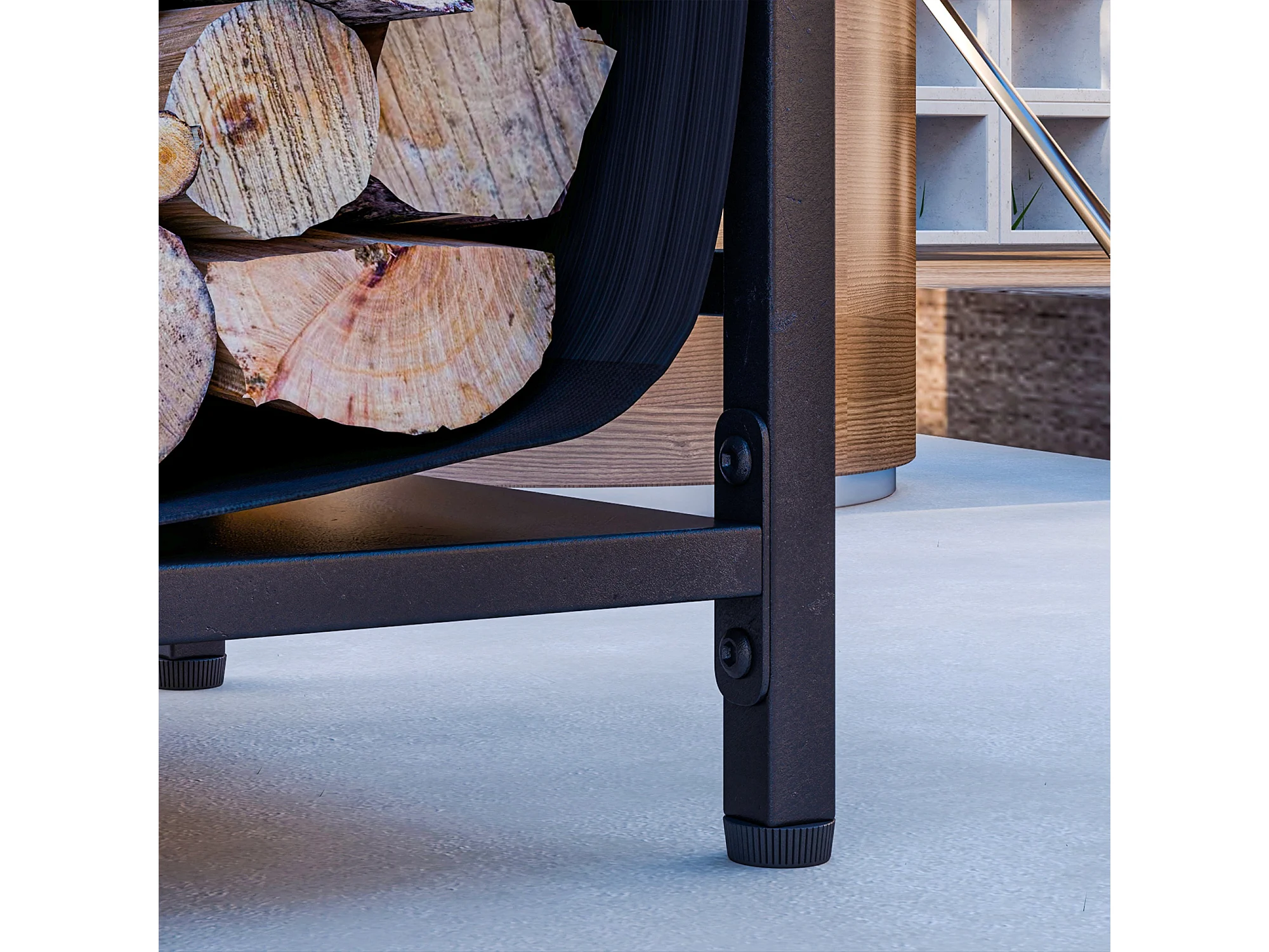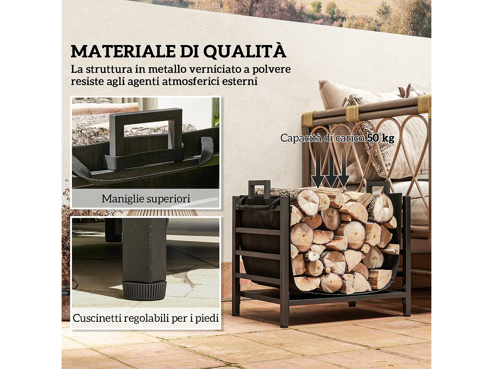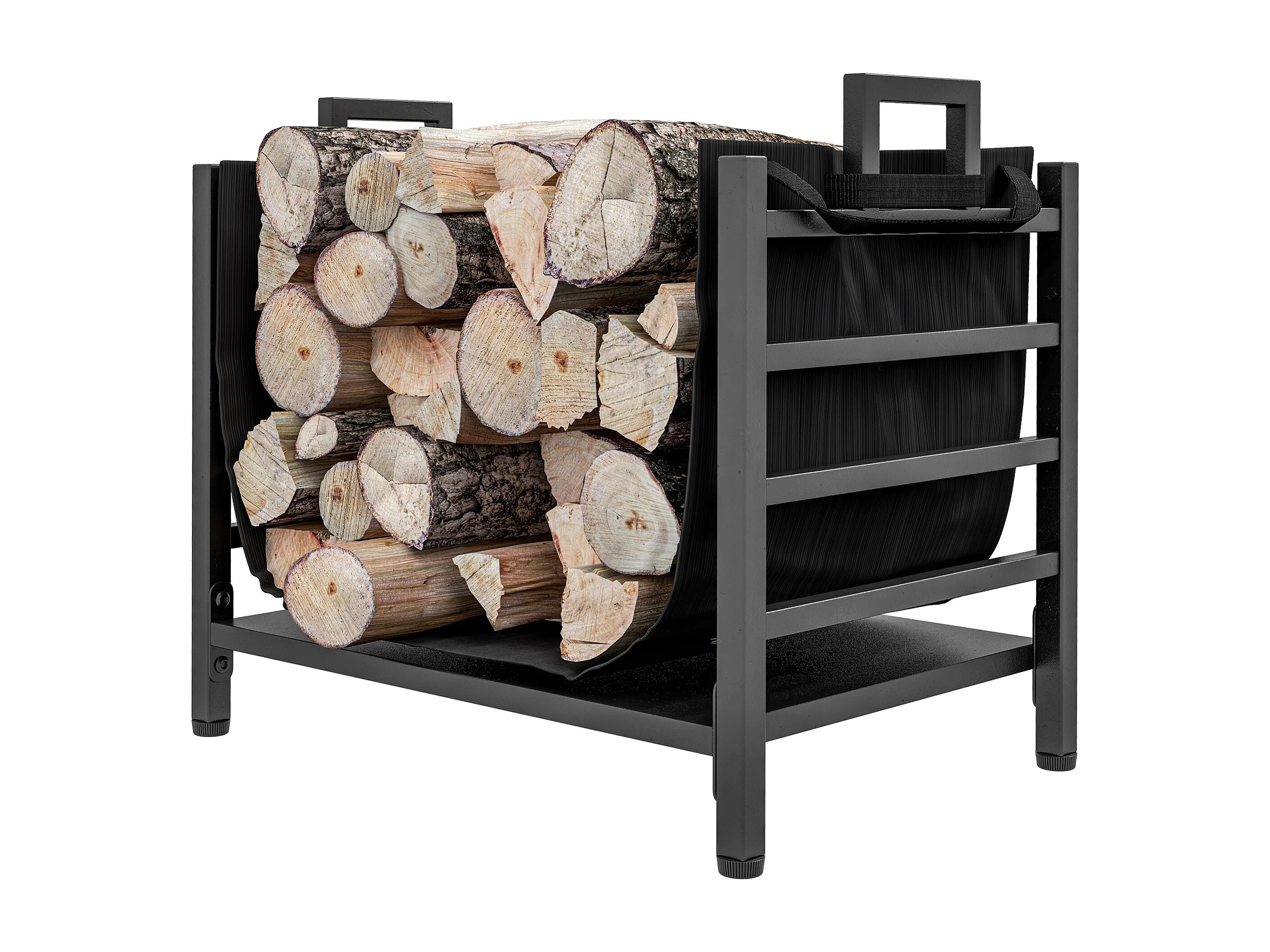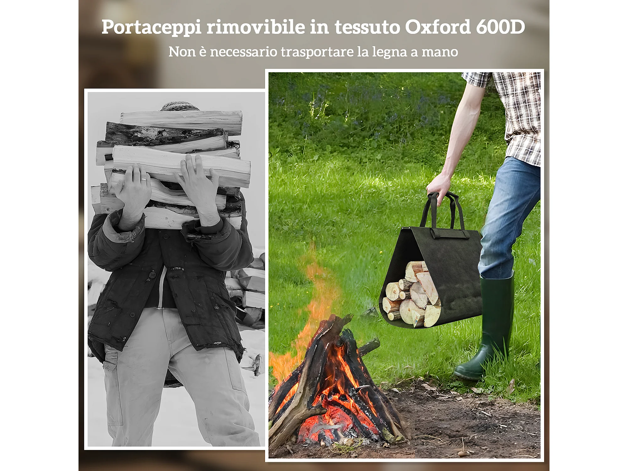 Portalegna da esterno e interno con sacca di trasporto in acciaio nero