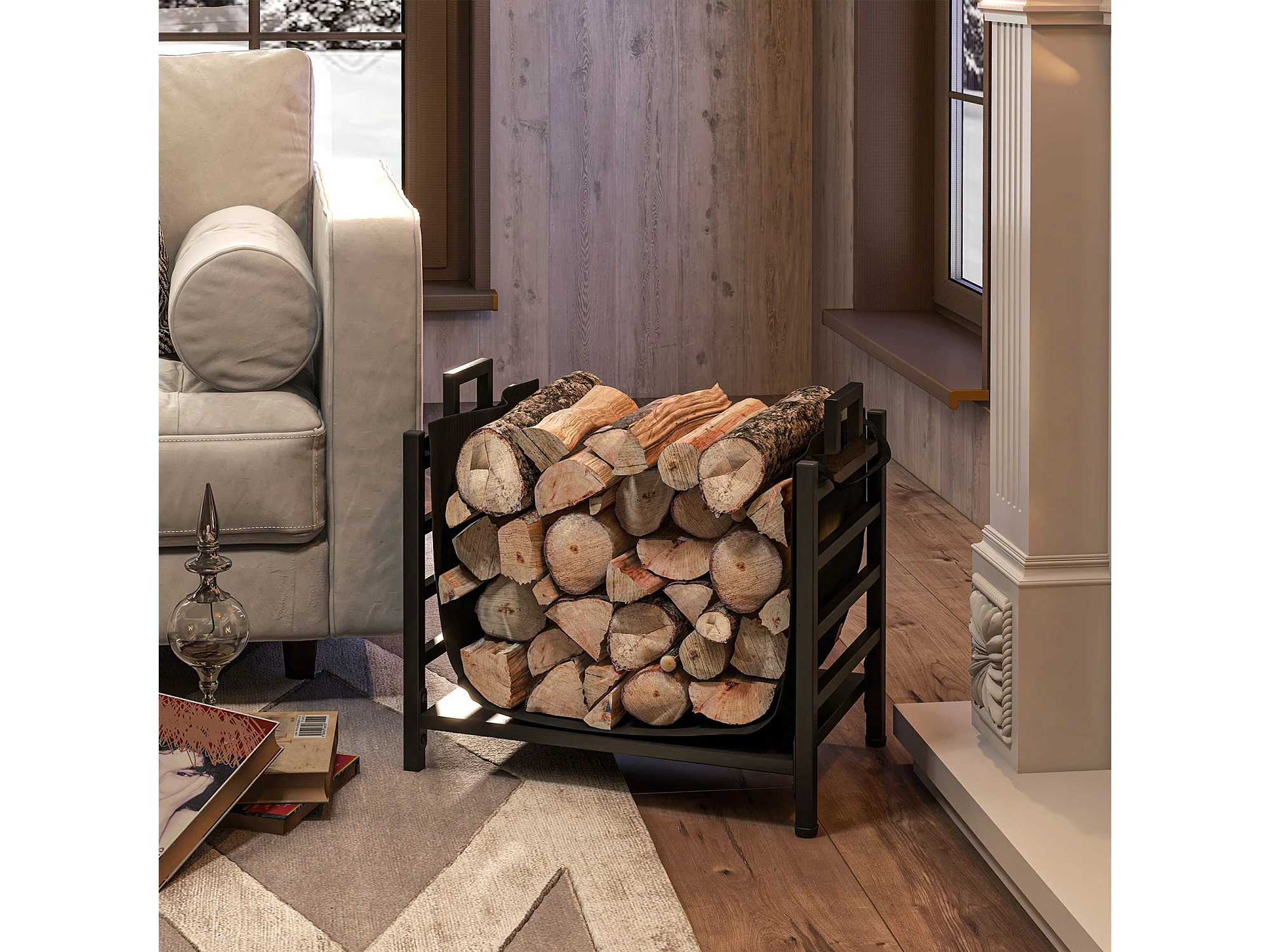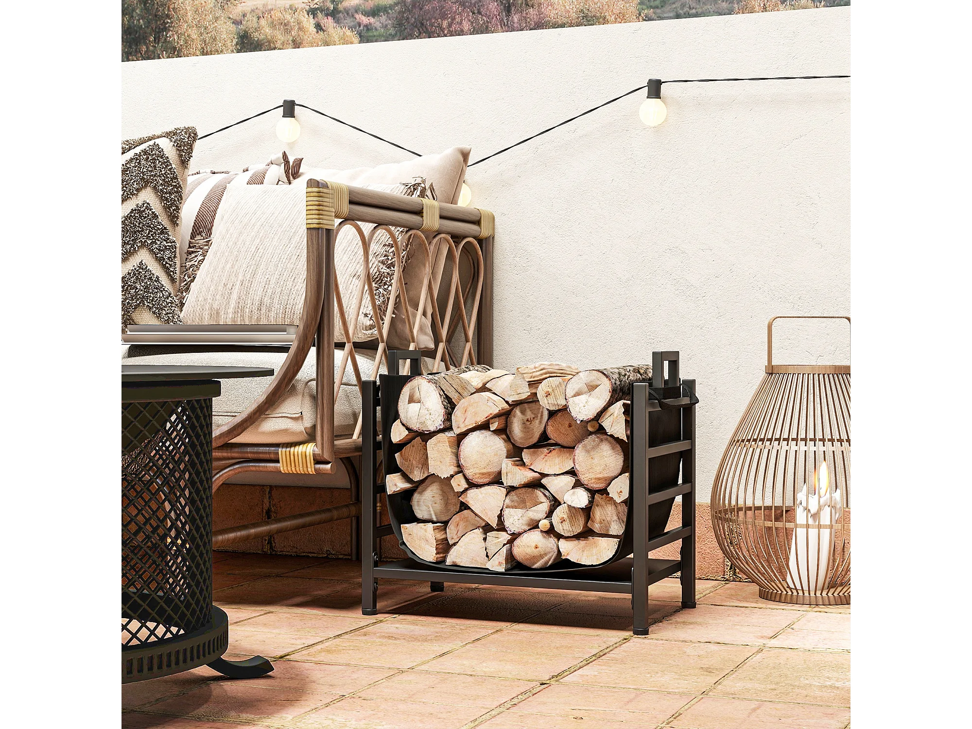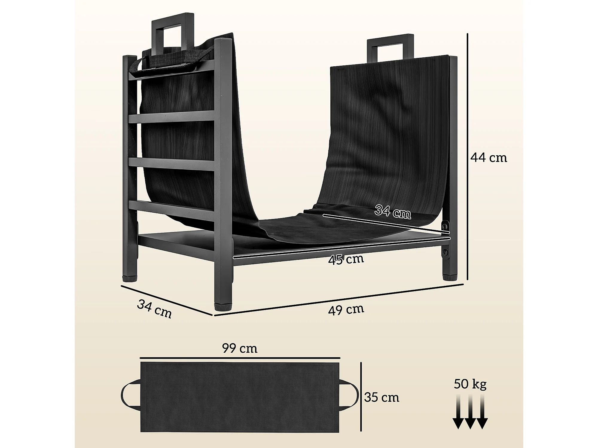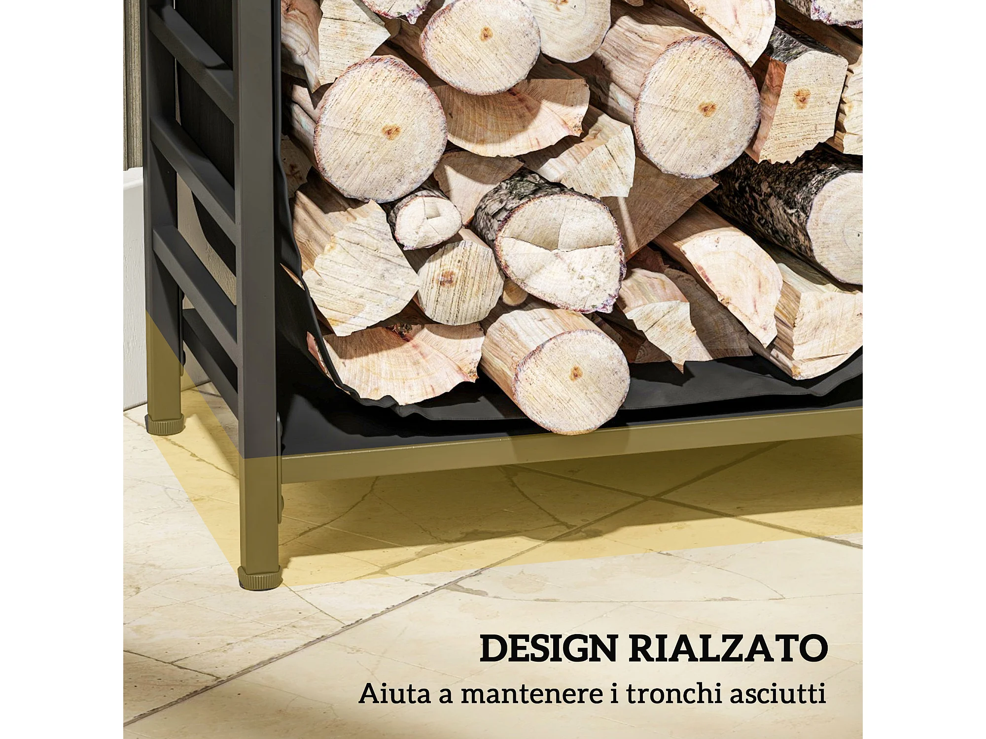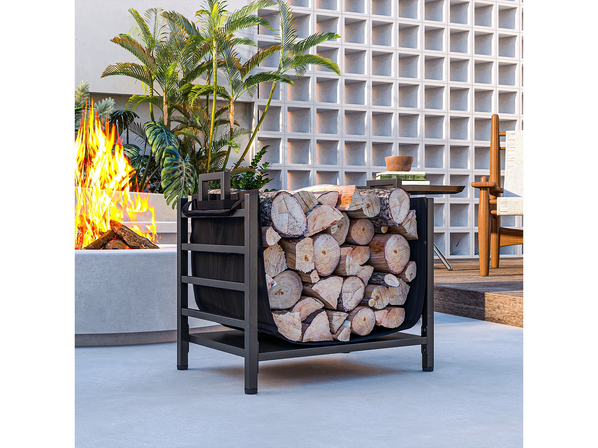 Portalegna da esterno e interno con sacca di trasporto in acciaio nero