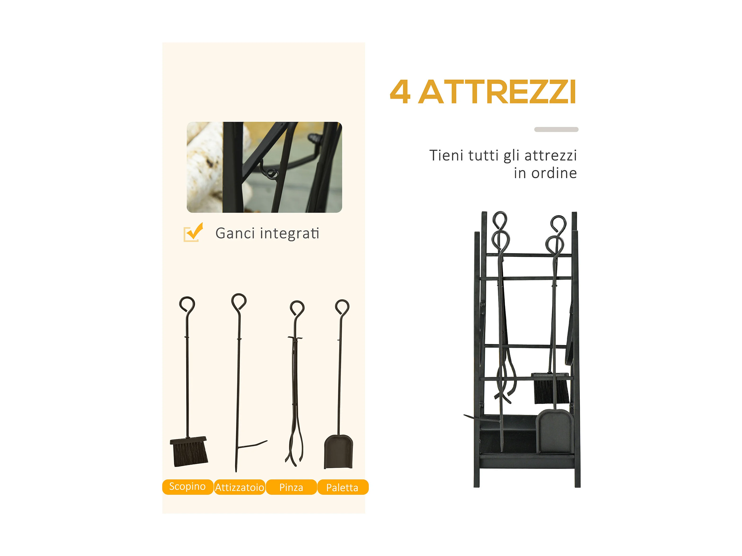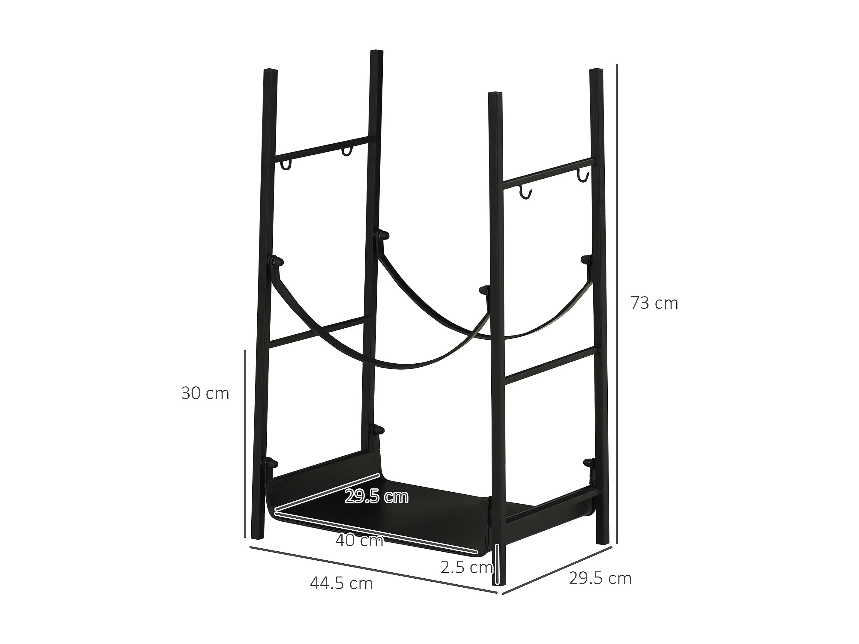 Portalegna per camino a 2 ripiani in metallo con accessori nero
