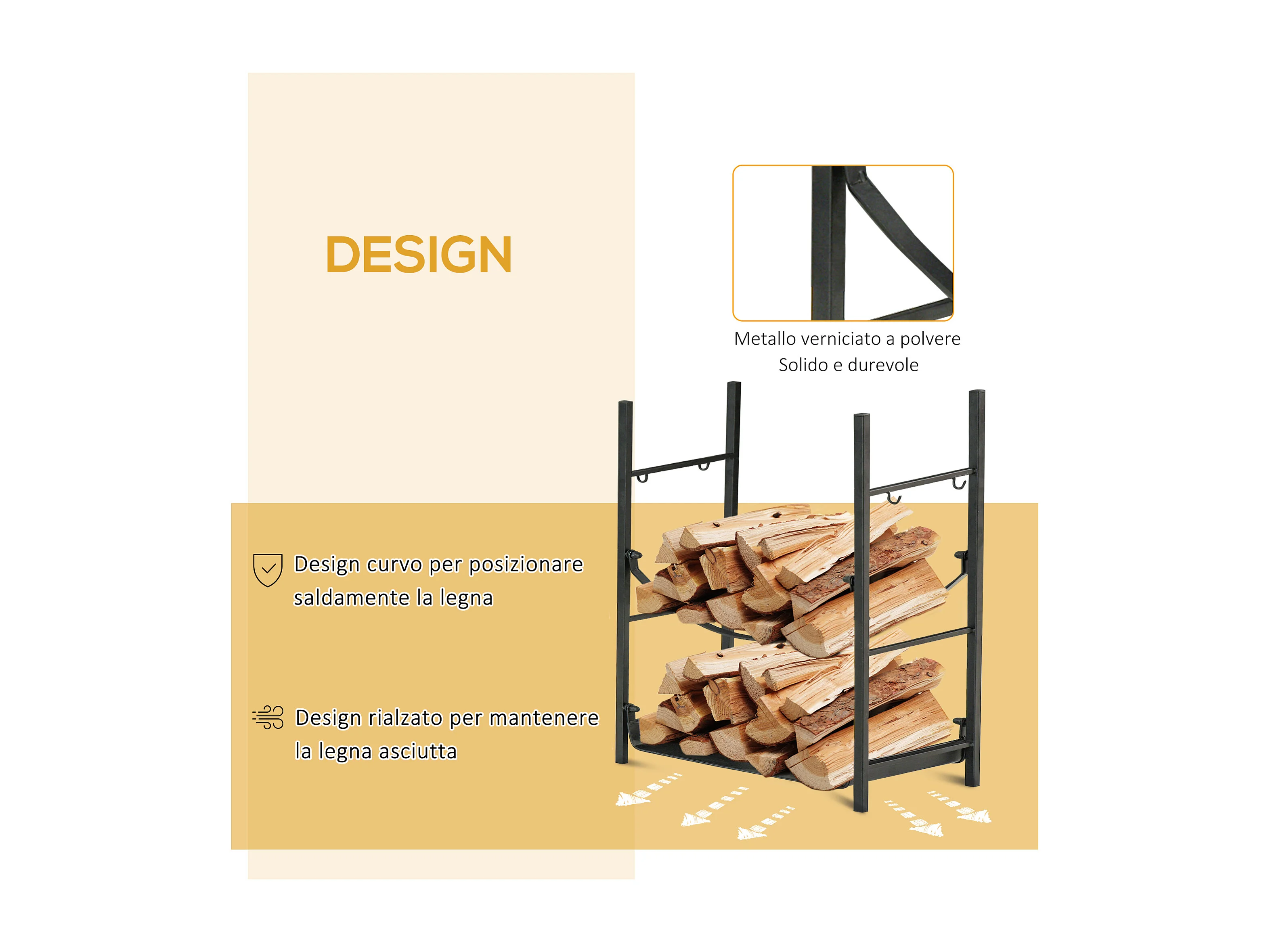 Portalegna da interno ed esterno fino 70kg accessori inclusi
