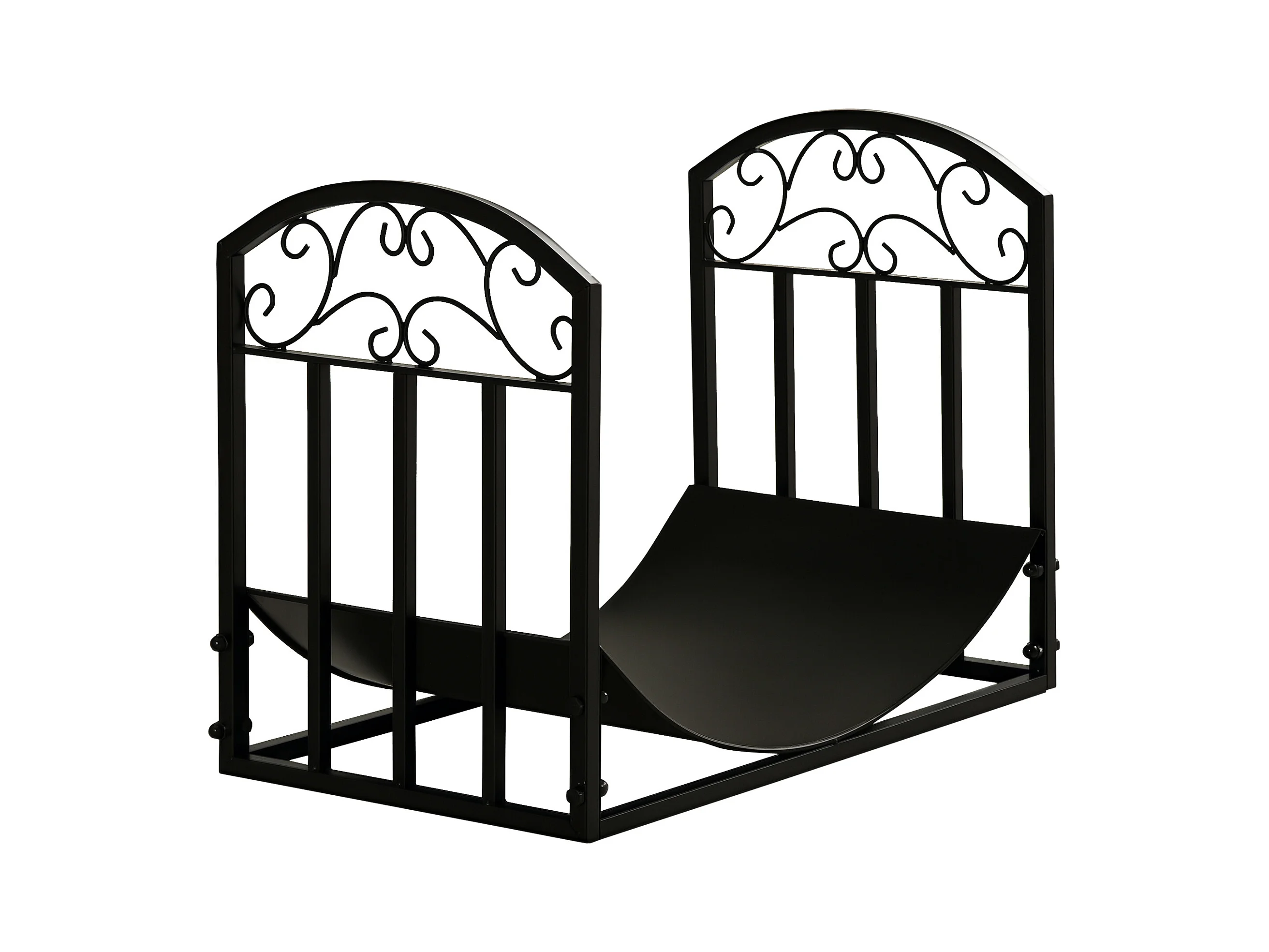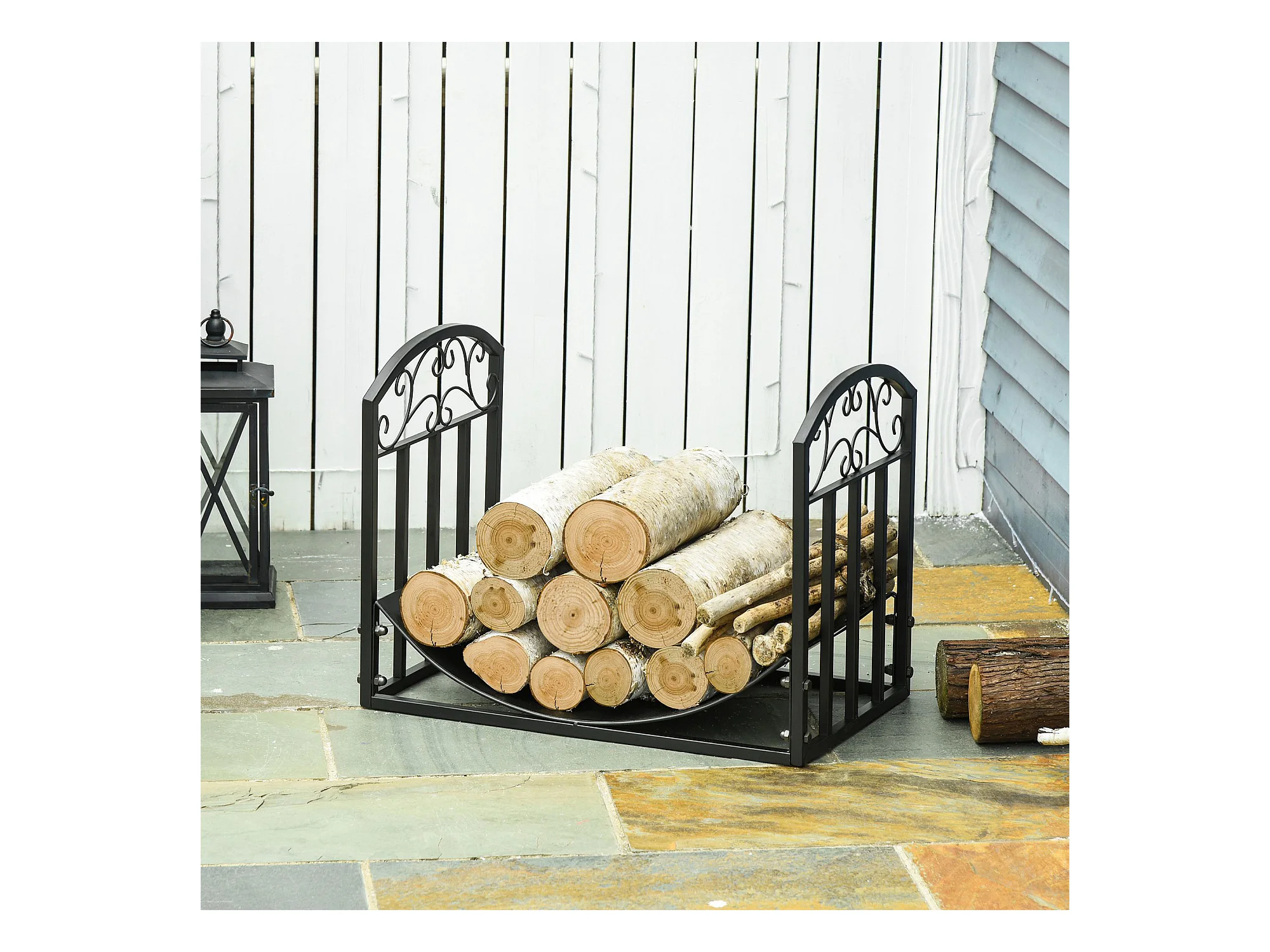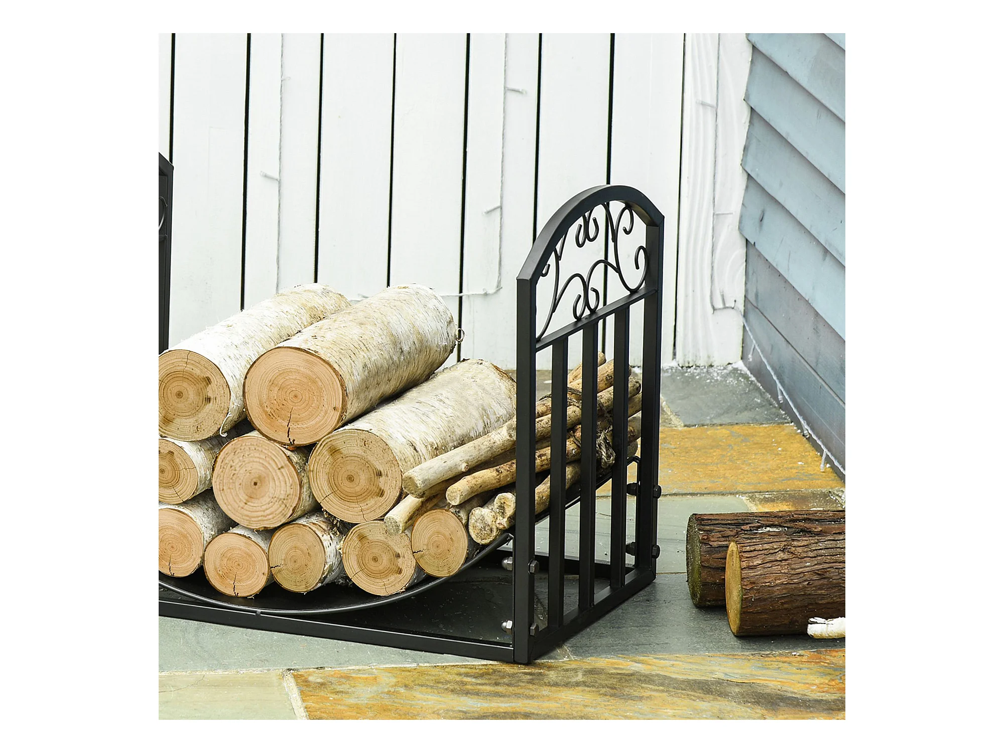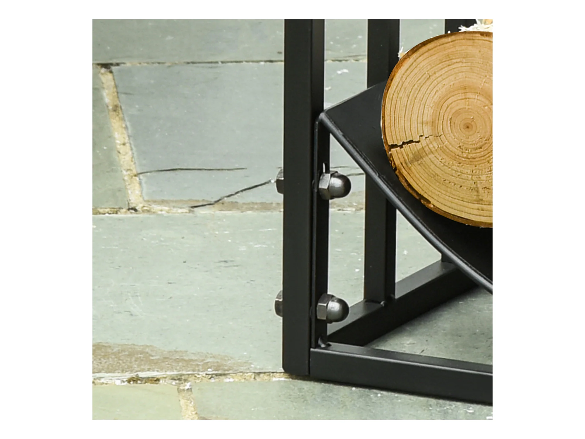 Portalegna per camino a 2 ripiani in metallo con accessori nero