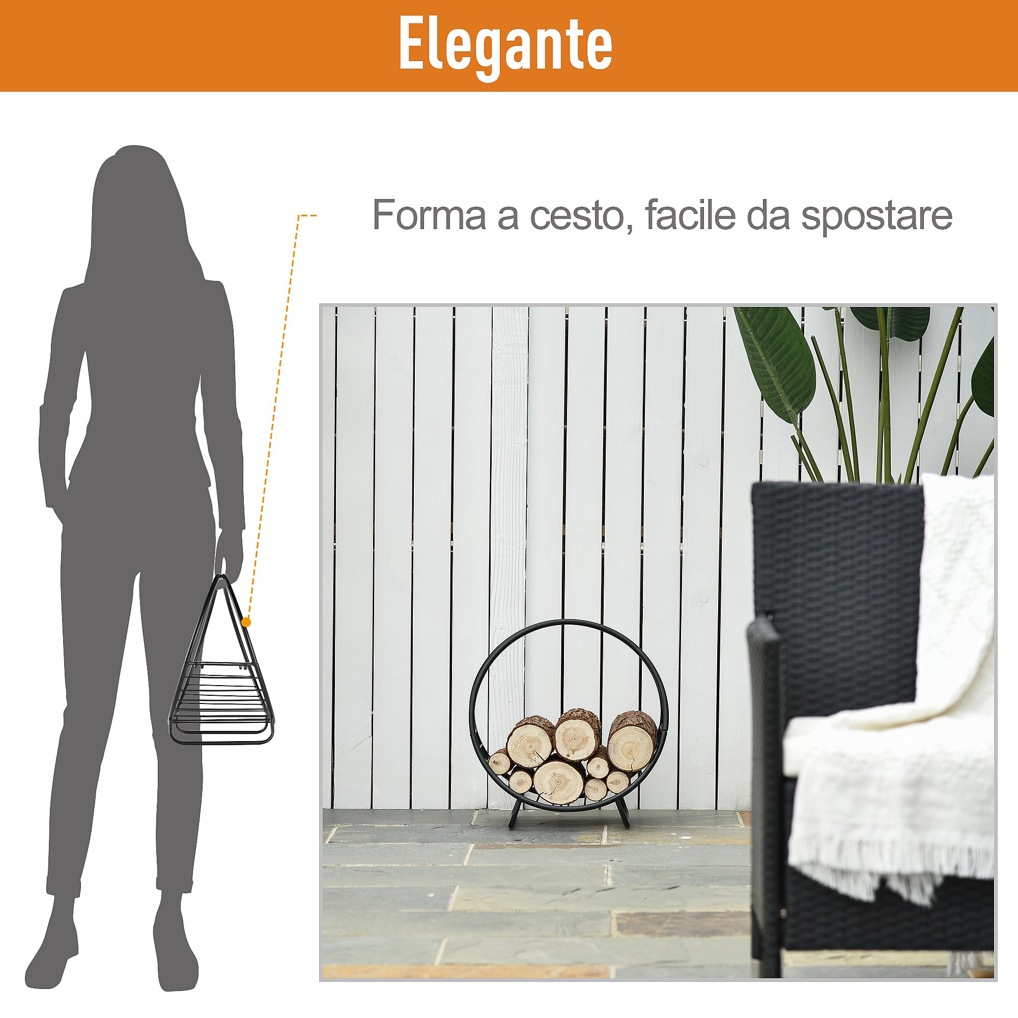Portalegna in metallo per interni ed esterni con forma a cesto
