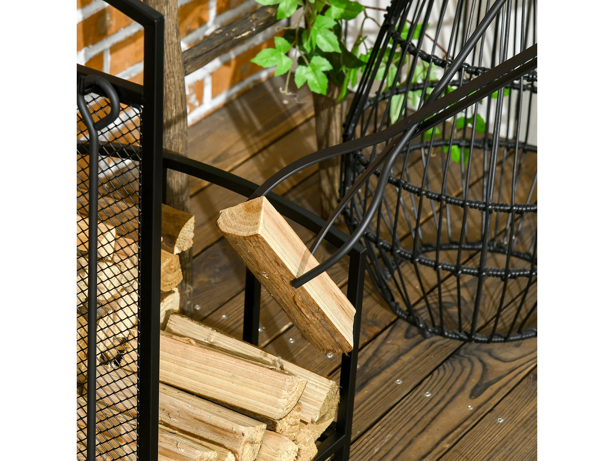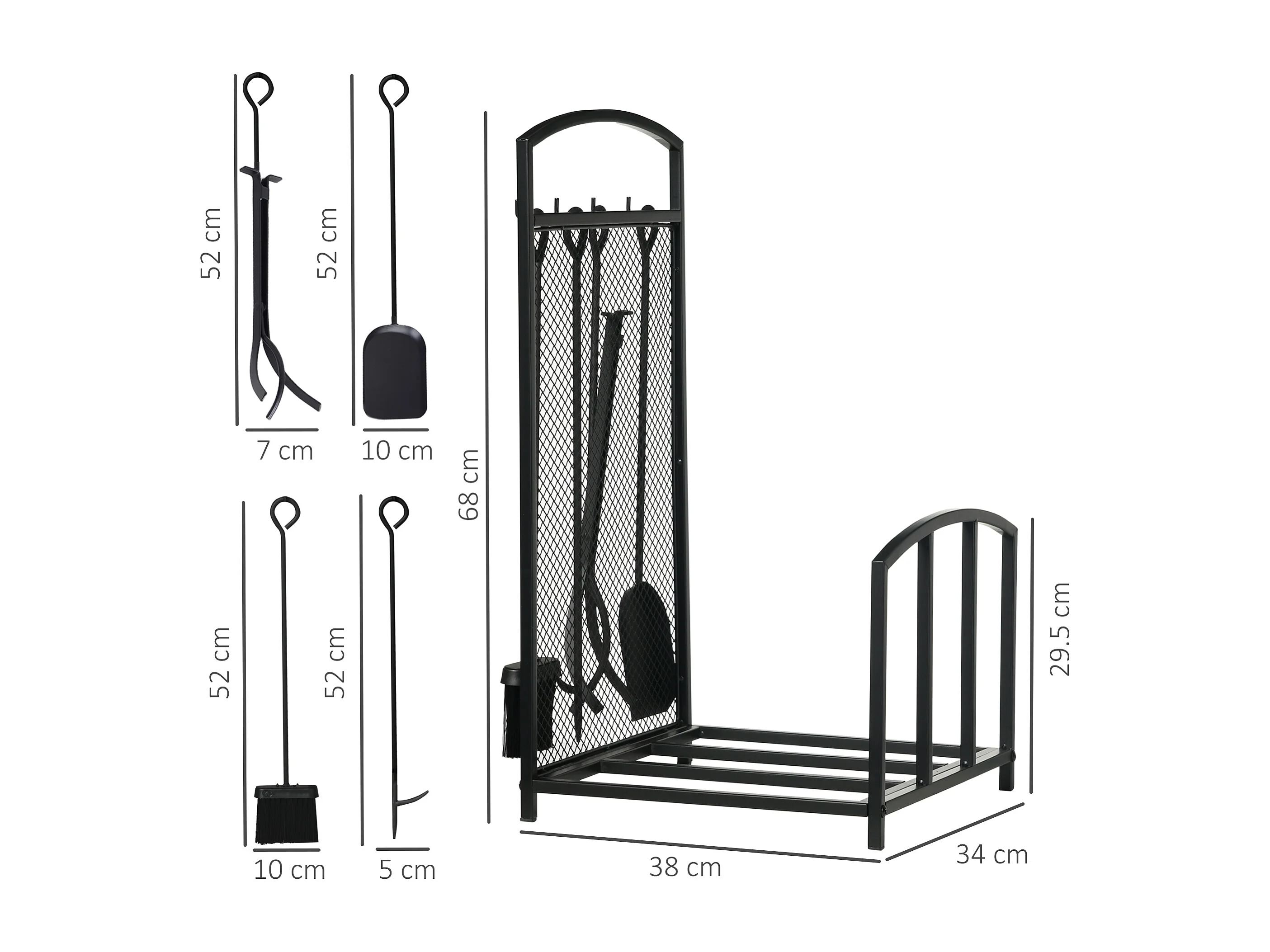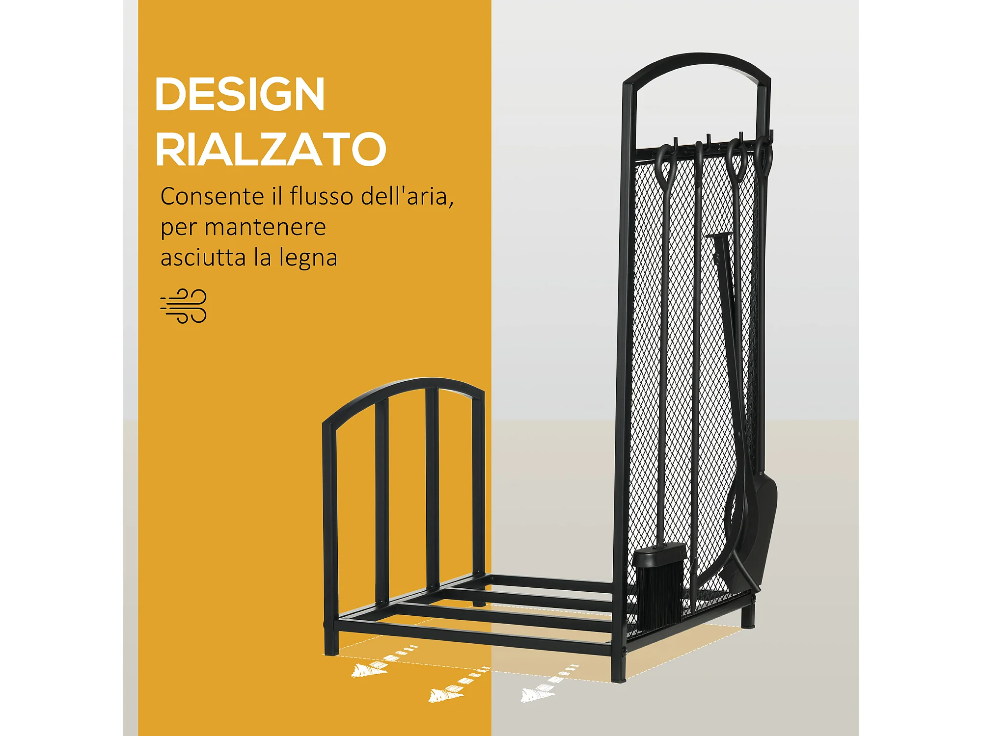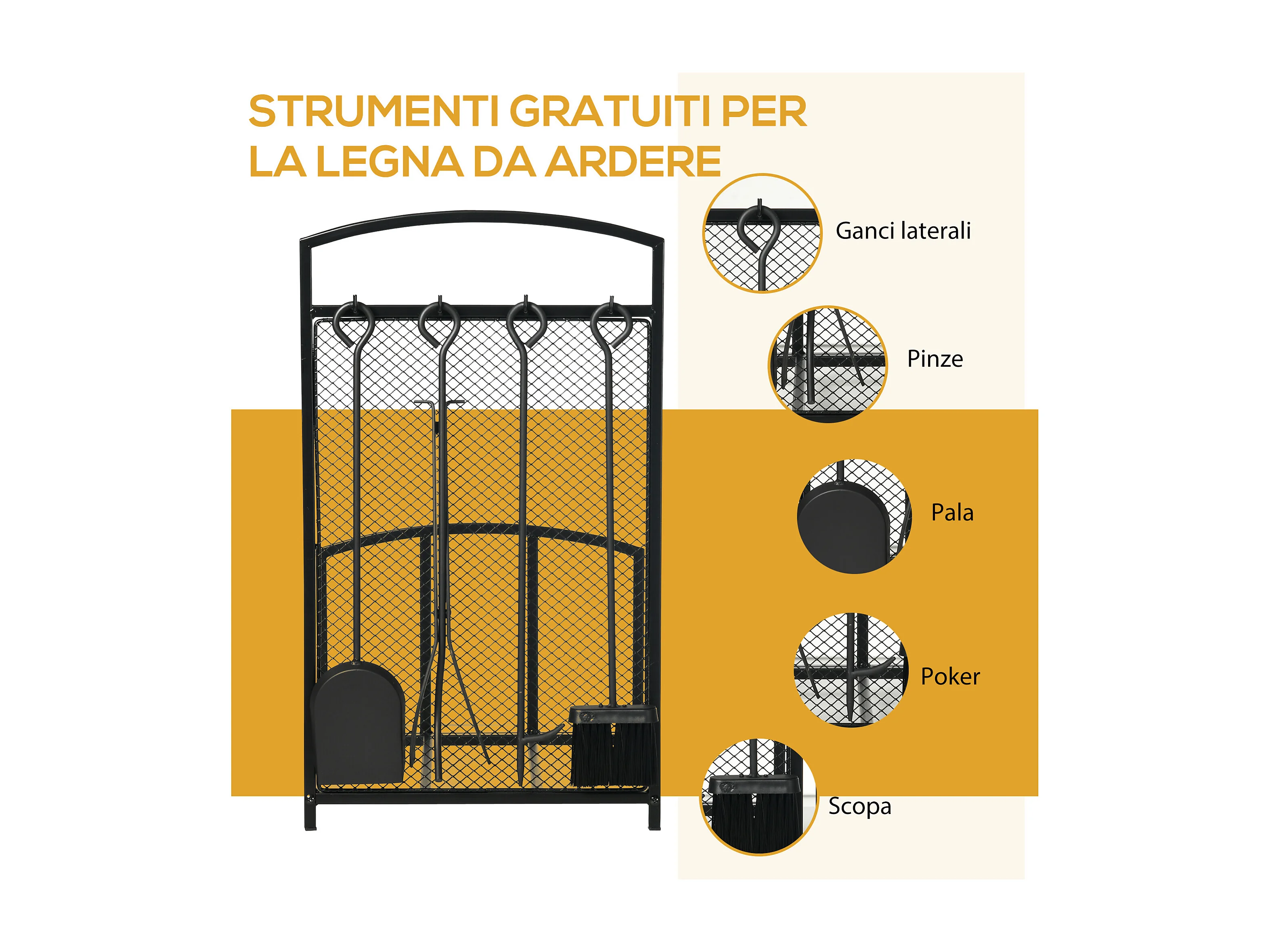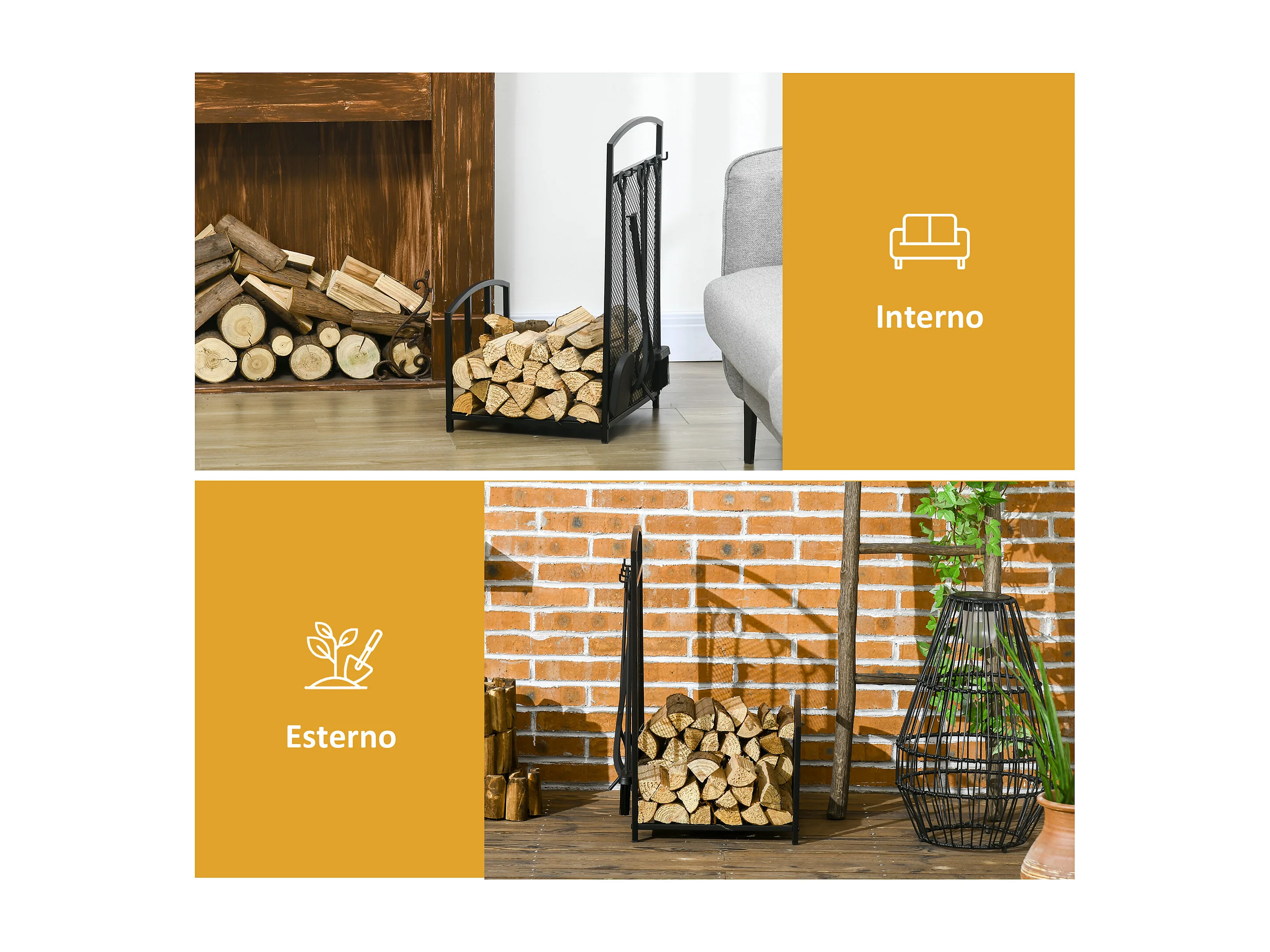 Portalegna in metallo per interno esterno con 4 attrezzi