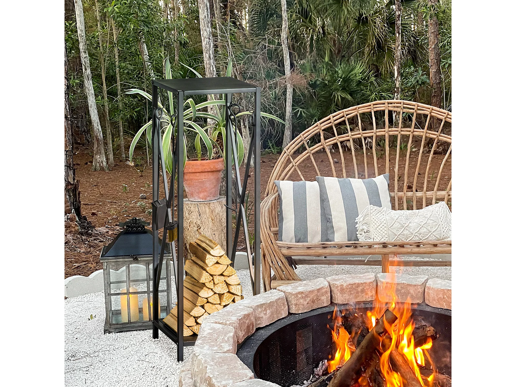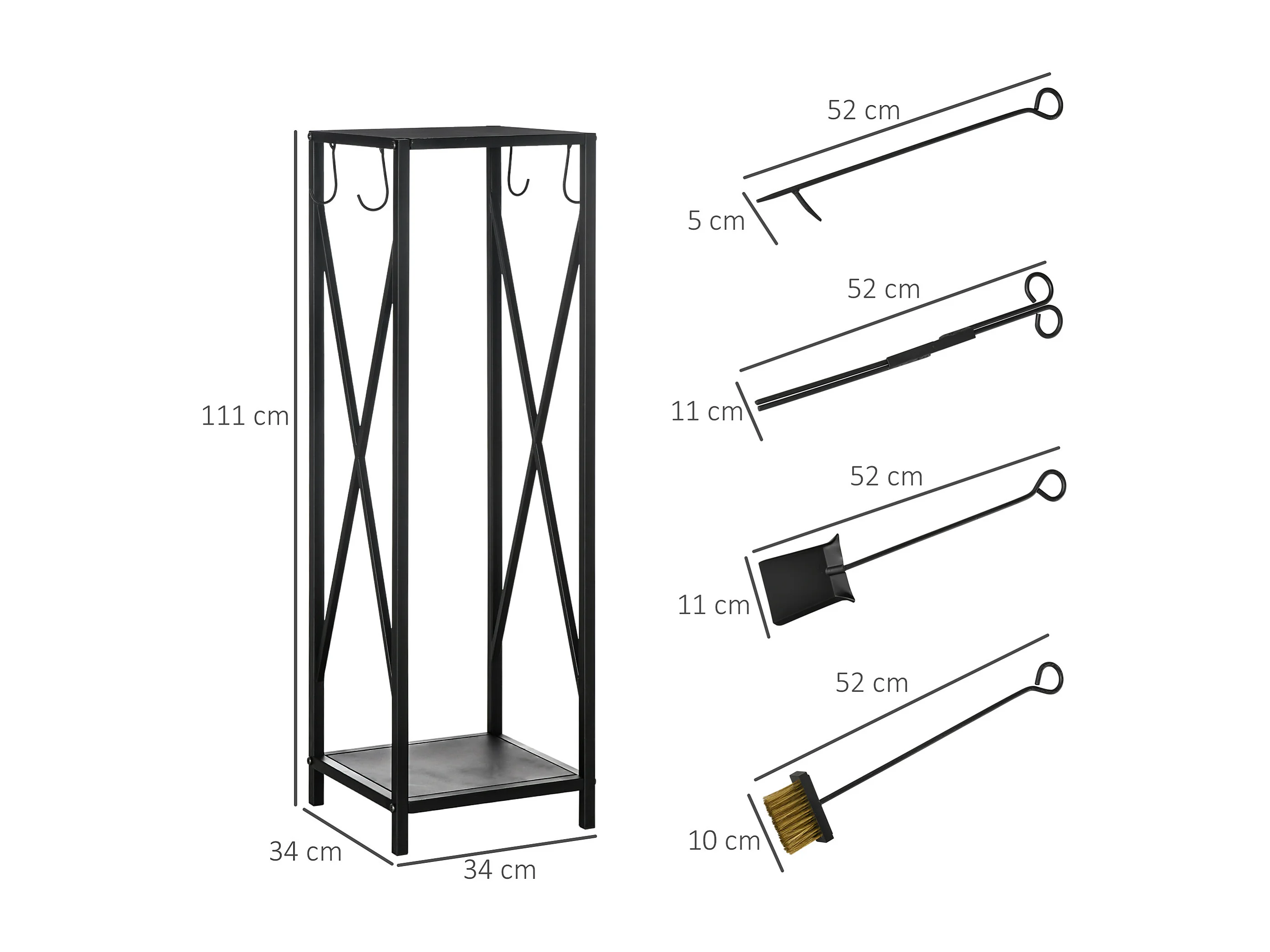 Portalegna salvaspazio con paletta scopino attizzatoio pinza
