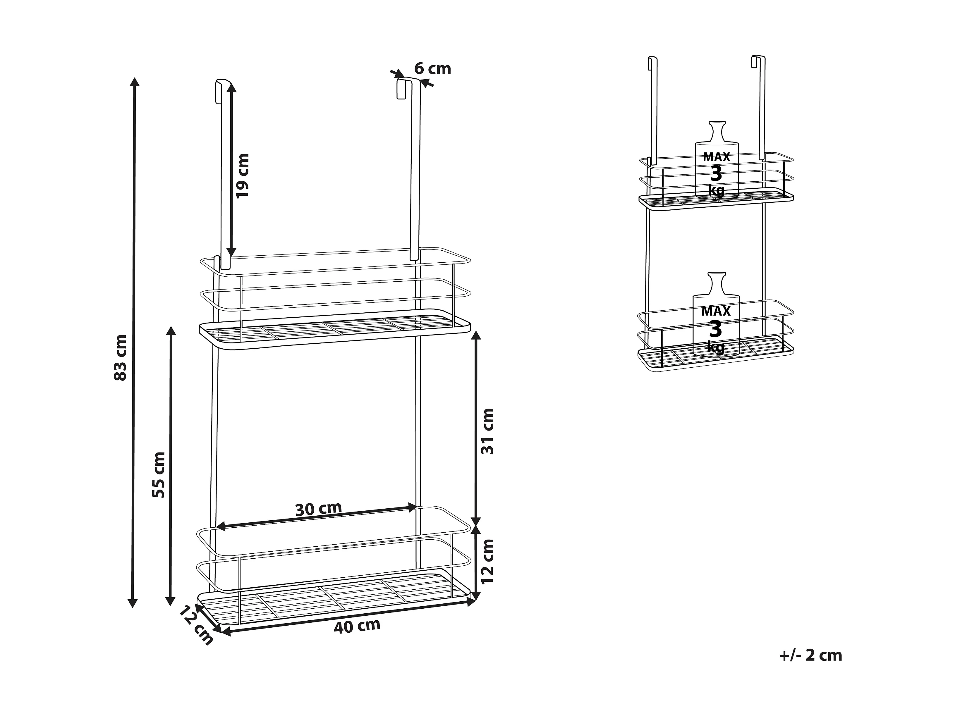 Portaoggetti bagno da appendere con due livelli in metallo nero TAYASU