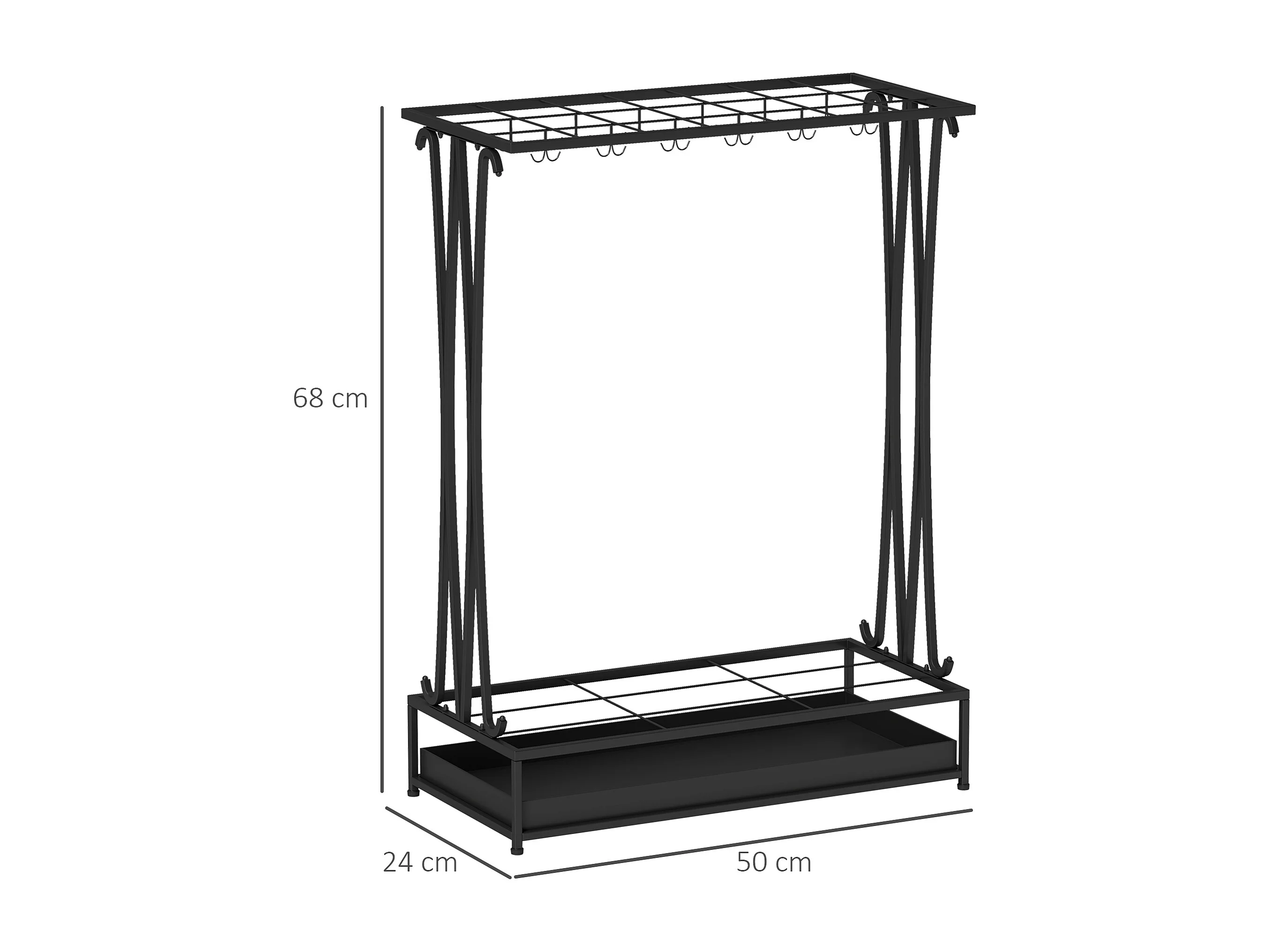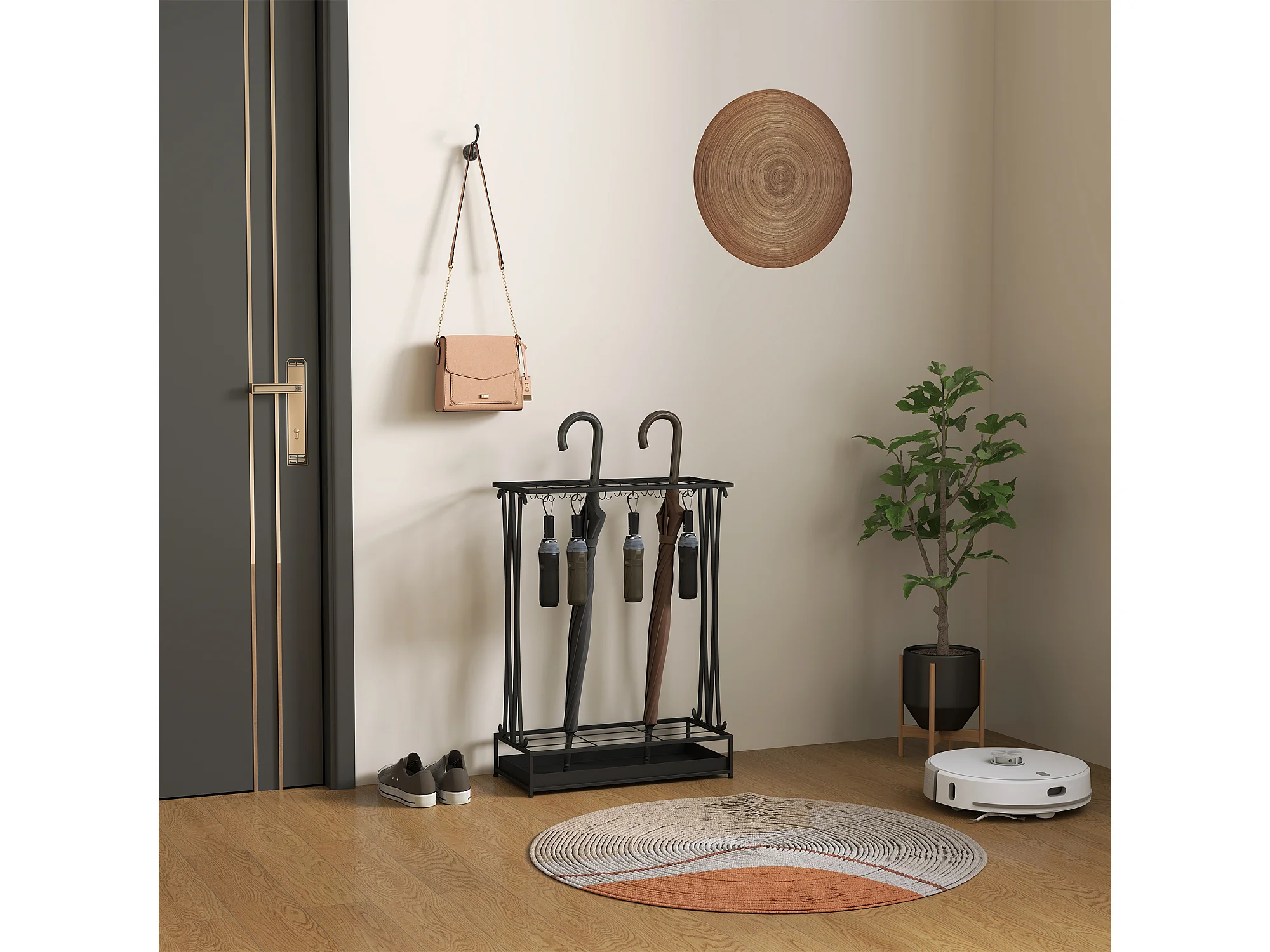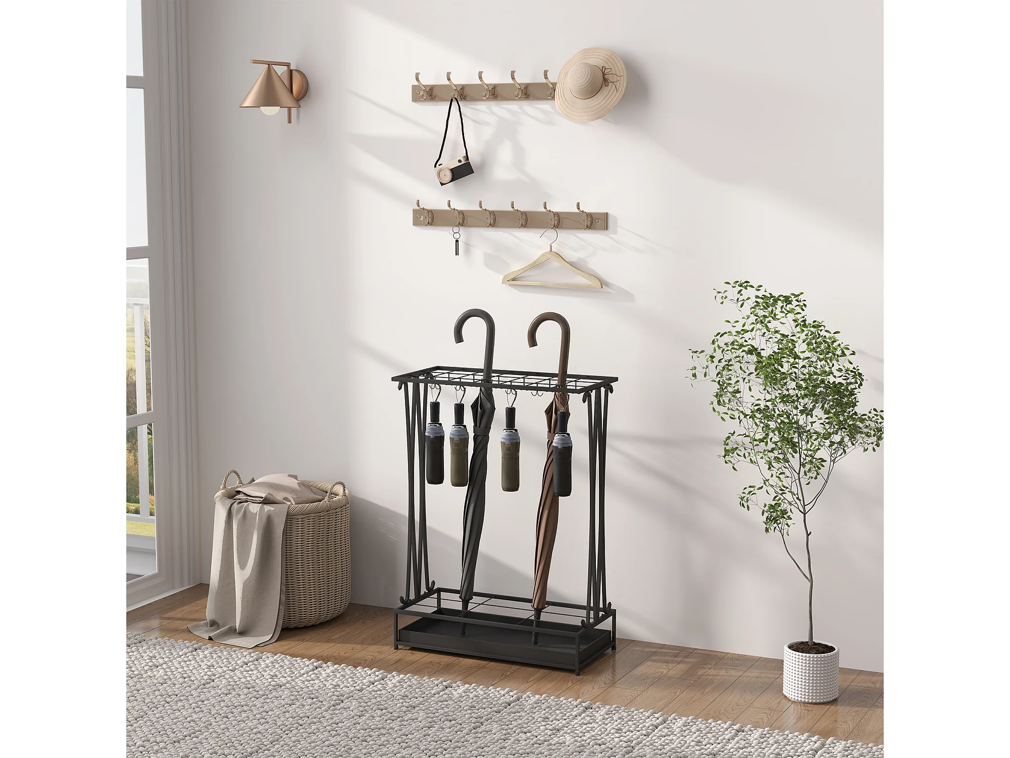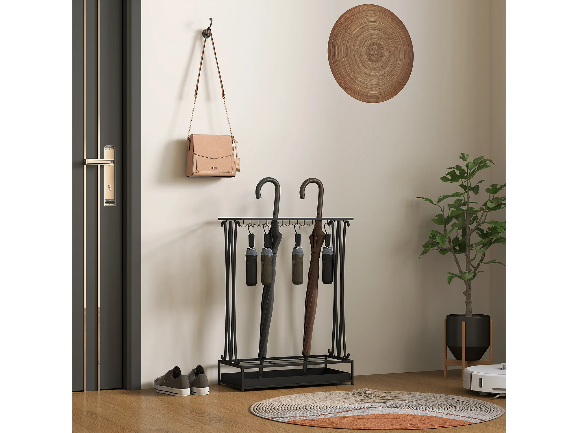 Portaombrelli di design con 4 ganci e vaschetta in metallo nero