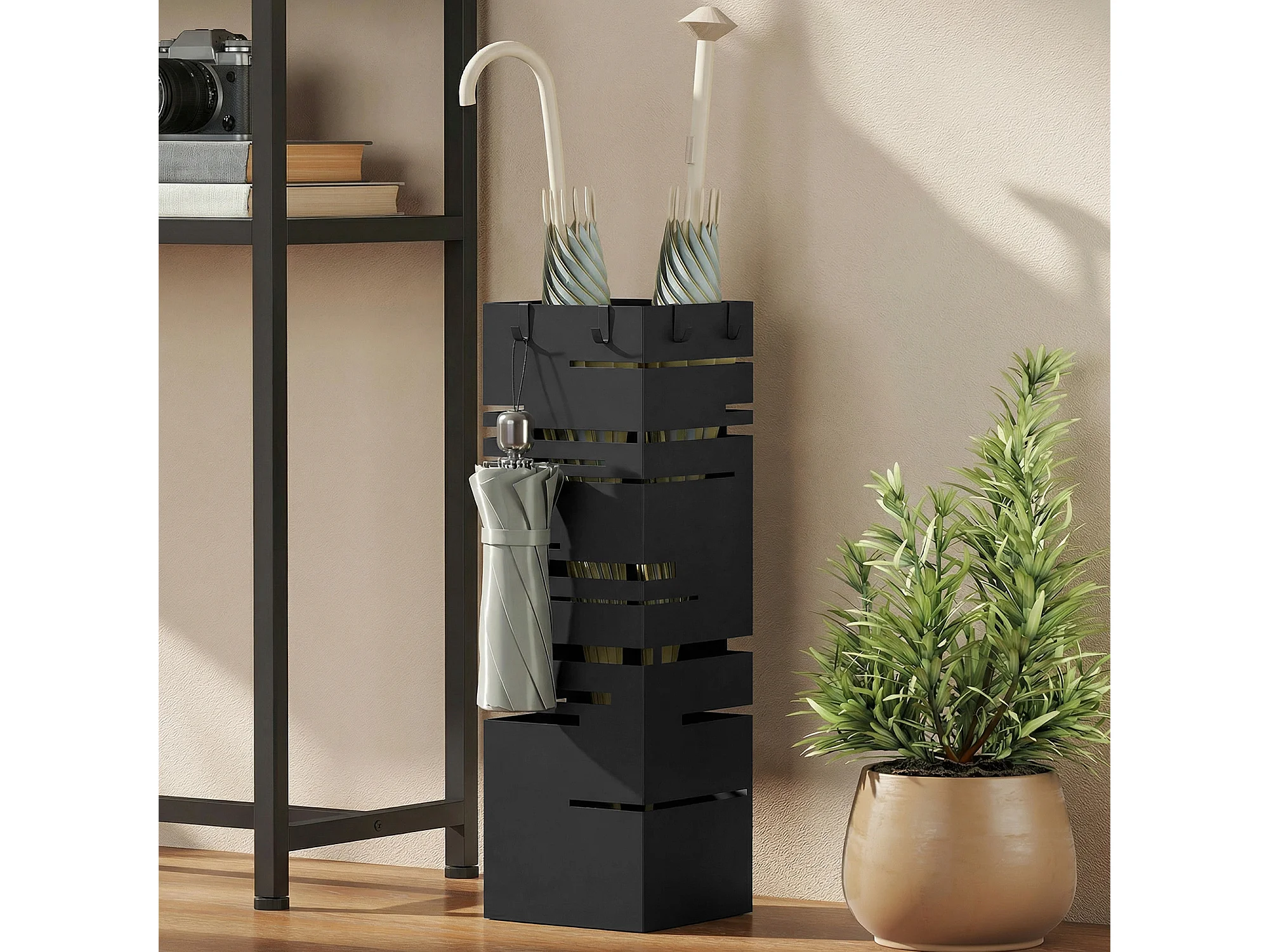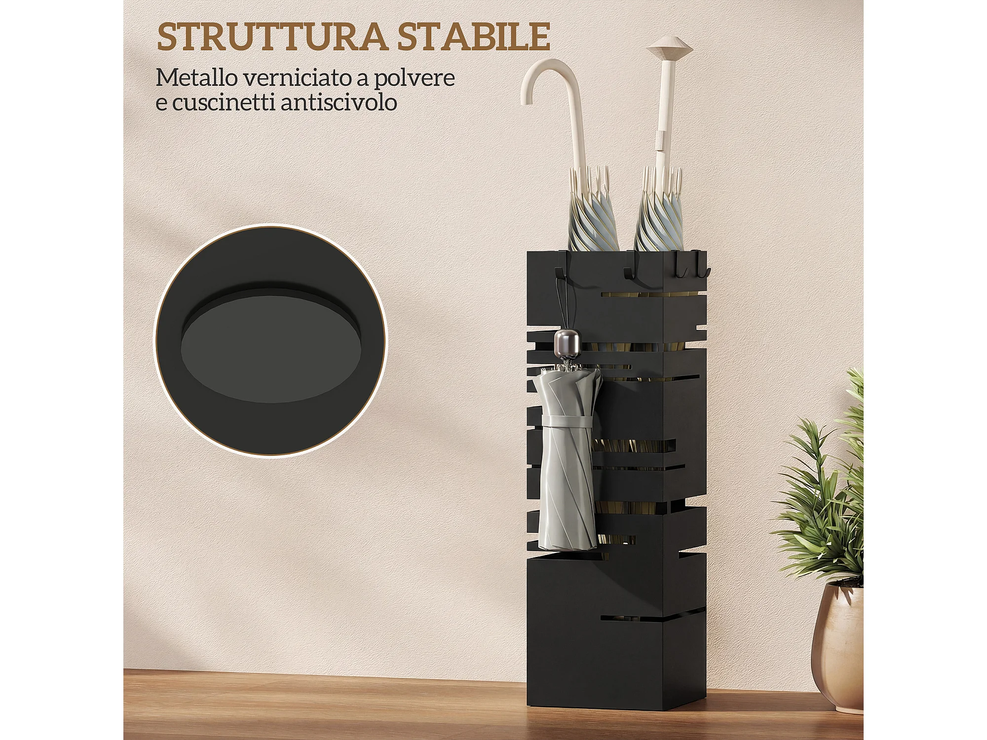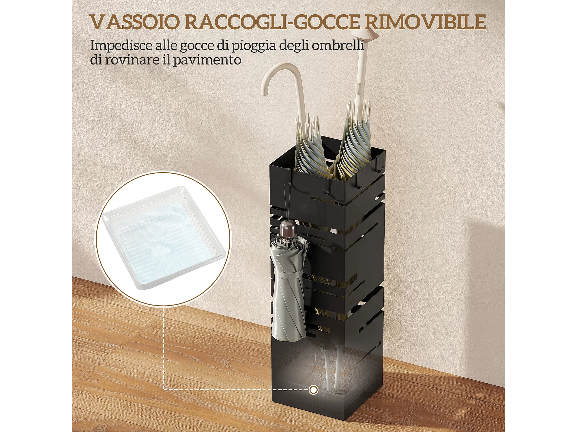 Portaombrelli quadrato per ingresso in metallo con vassoio nero