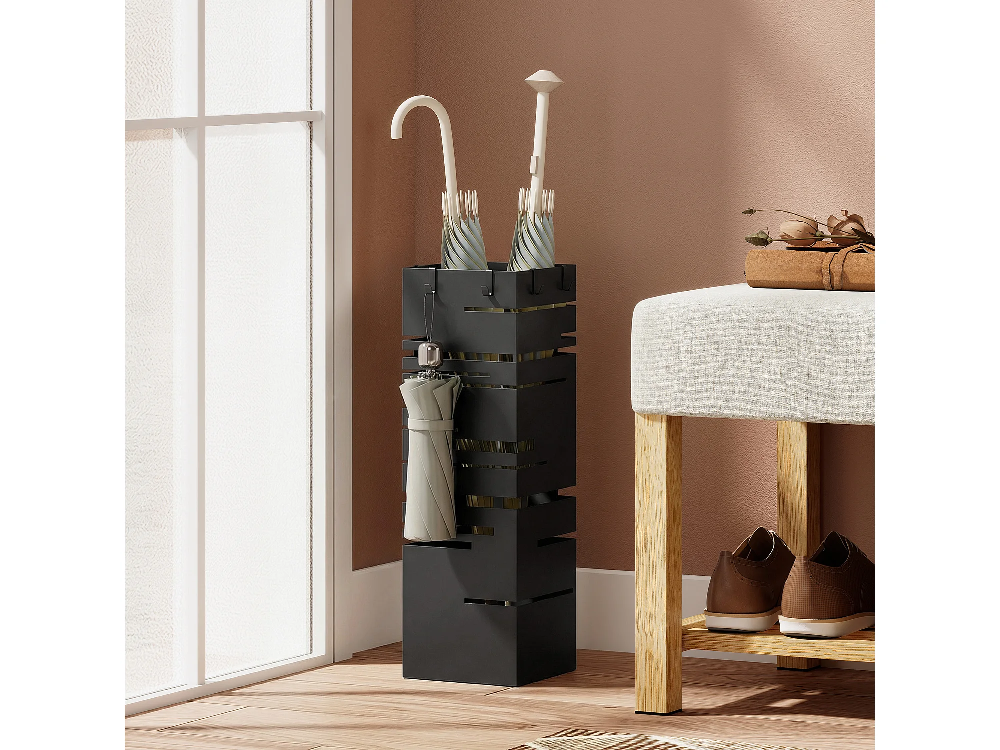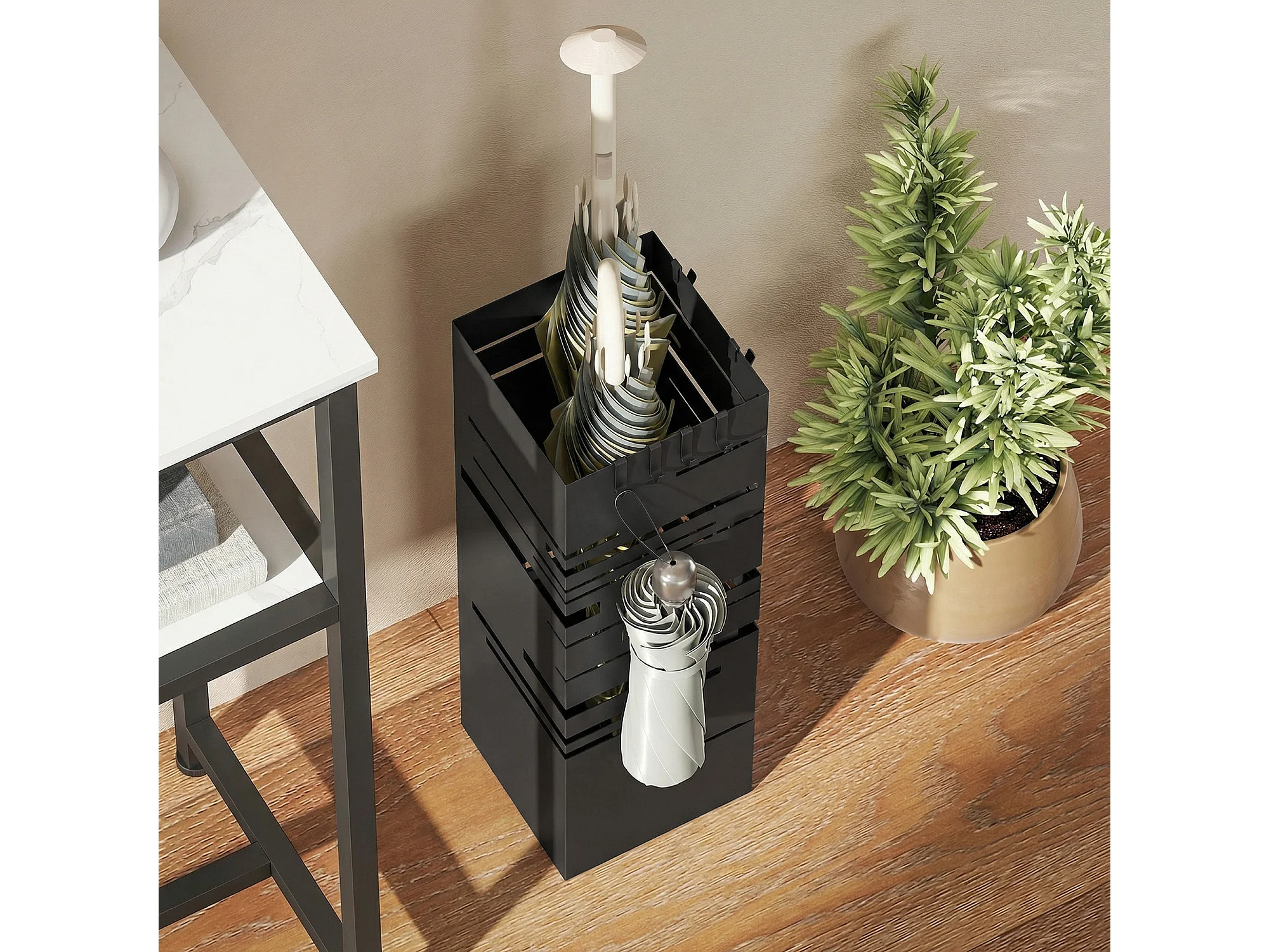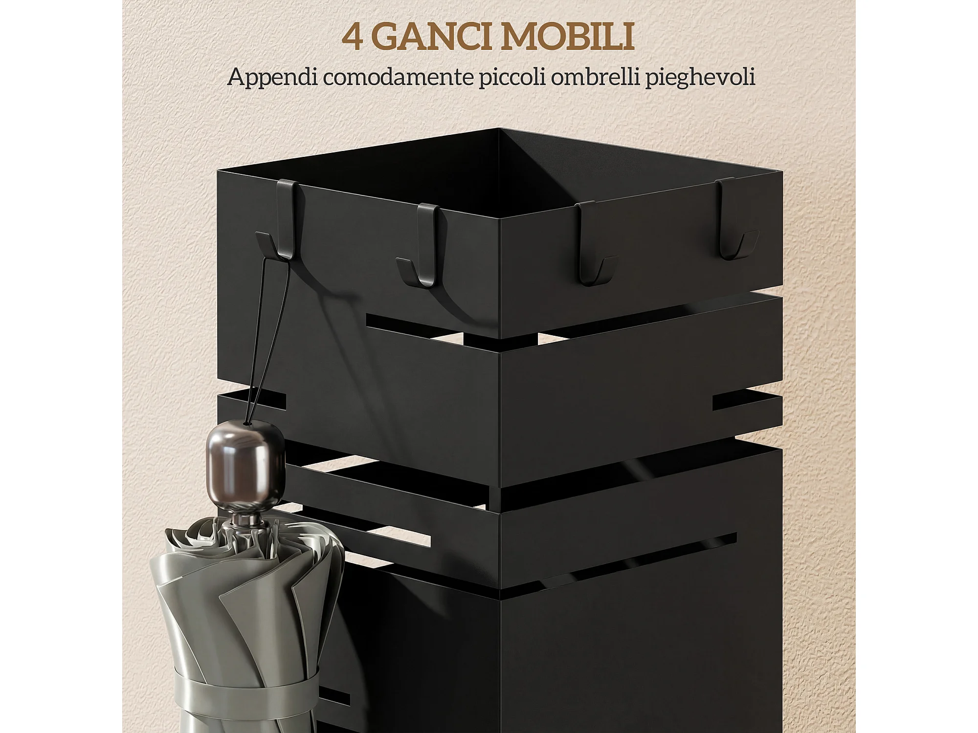 Portaombrelli quadrato per ingresso in metallo con vassoio nero