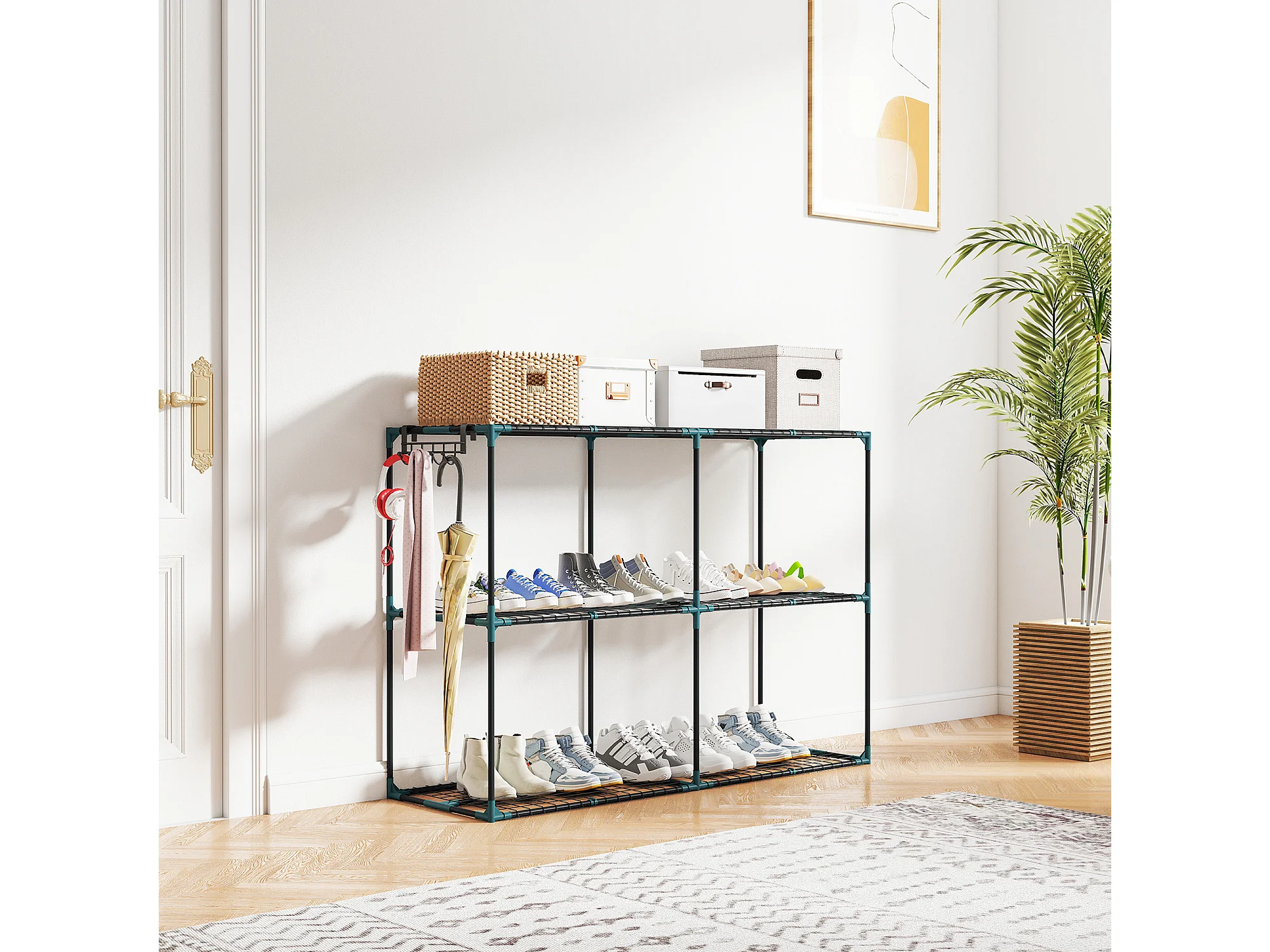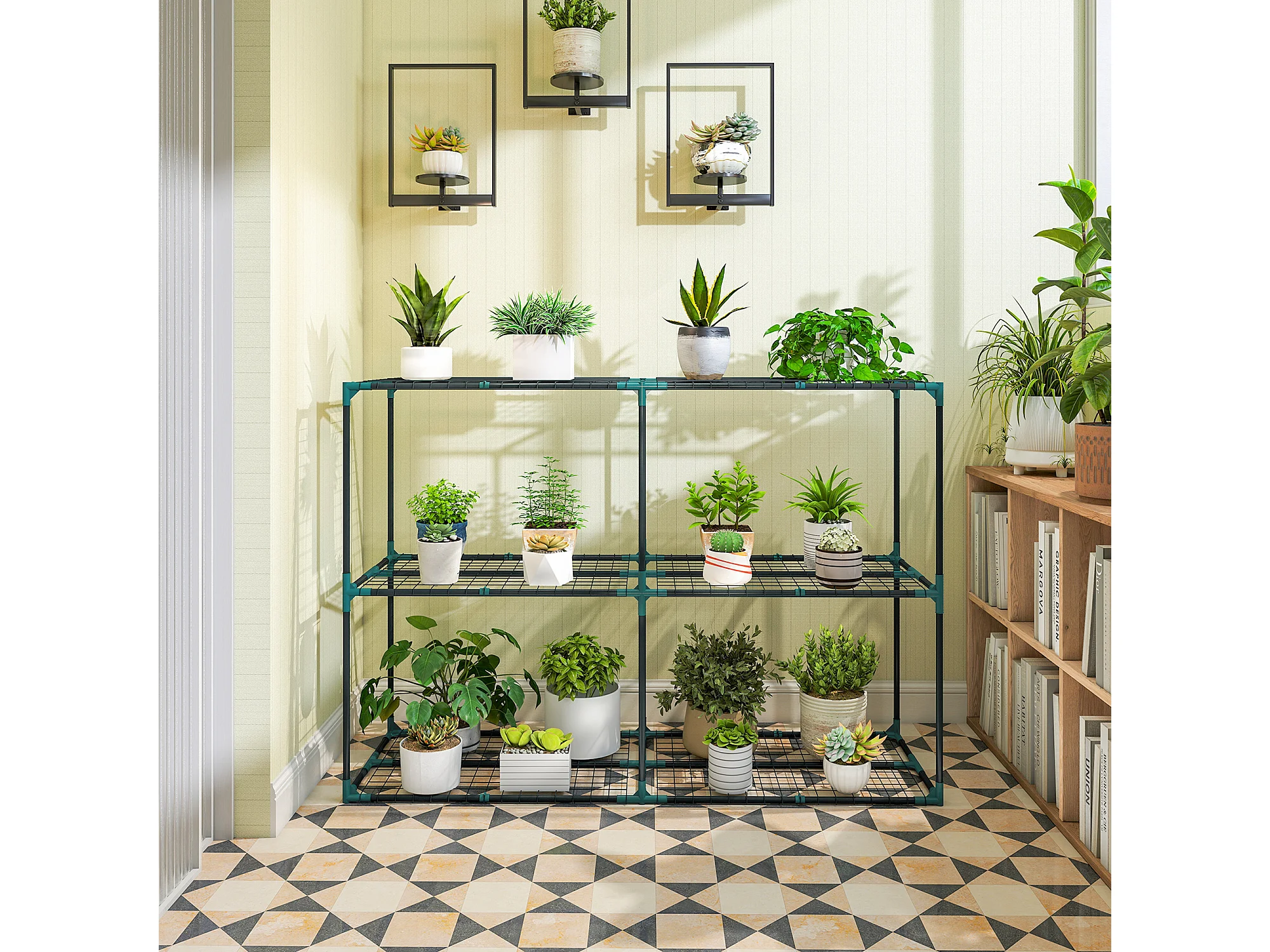 Portapiante a 3 livelli in acciaio e pp 143x48x100 cm verde scuro
