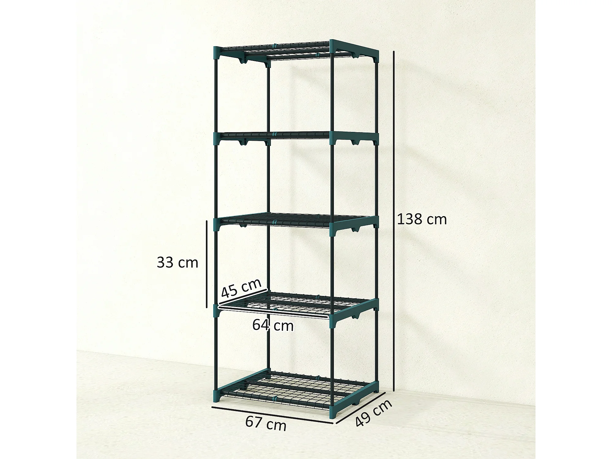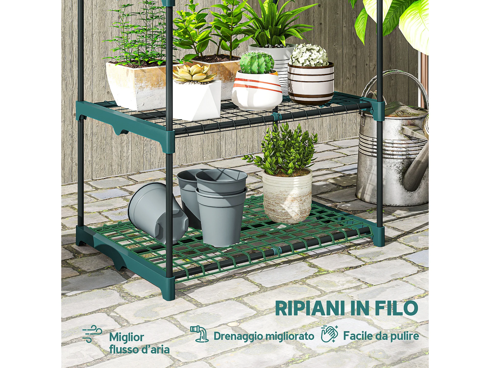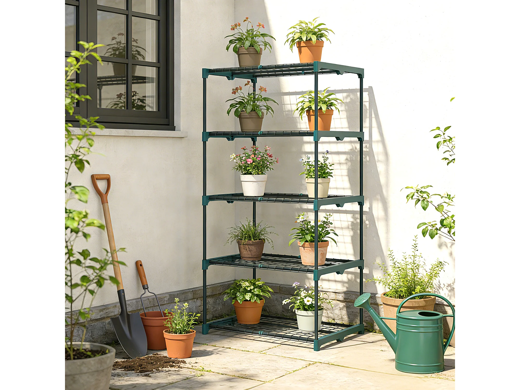 Portapiante a 5 livelli in acciaio e plastica 67x49x138 cm verde scuro