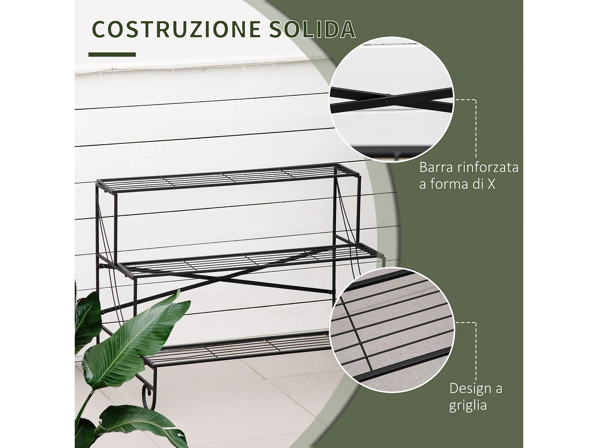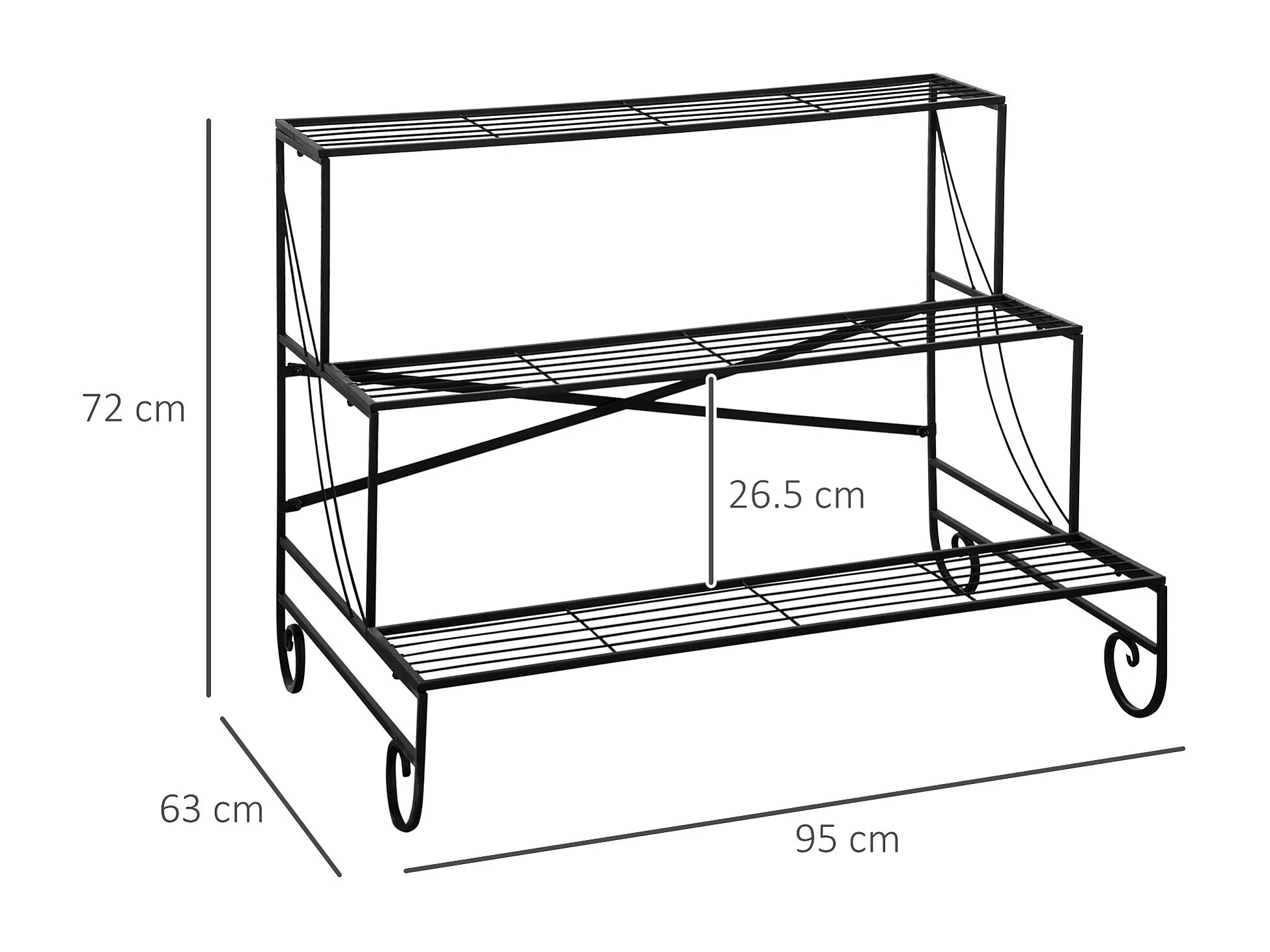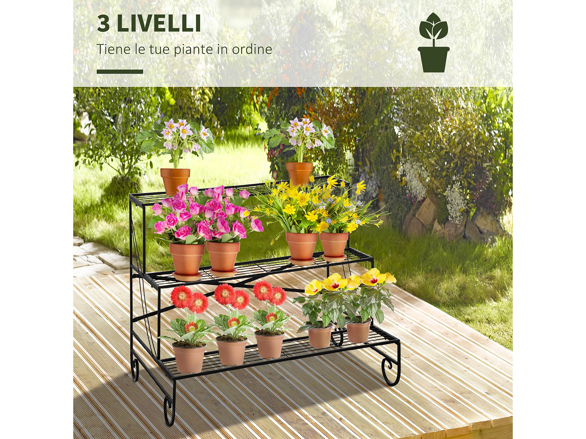 Portapiante in ferro battuto da esterno a 3 livelli nero