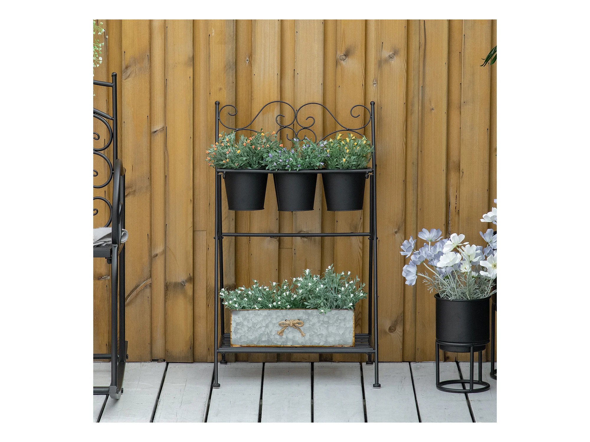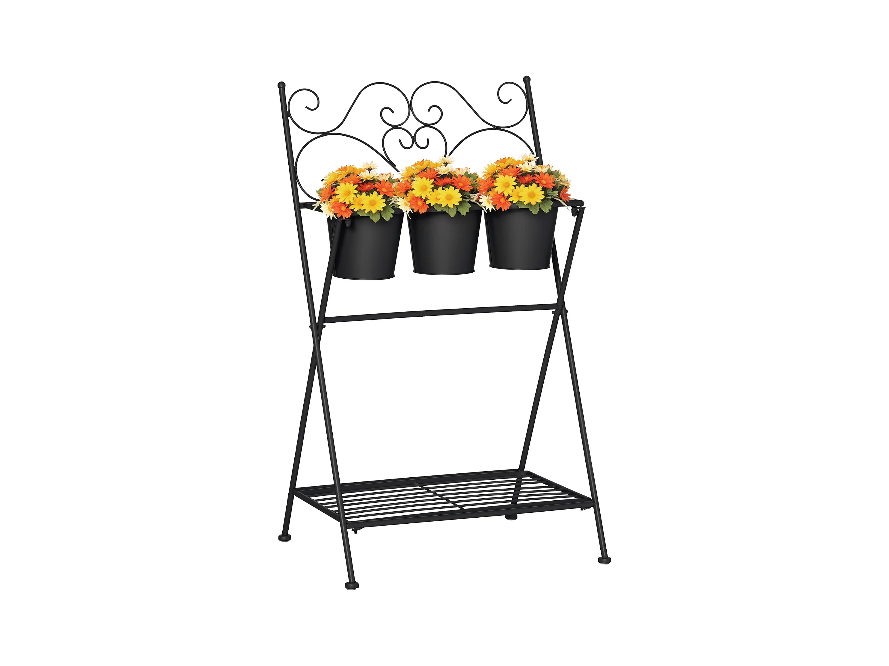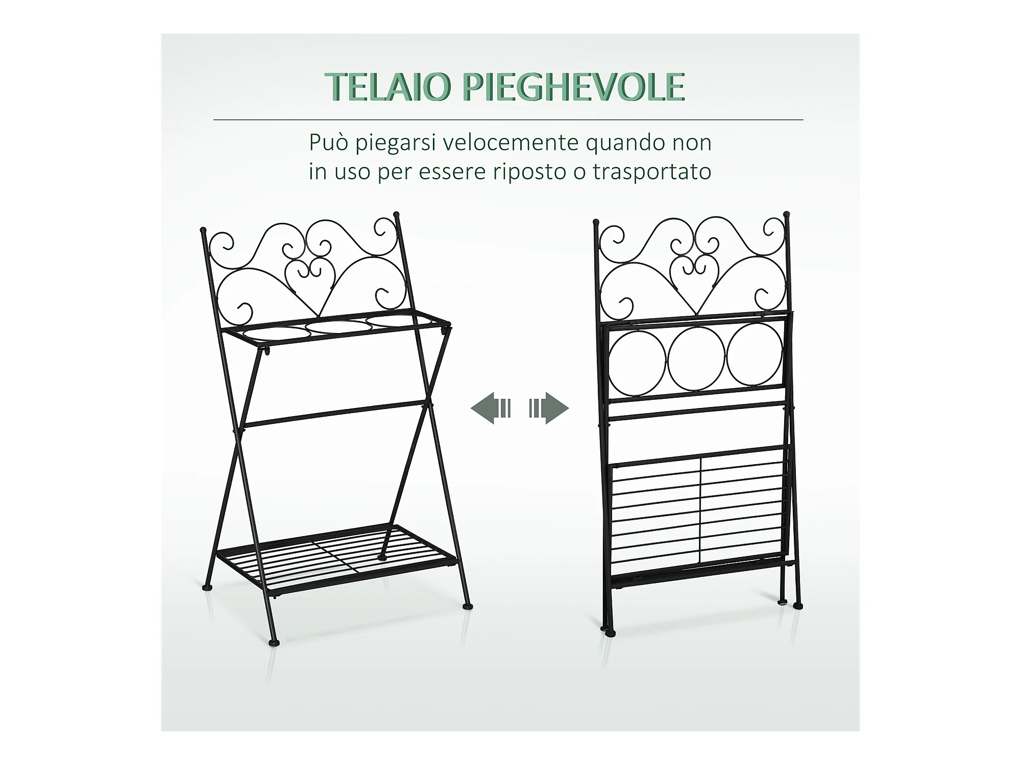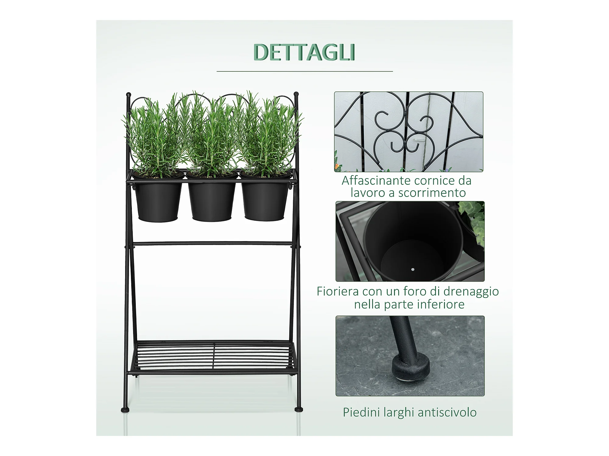 Portapiante pieghevole con 3 vasi e ripiano inferiore nero