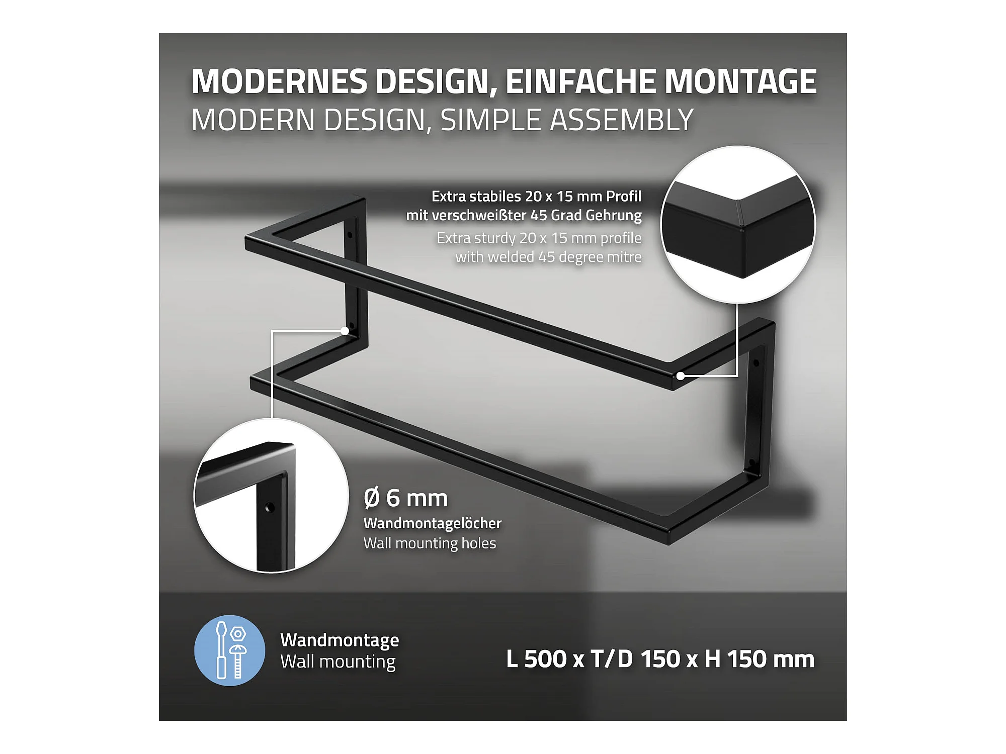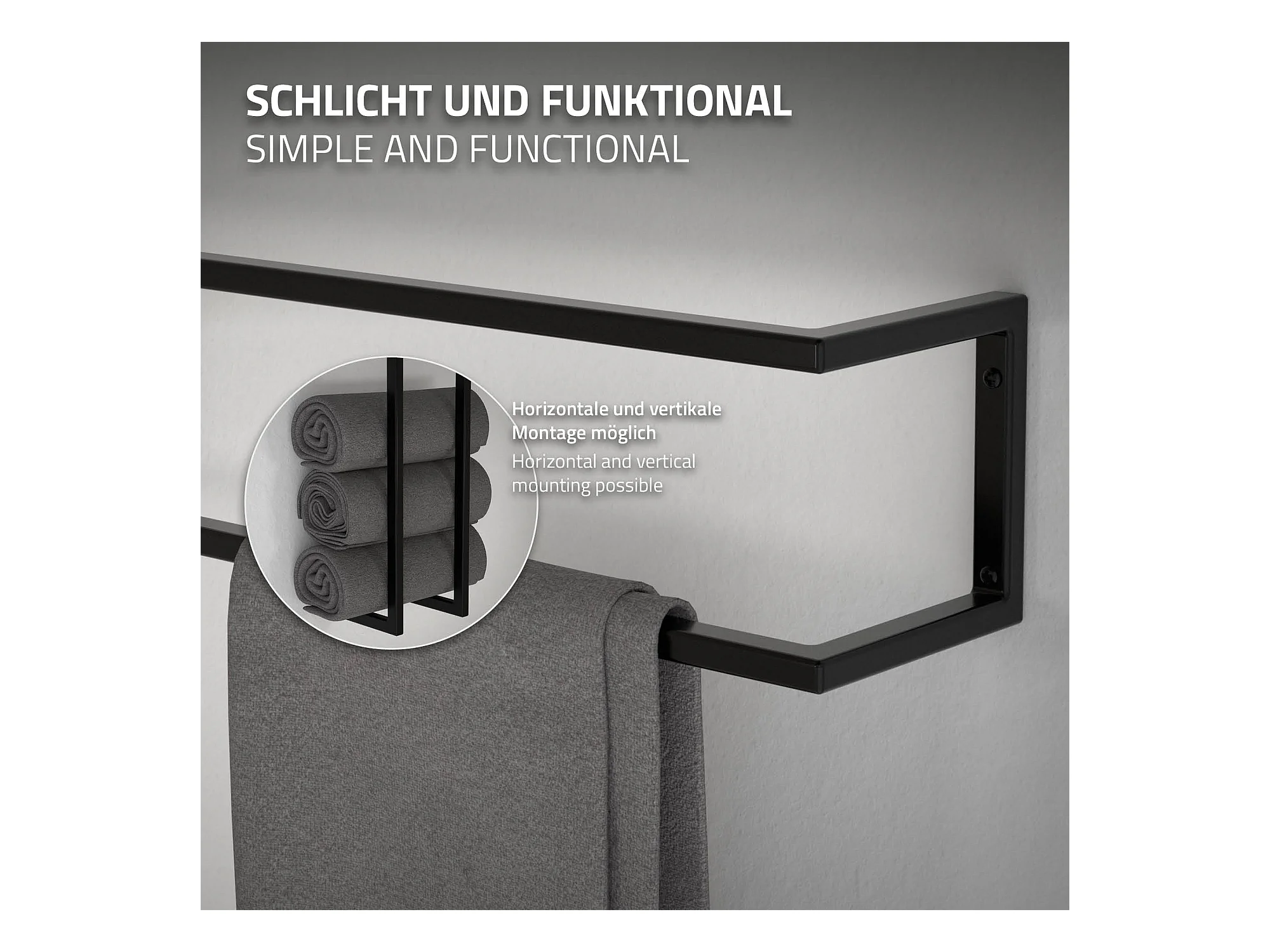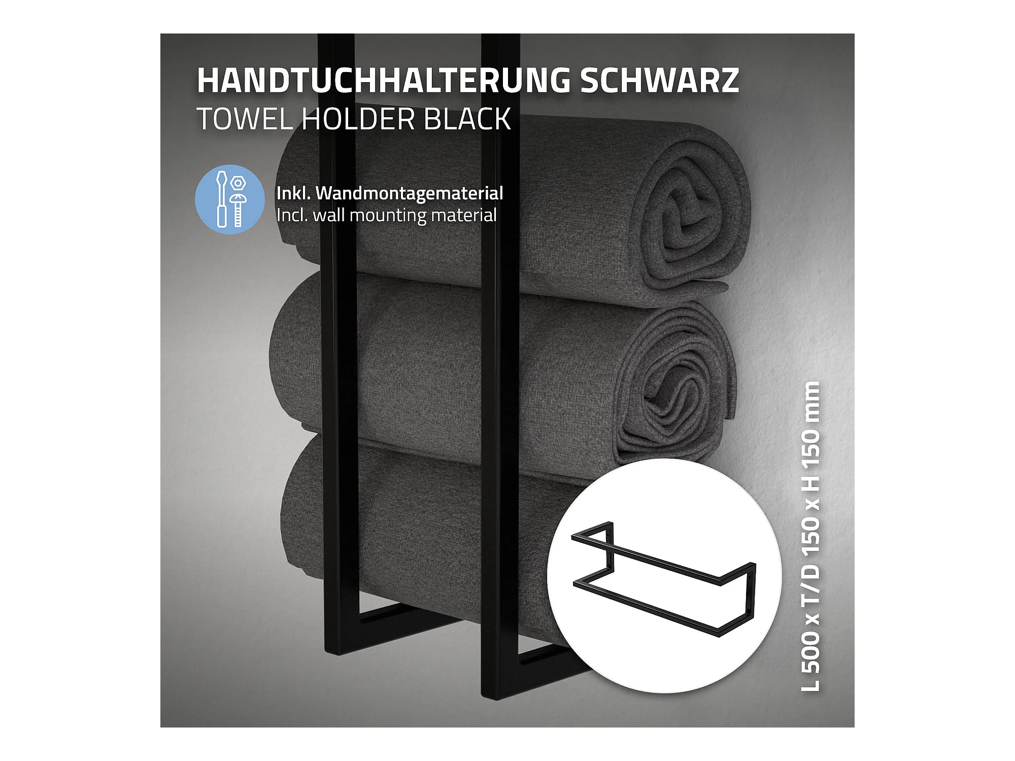 Portasciugamani con montaggio a parete supporto asciugamani acciaio nero 15x50cm