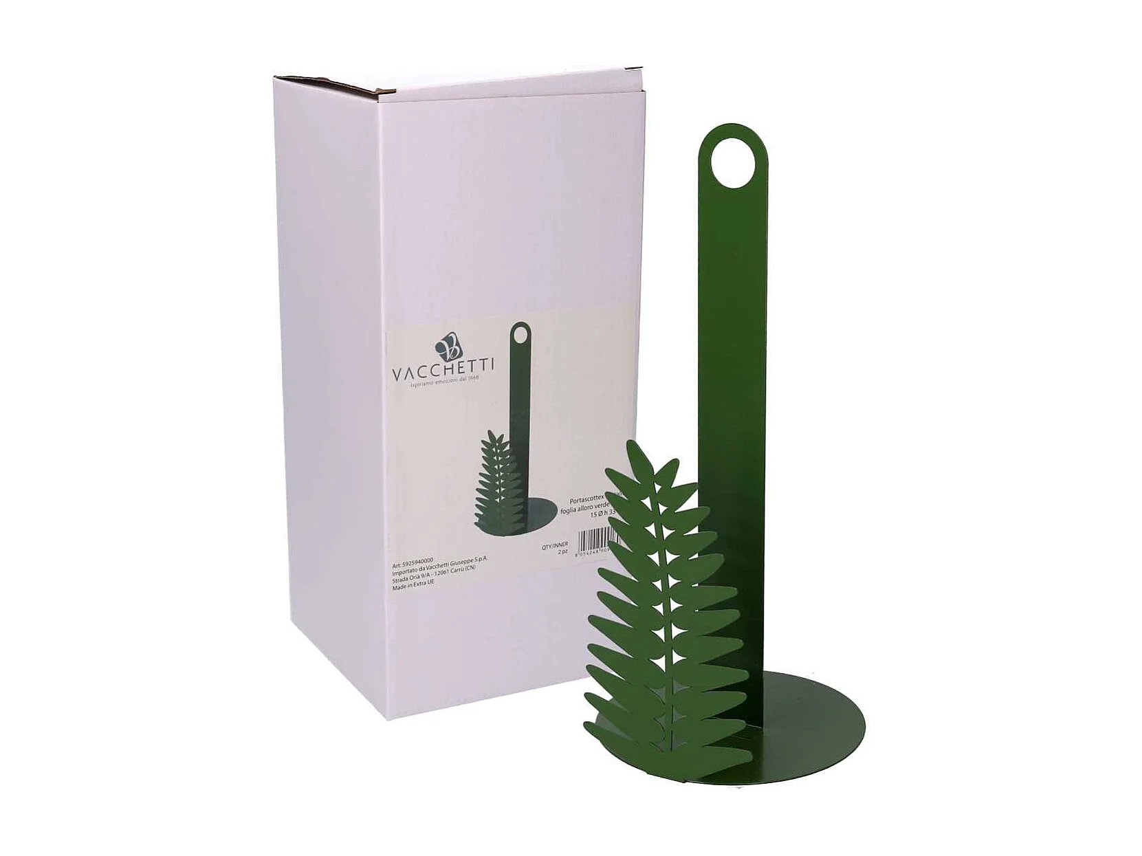 Portatovaglioli metallo foglia alloro verde scuro rettangolare cm14,5x4h10