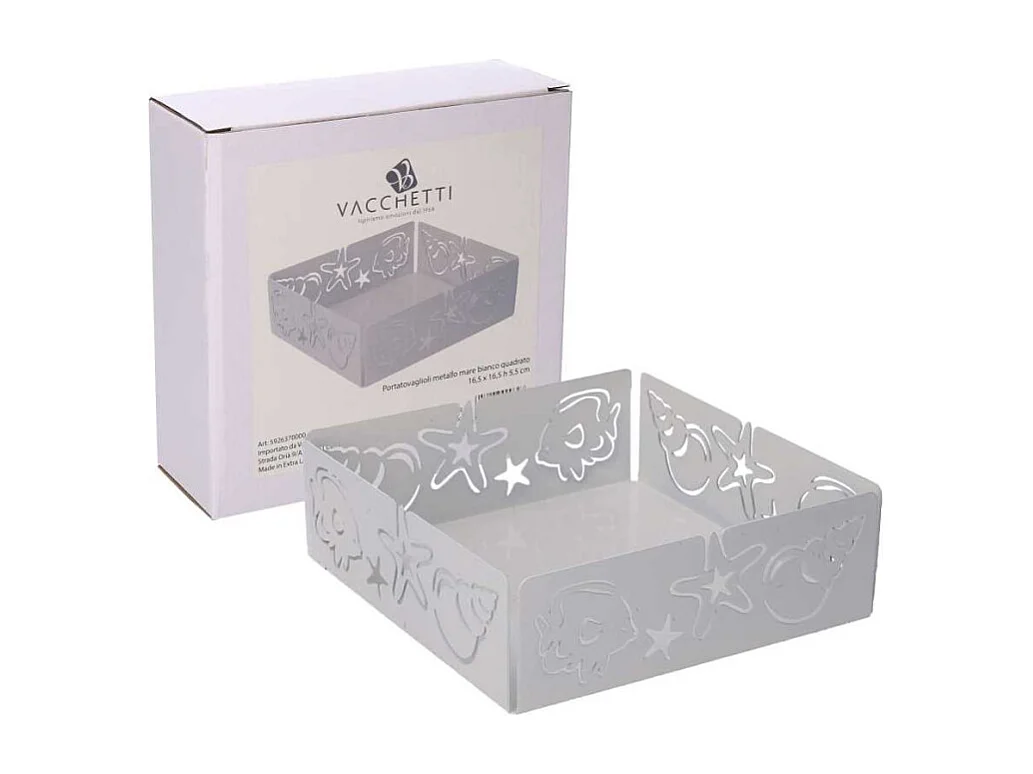 Portatovaglioli metallo mare bianco quadrato cm 16,5x16,5x5,5