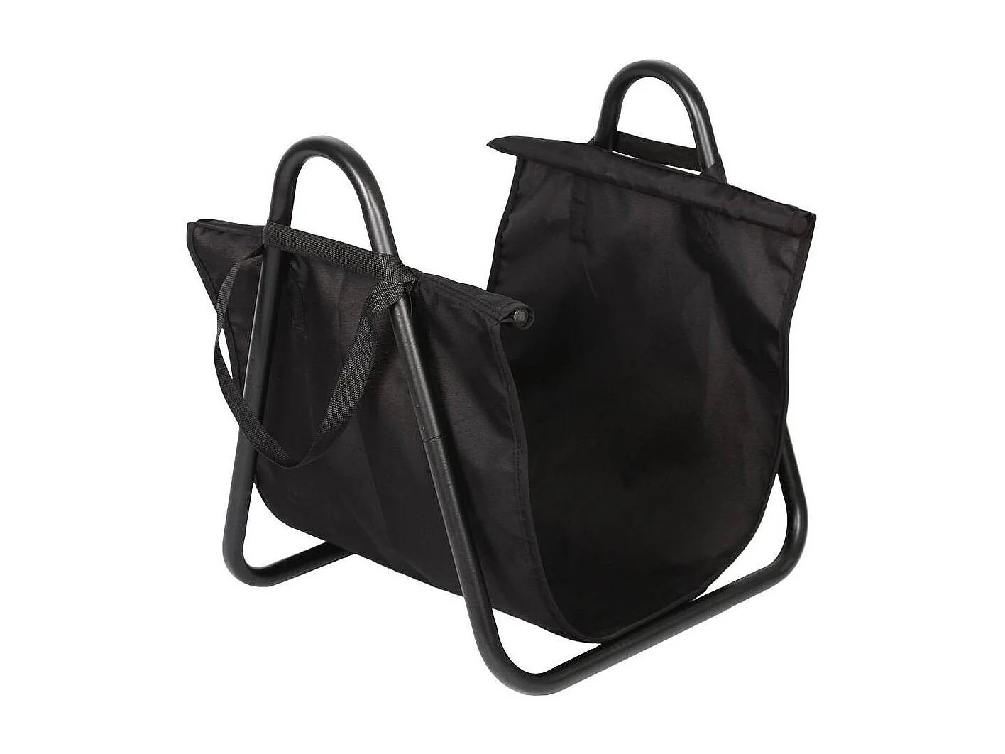 Portalegno in metallo con attrezzi da camino nero 35x32x81h