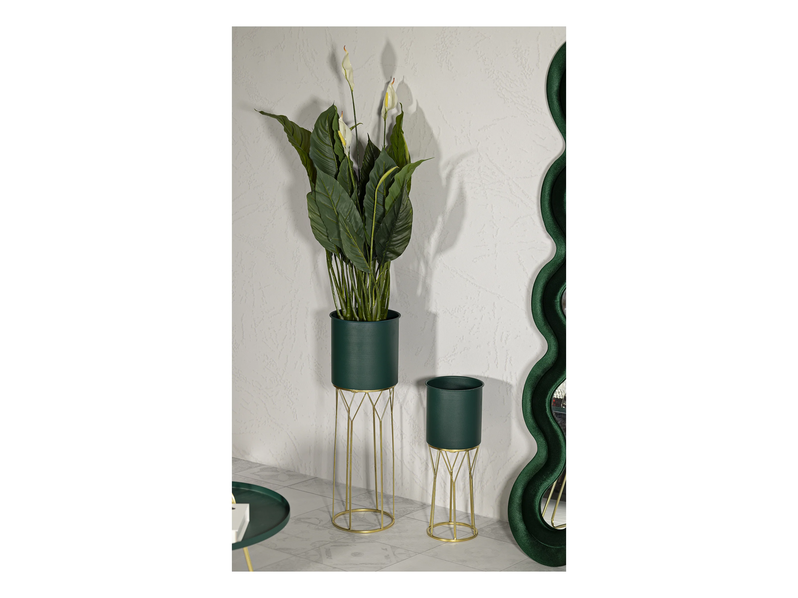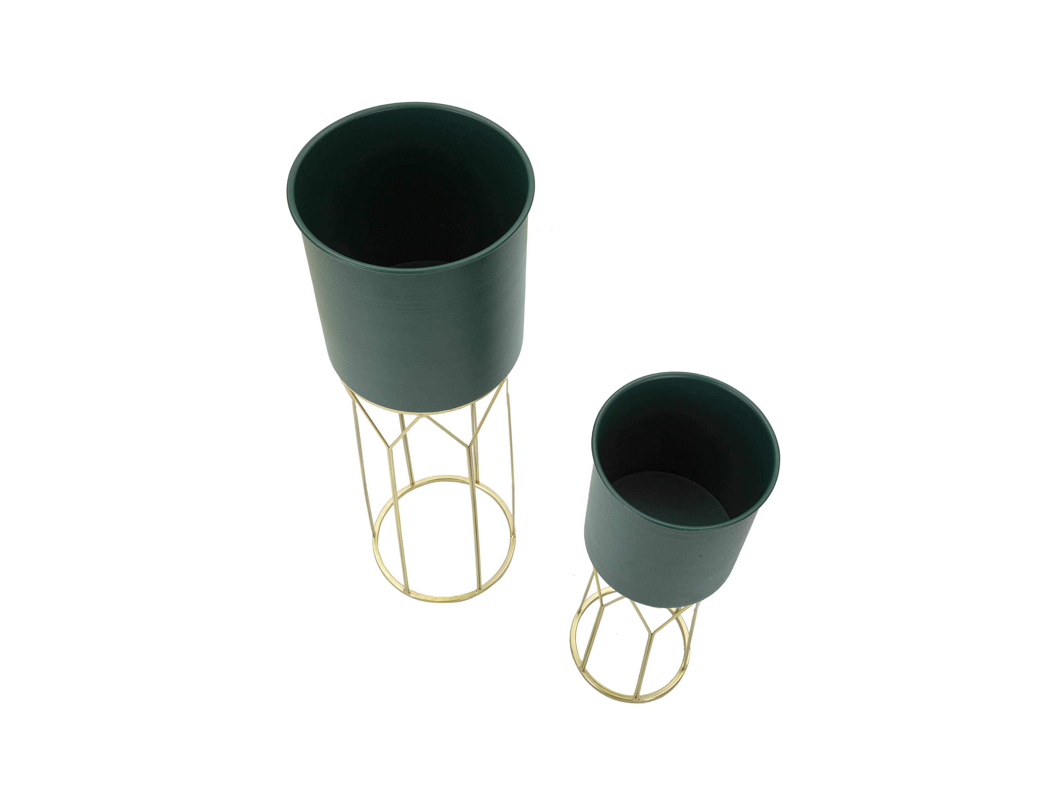 Portavasi in metallo dorato e verde set 2 pezzi cm Ø 23x70-19x50