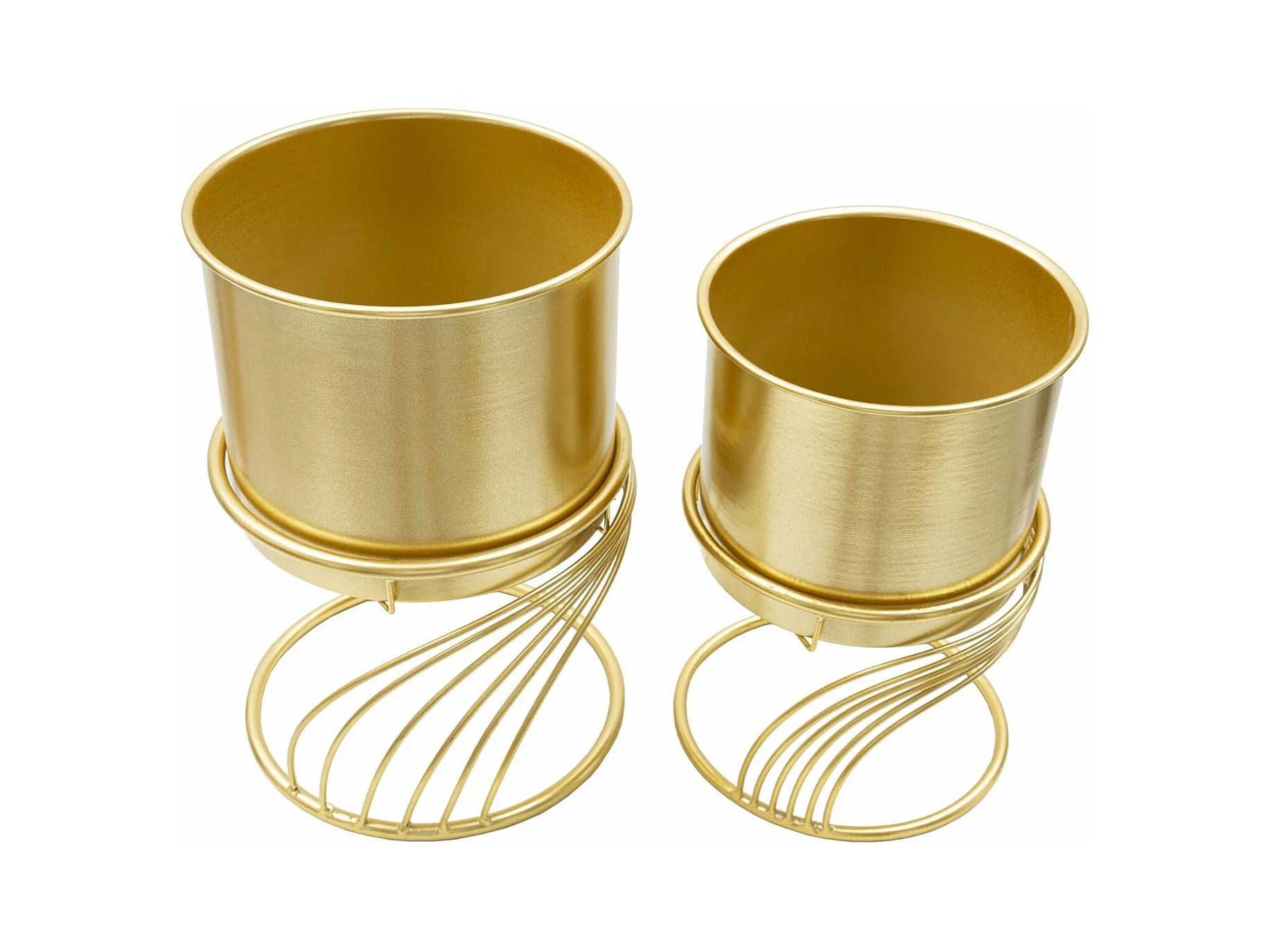 Portavasi in metallo dorato set 2 pz cm Ø 23x43-20x36