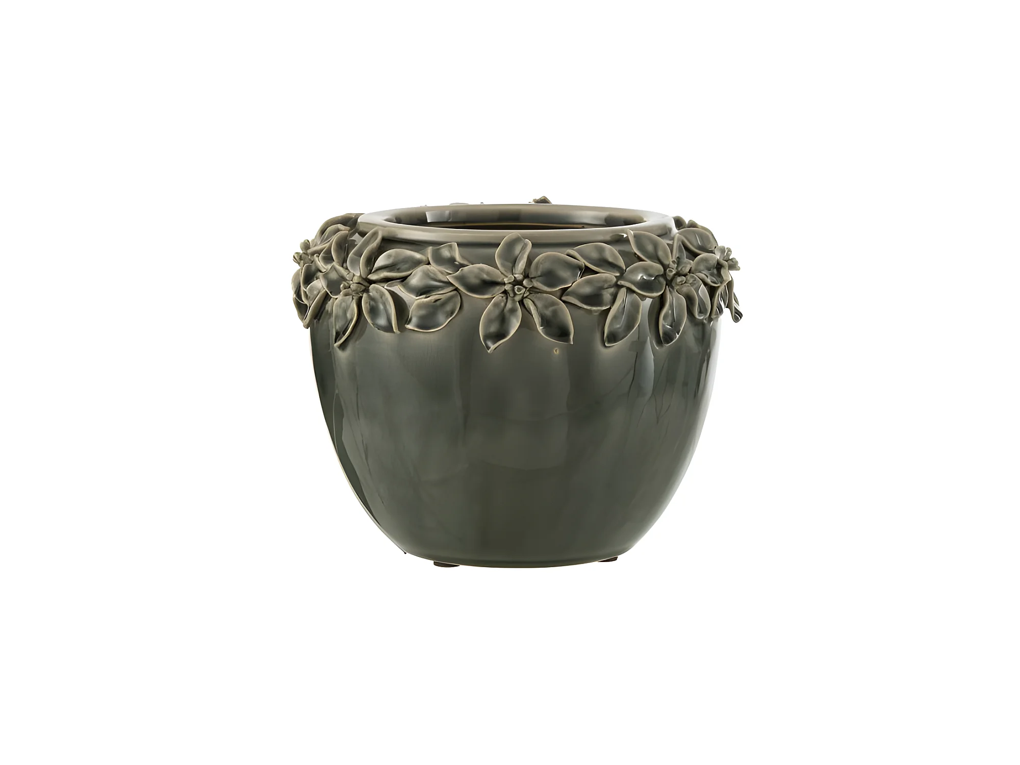 fioriera rotonda in ceramica grigia 23x23x21,5 cm