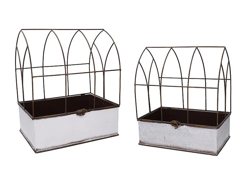 Portavaso metallo 1-2 gabbia bianco rettangolare cm 36x25h13/44