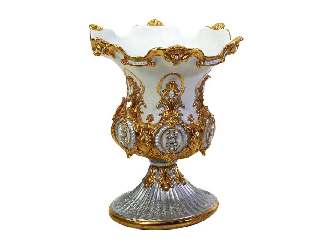 Portavaso resina oro e bianco cm 61,7x53,8h69,7