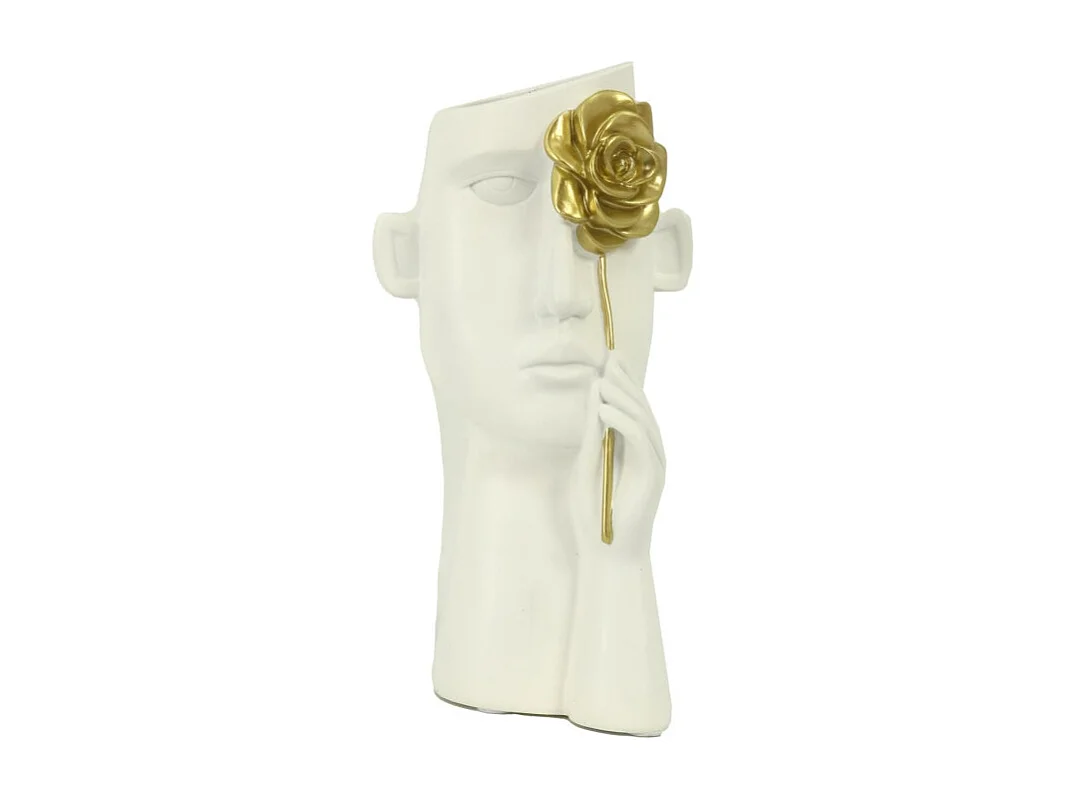 Portavaso resina viso bianco fiore oro cm 13x13h27