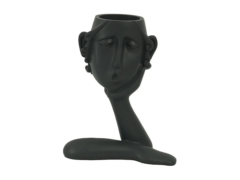 Portavaso resina viso nero cm 16x8h20