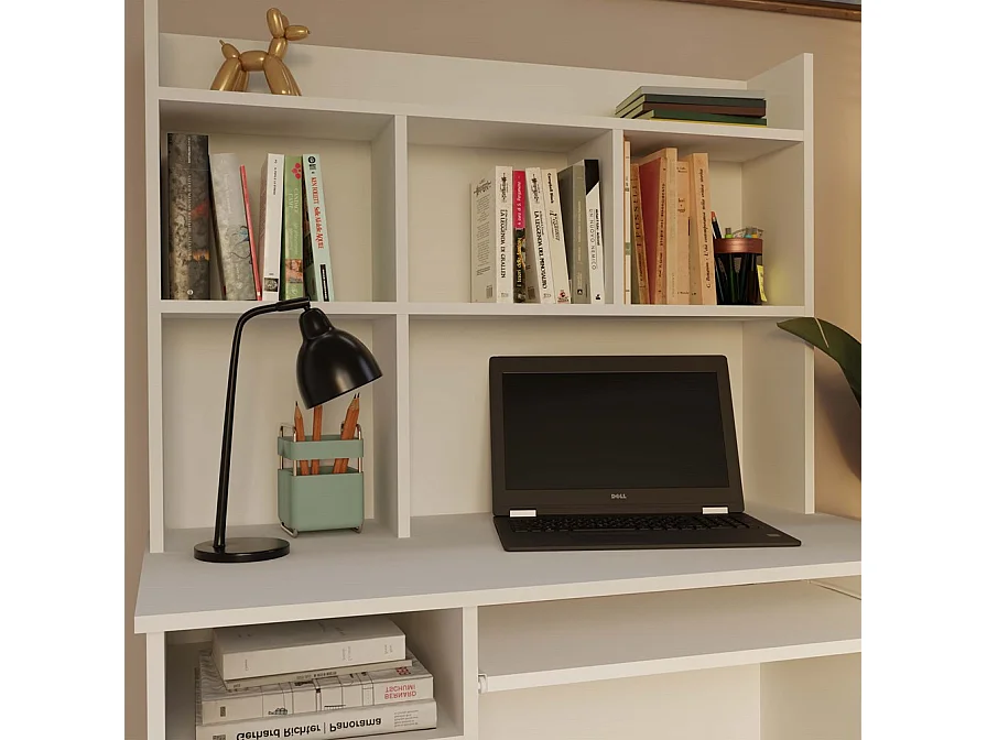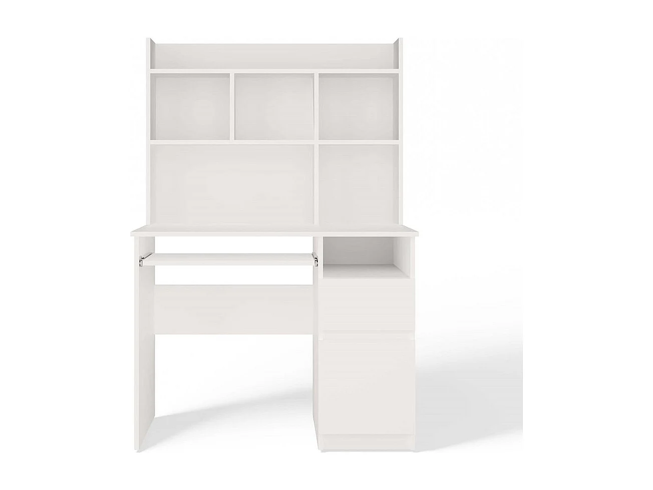 PORTO DESTRA - Scrivania 98×51×145 cm con 3 cassetti e ripiani, con mensola superiore per ufficio / camera da letto - Bianco